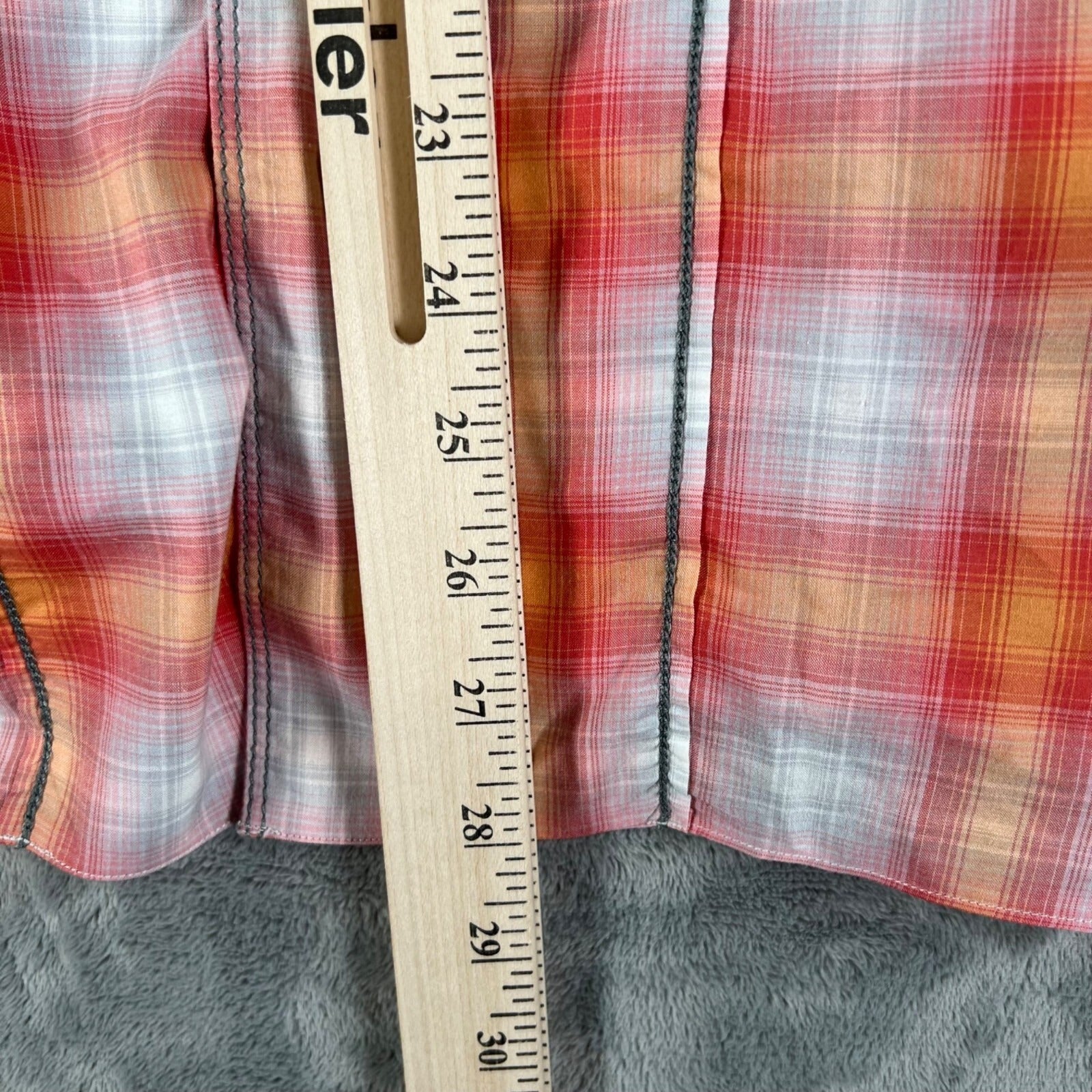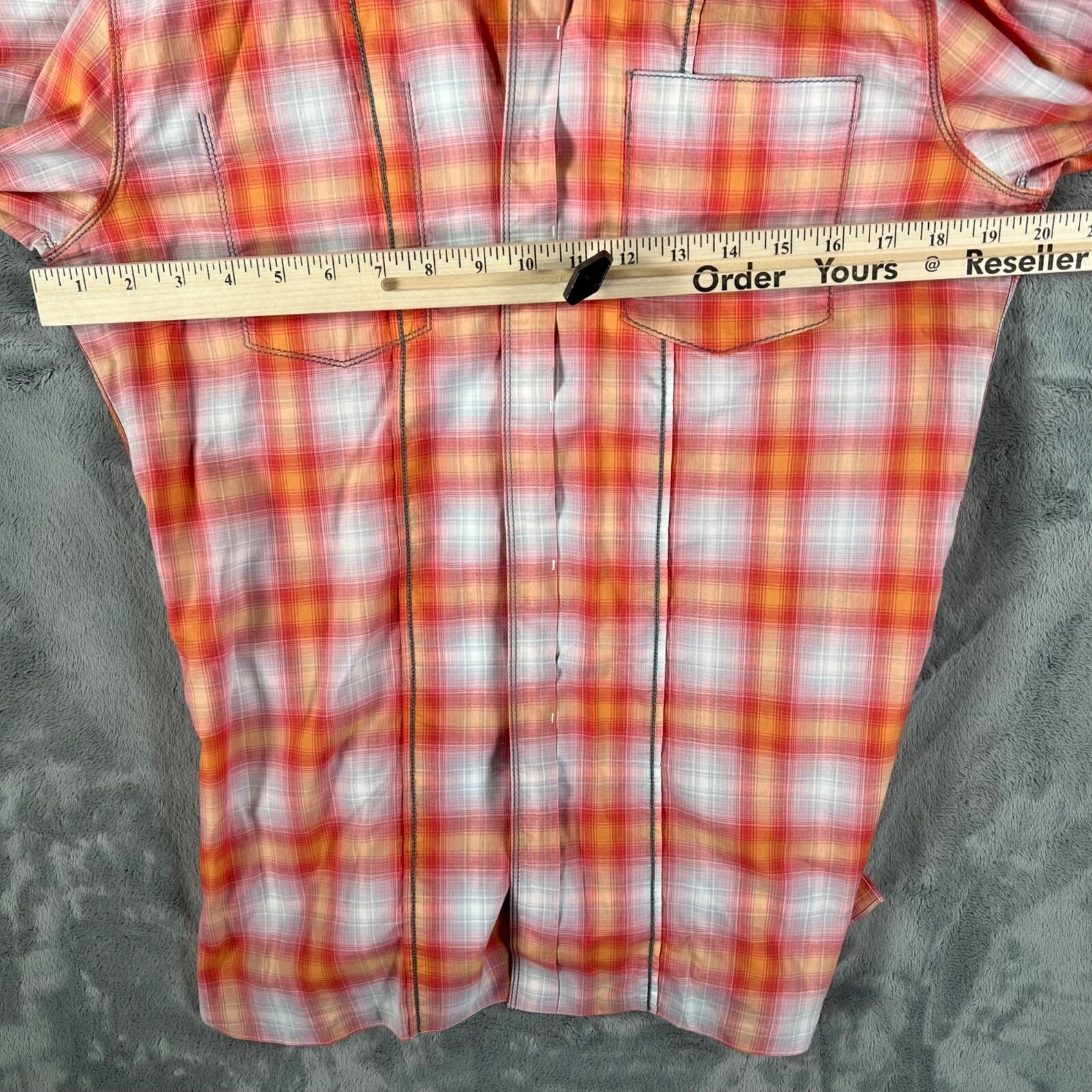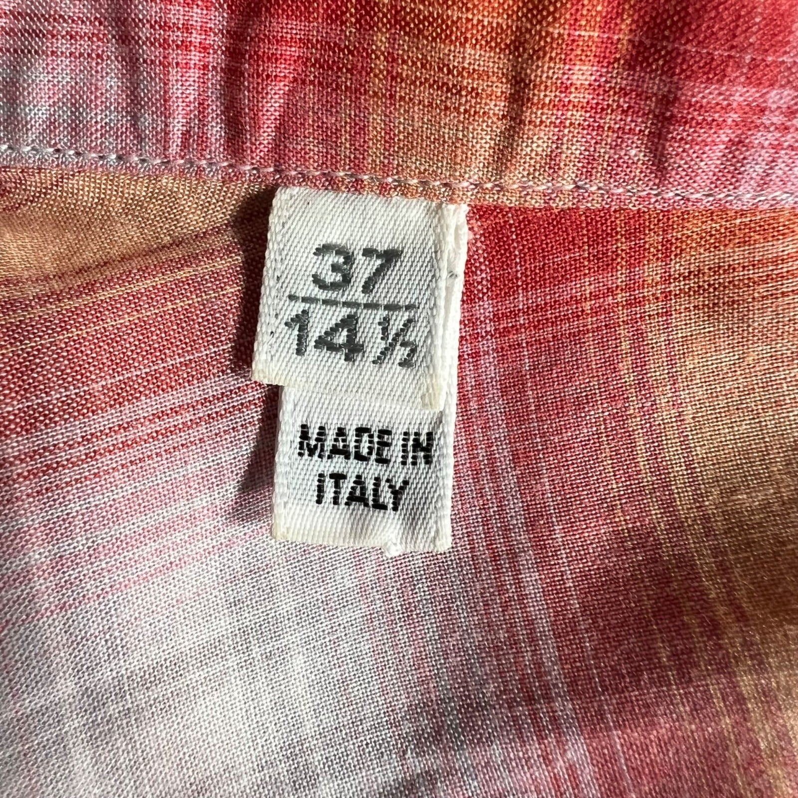 Lanvin Men's Orange/Red/White Plaid Long Sleeve Button-Up Shirt (Size 37/14.5)