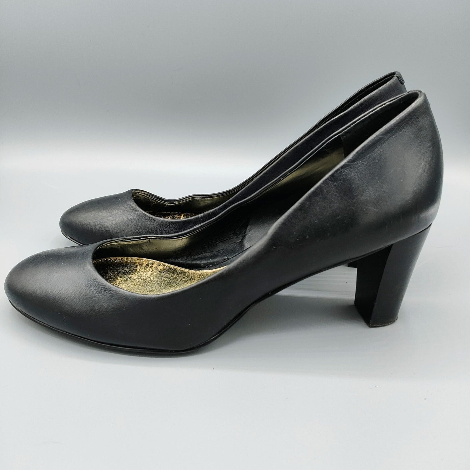 Lauren Ralph Lauren Womens Black Leather Block Heel Pumps (Size 8B)