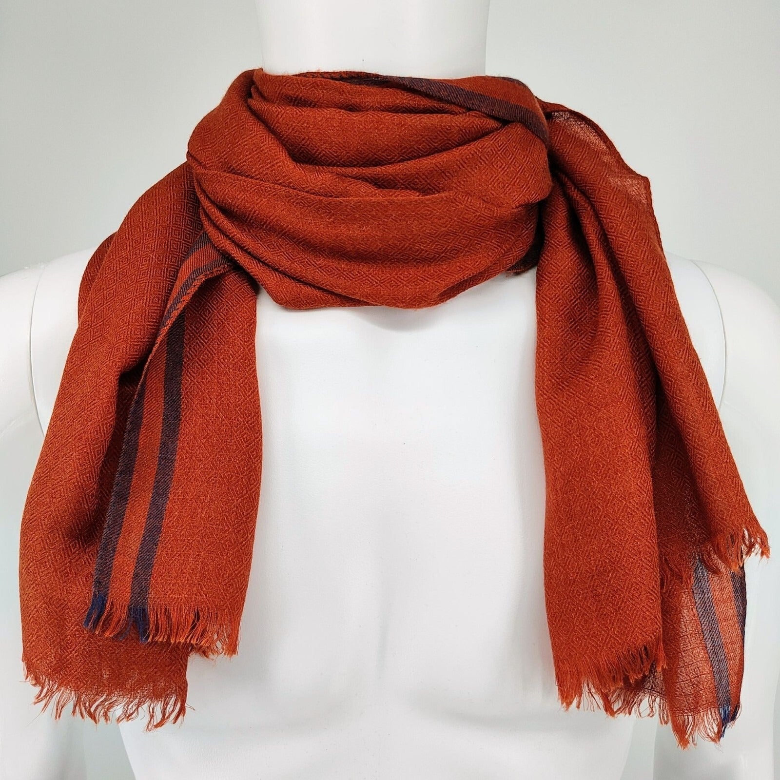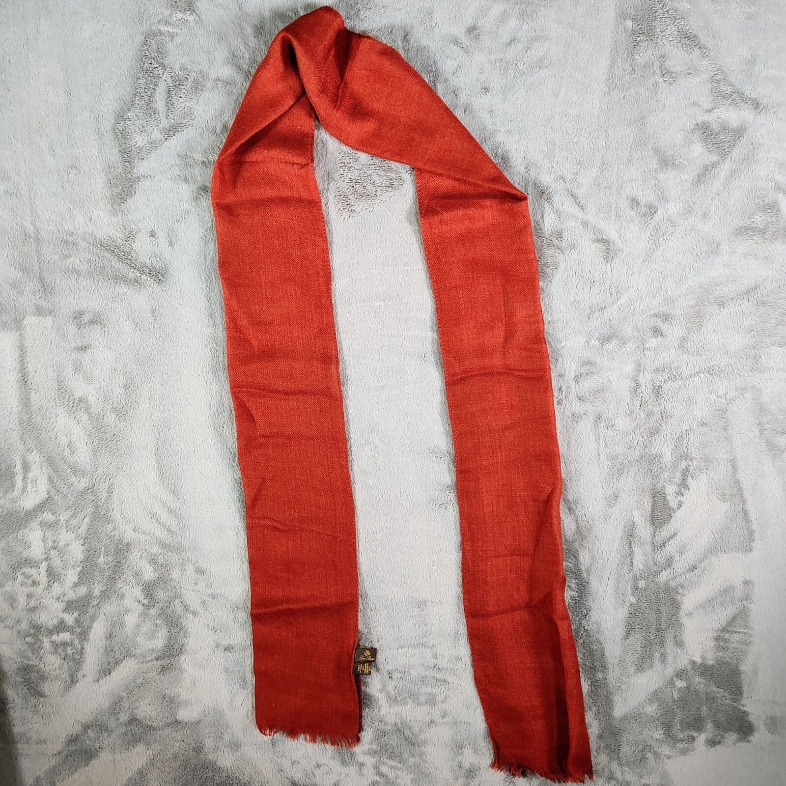 Loro Piana Made In Italy Orange/Red and Blue Raw Edge Cashmere & Silk Scarf