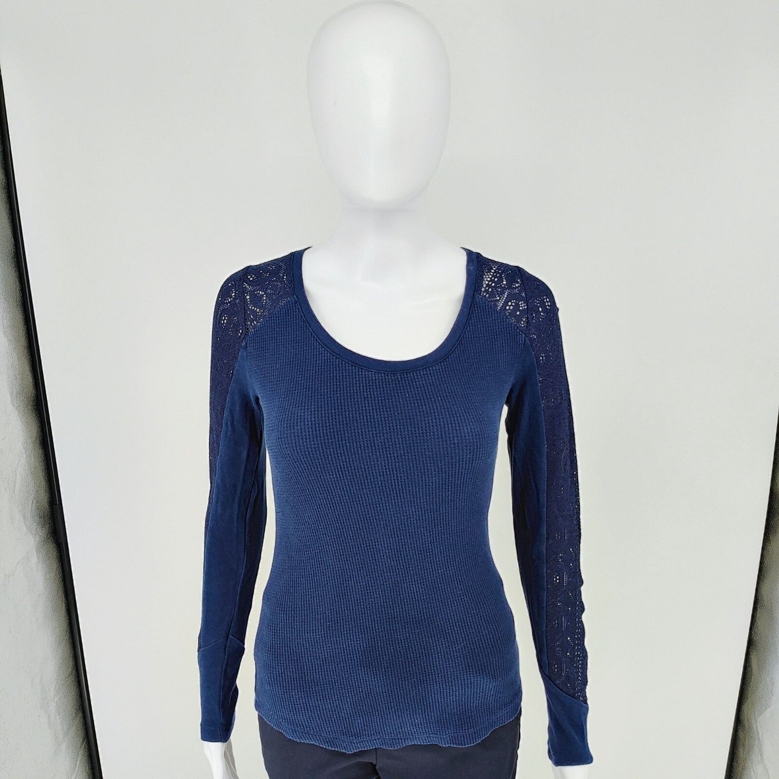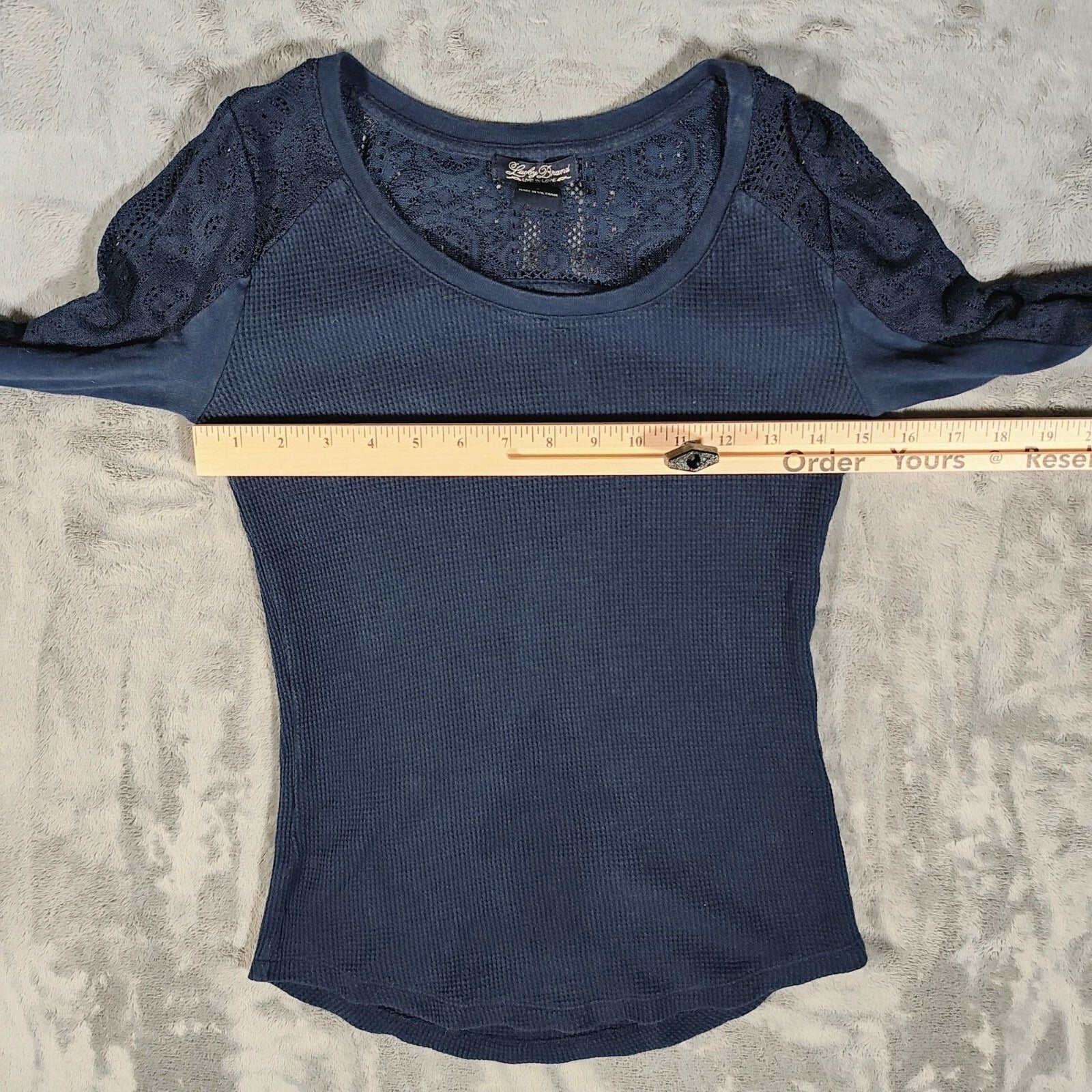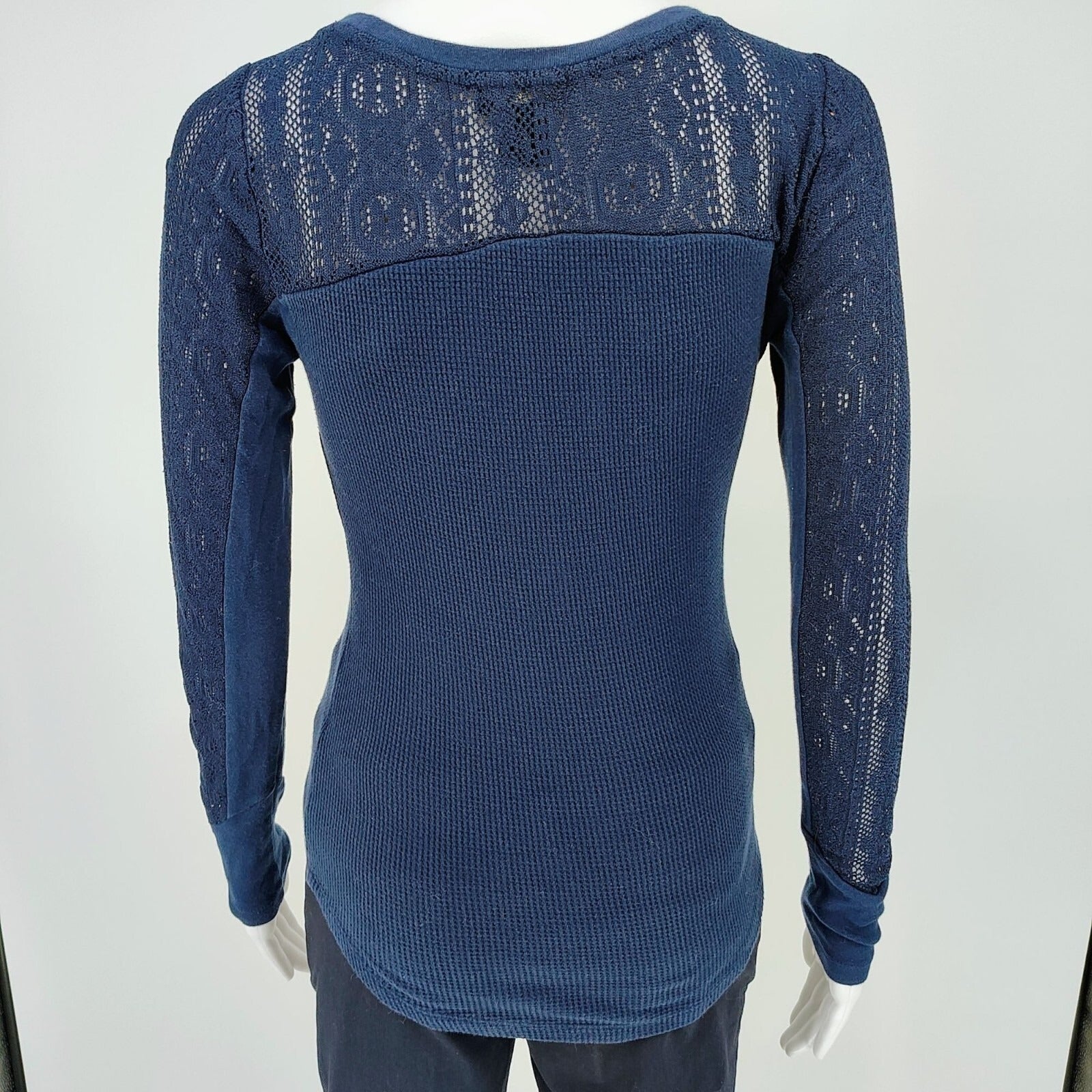 Lucky Brand Live in Love Blue Womens Lace Sleeve Thermal Top (S) *Flawed*
