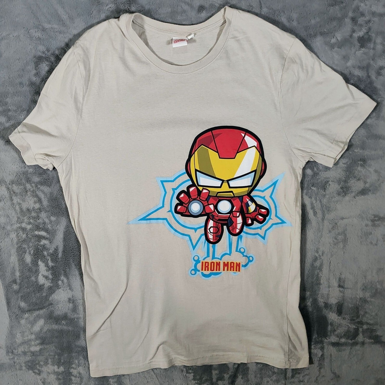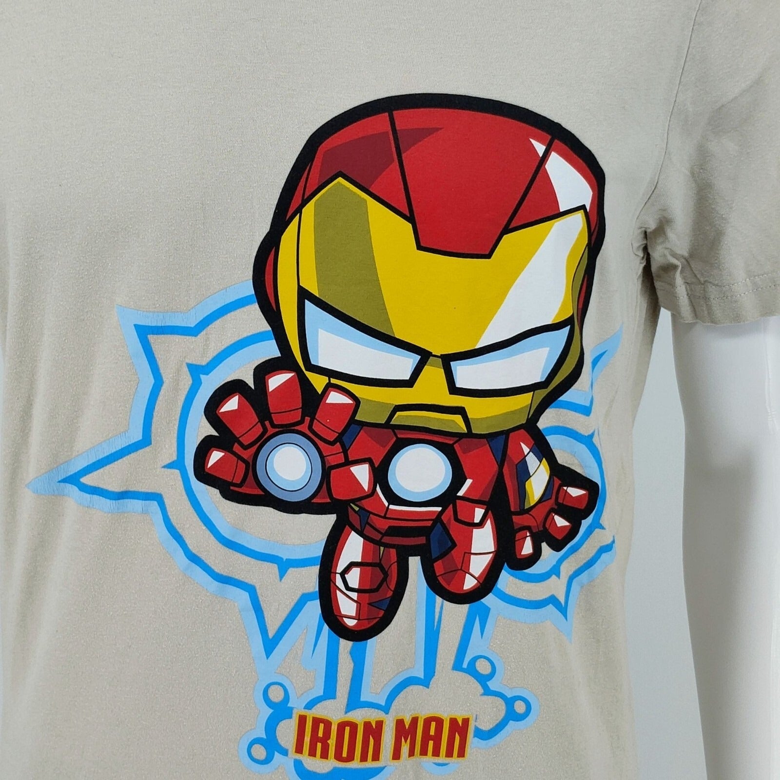 Marvel Avengers Beige/Taupe Iron Man Cartoon Graphic T-Shirt (Large)