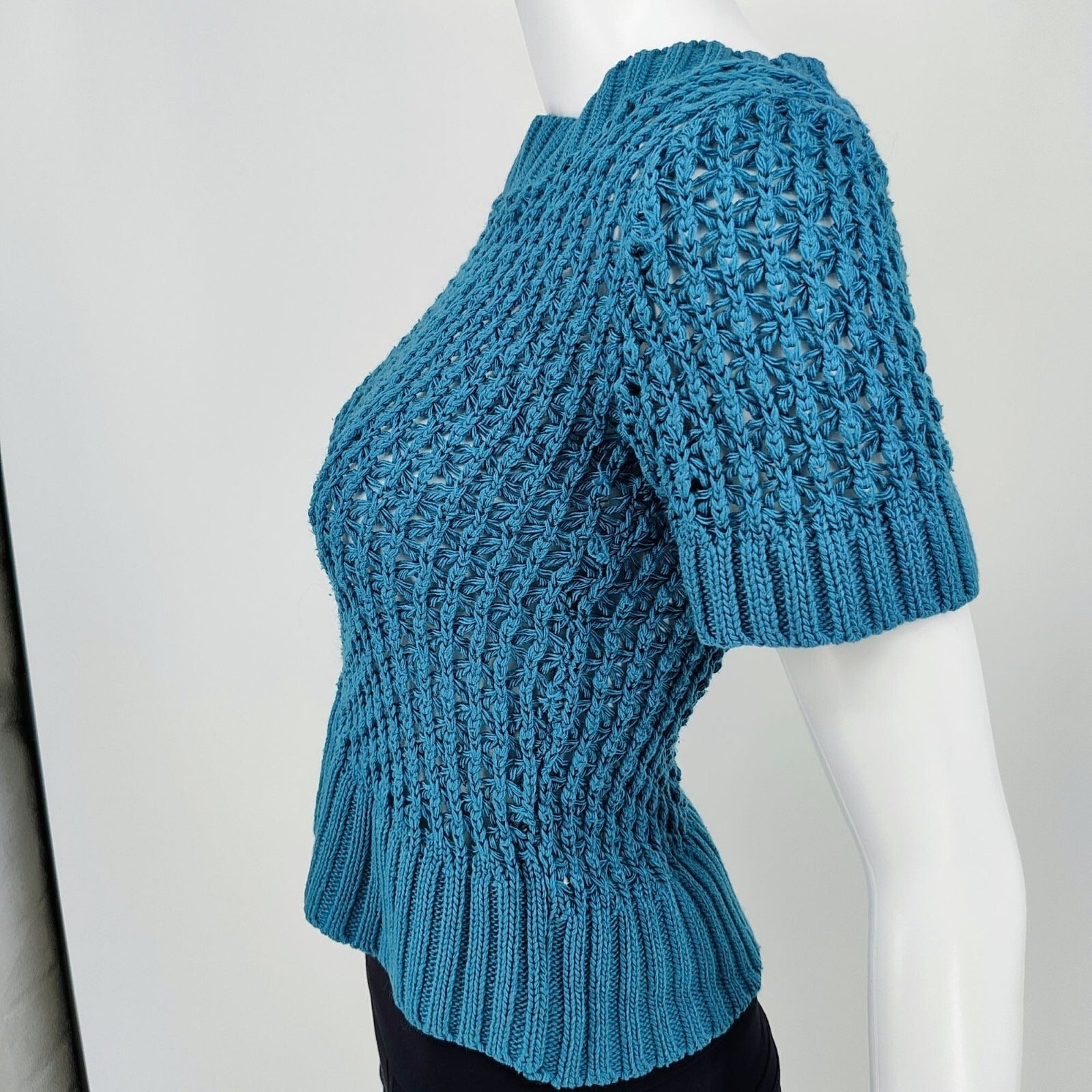 Condition Notes: Fair/good condition. Fabric tag illegible. Open knit starting to come loose at pits, causing small hole in right pit. See photos.