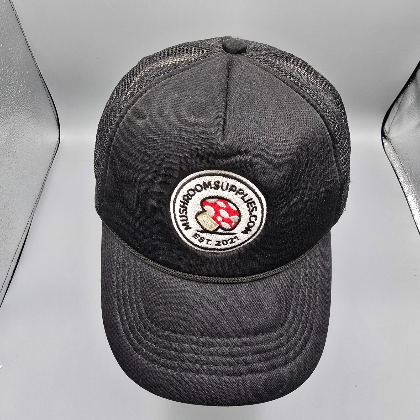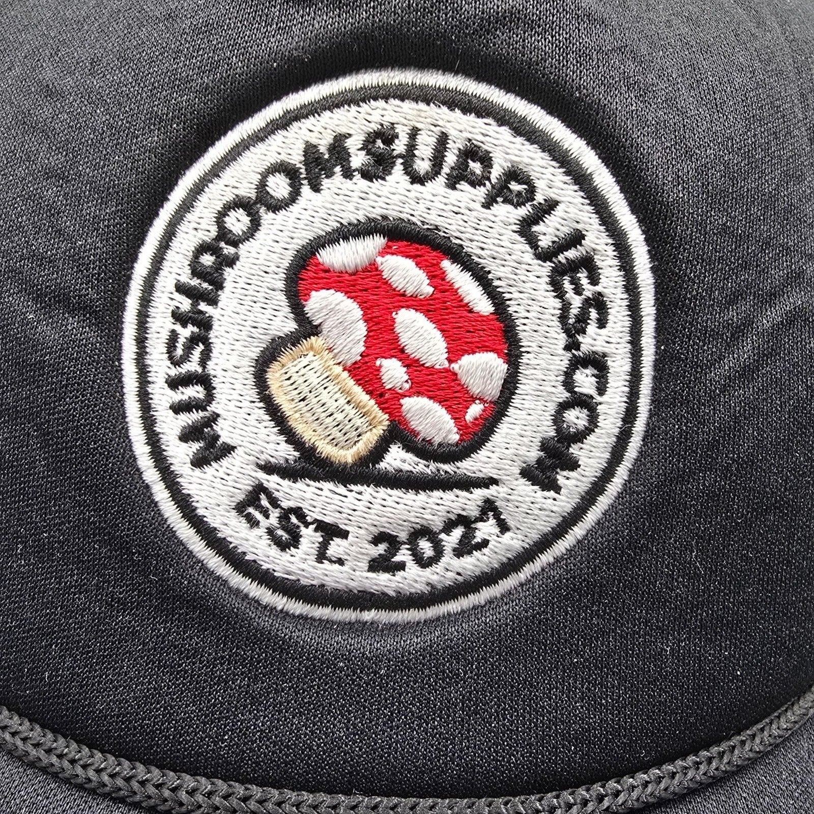 Mushroomsupplies.com Est. 2021 Black Embroidered Patch Mesh Snapback Trucker Hat