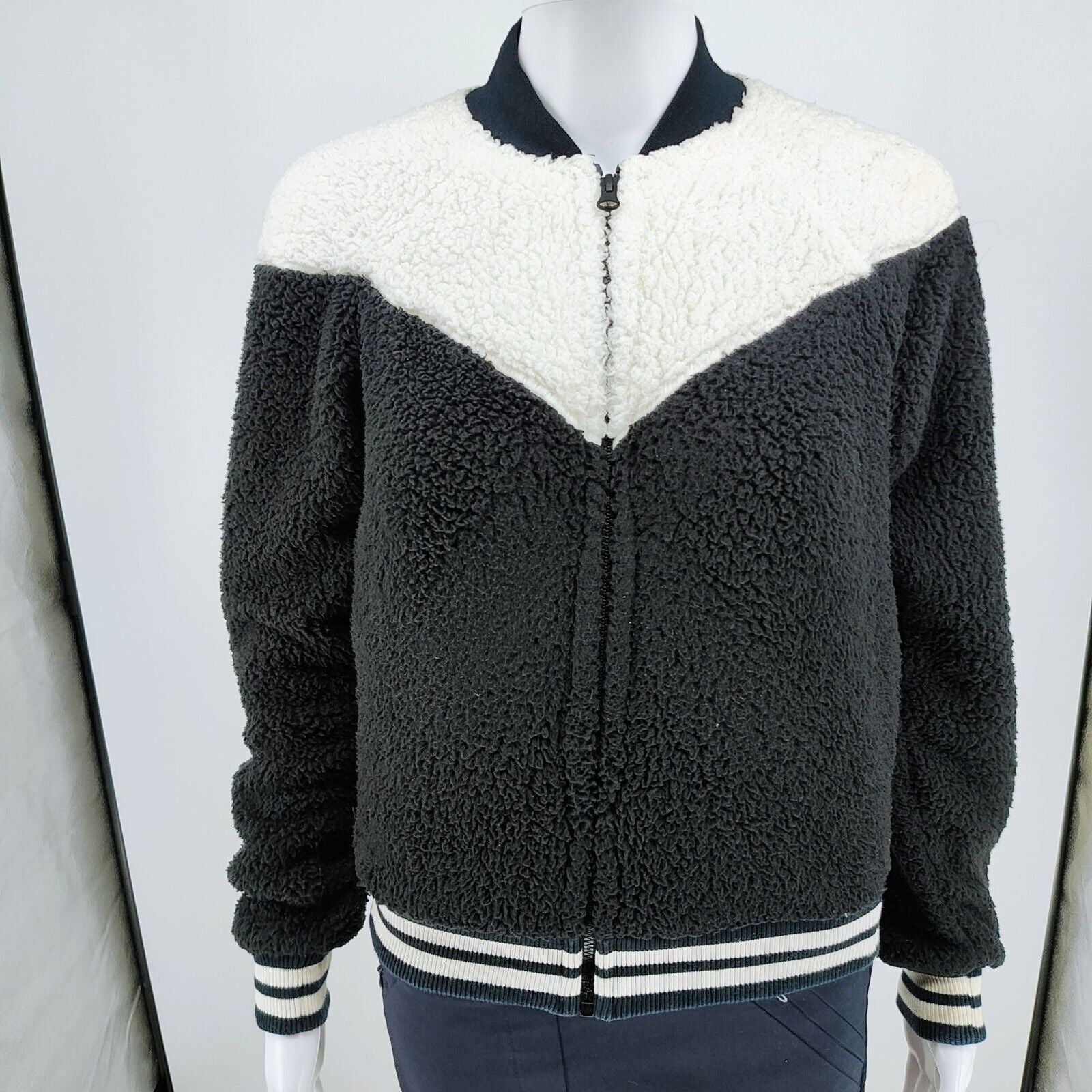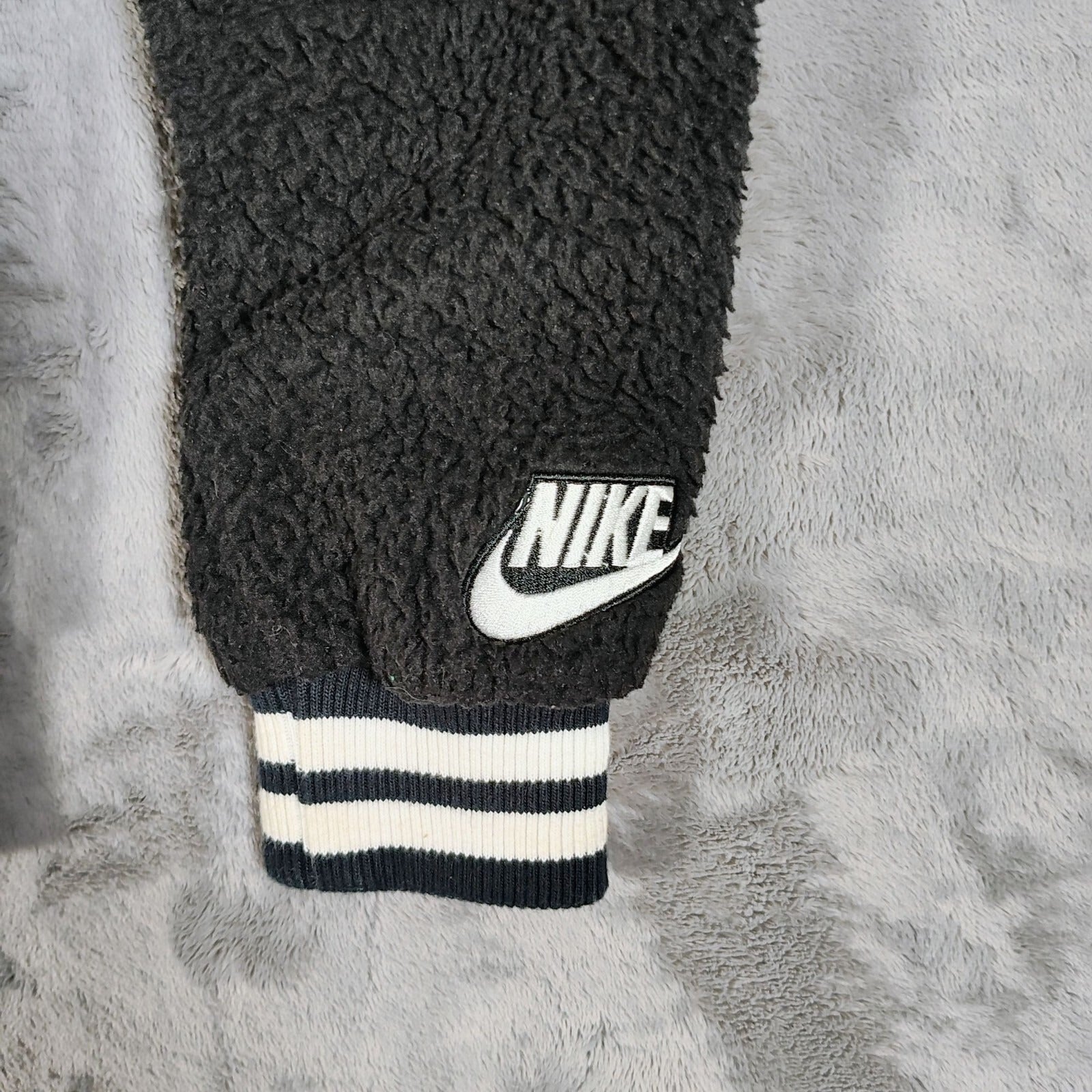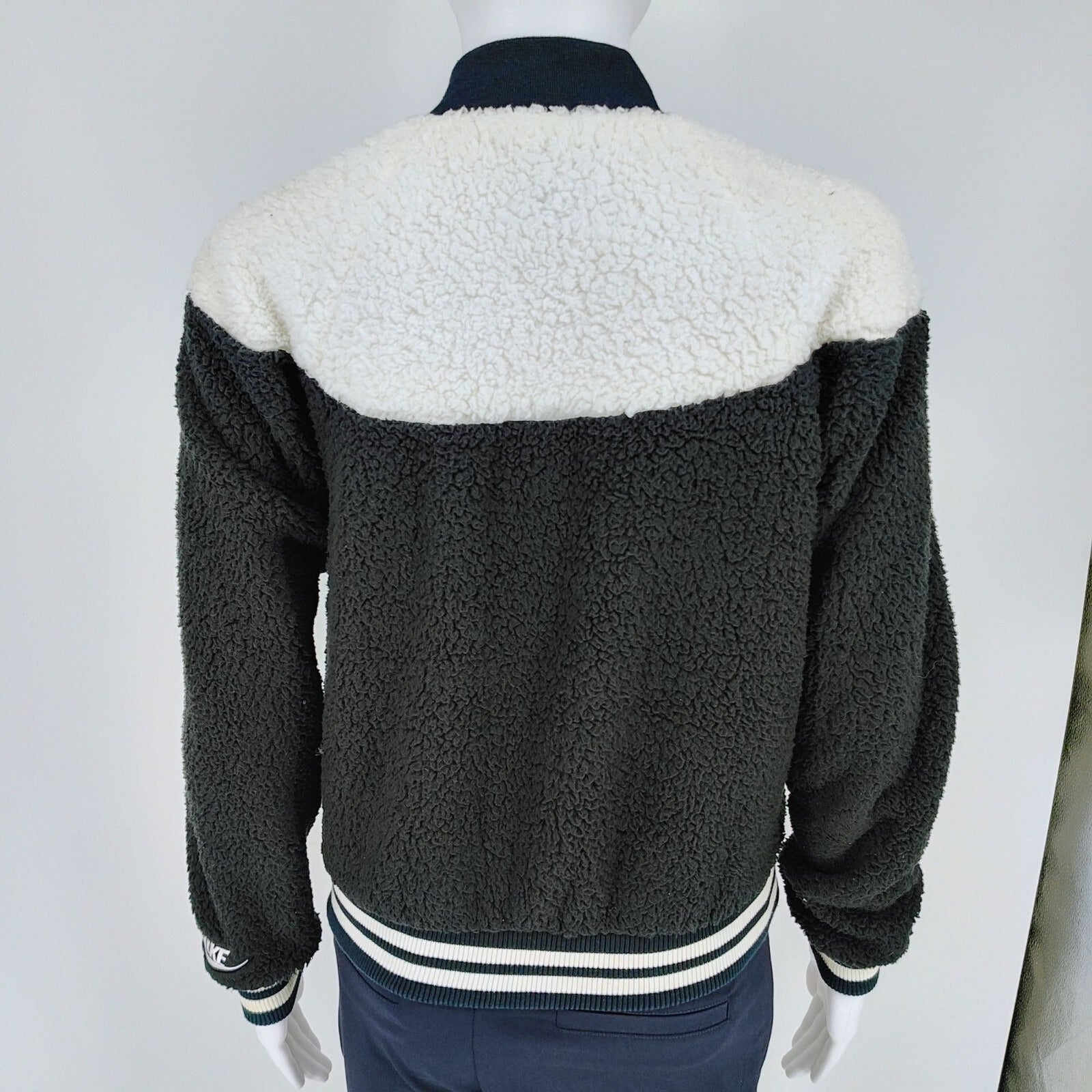 Nike Womens Sherpa Fleece Black and Whi Varsity Jacket XS Black & White Polyeste