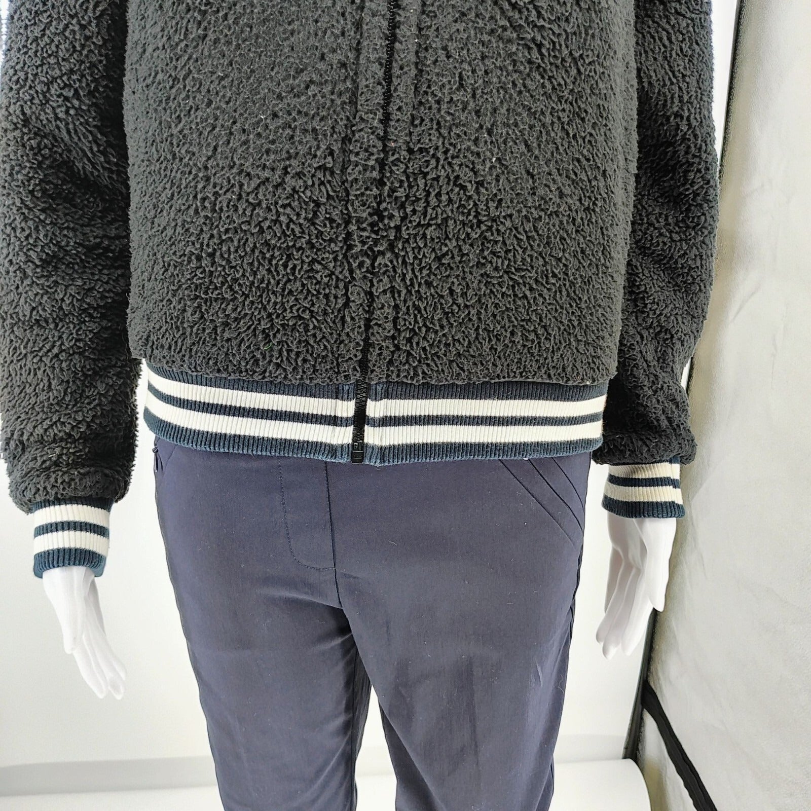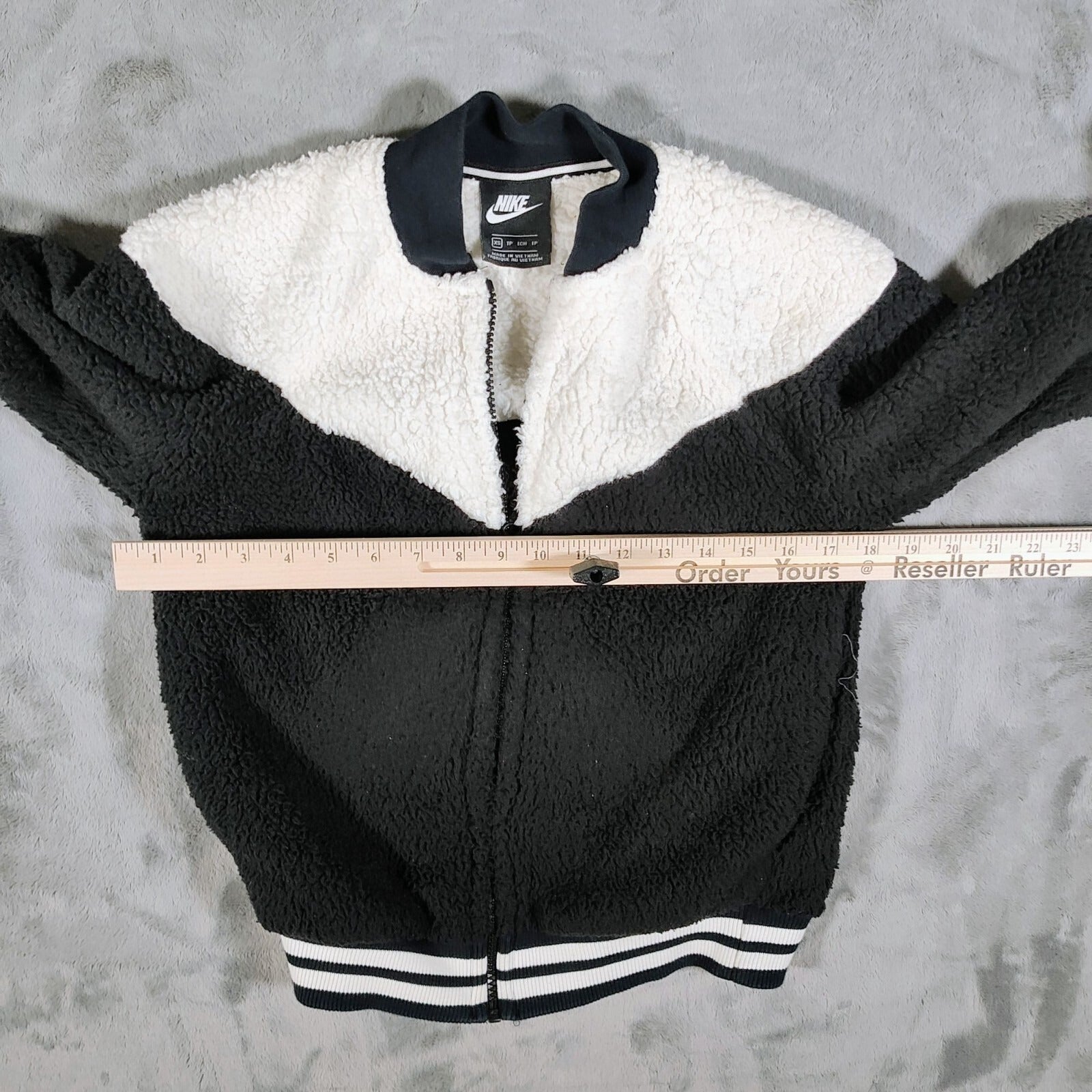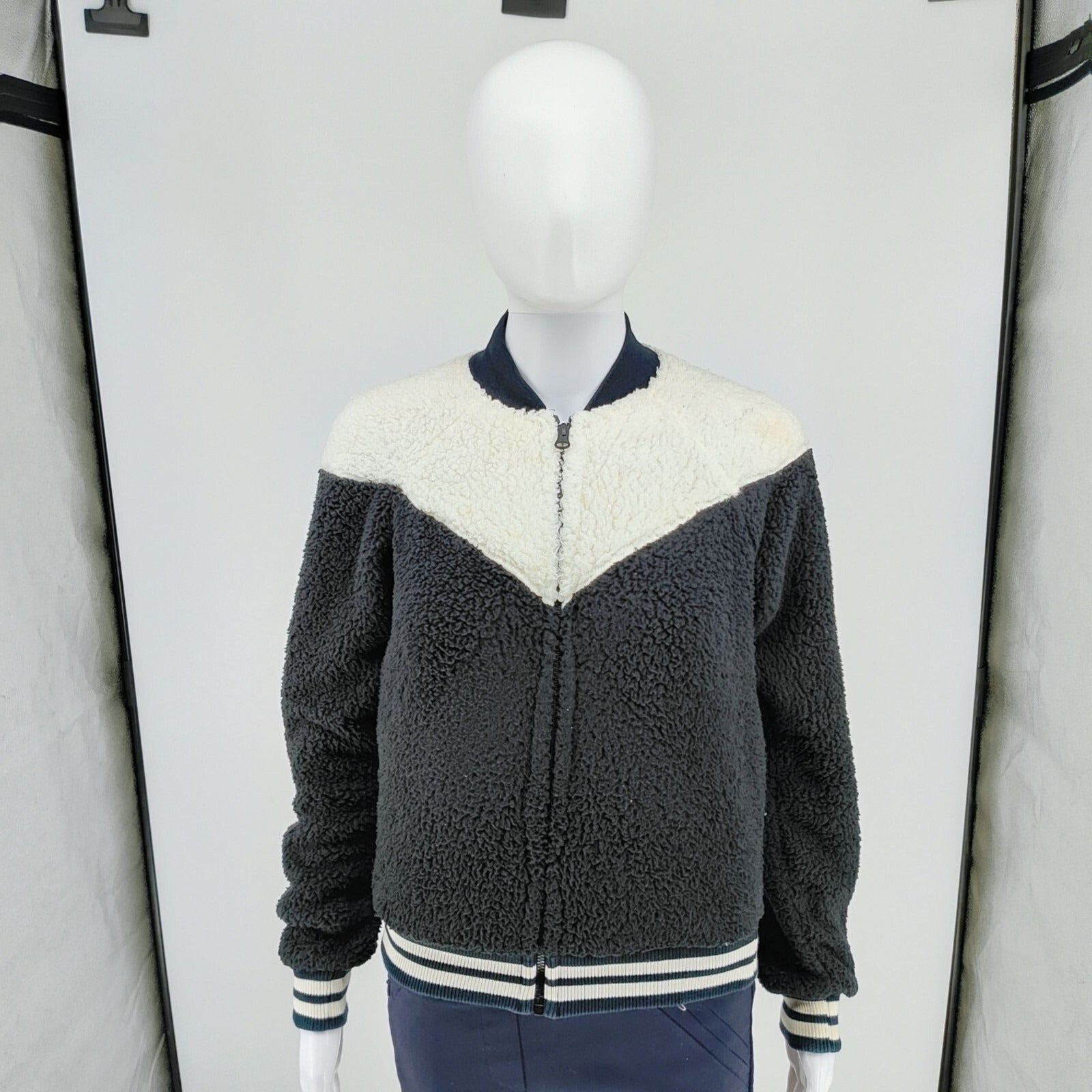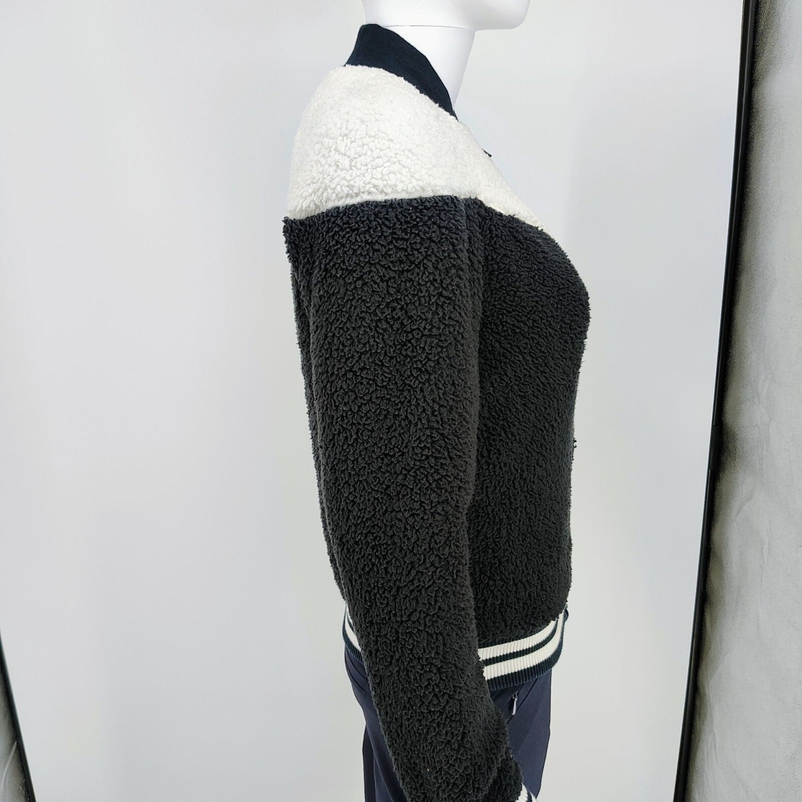 Nike Womens Sherpa Fleece Black and Whi Varsity Jacket XS Black & White Polyeste