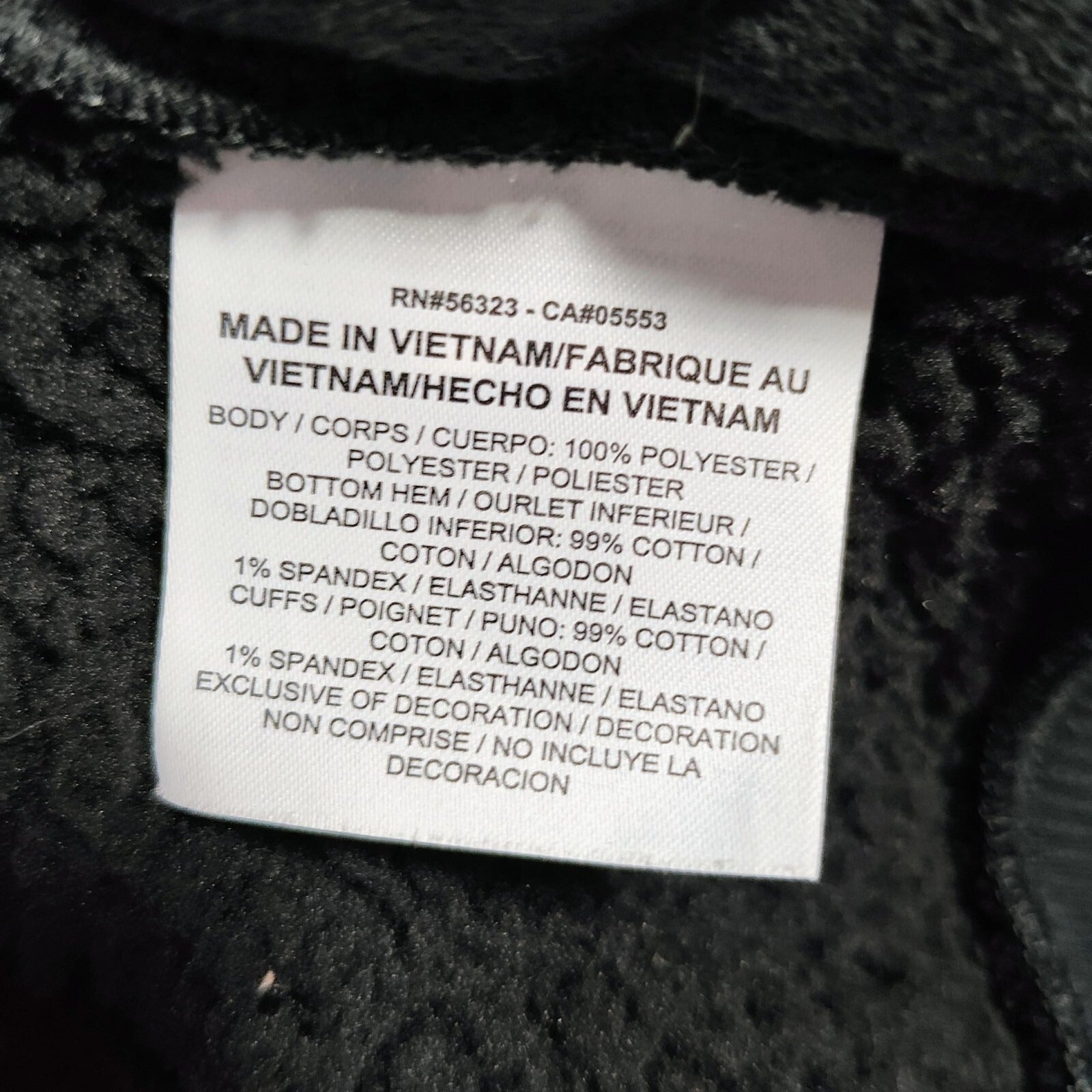 Condition Notes: Good overall condition. Stains on white part of cuff of right sleeve. Moderate wear to the fleece and light fading. See photos.