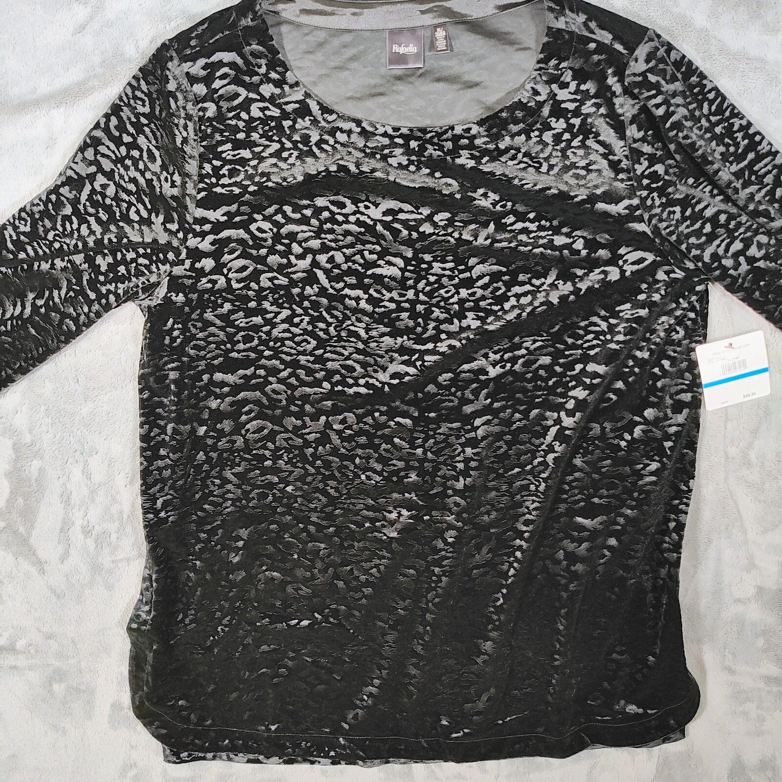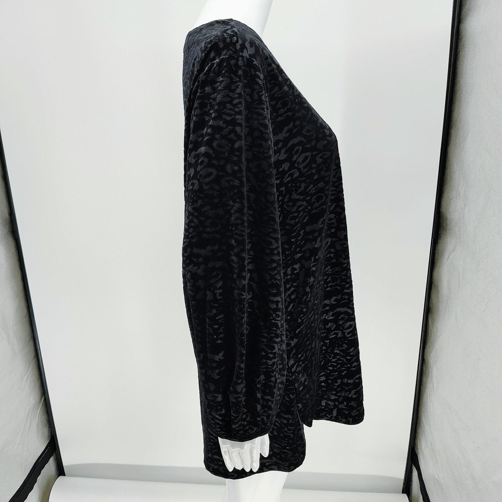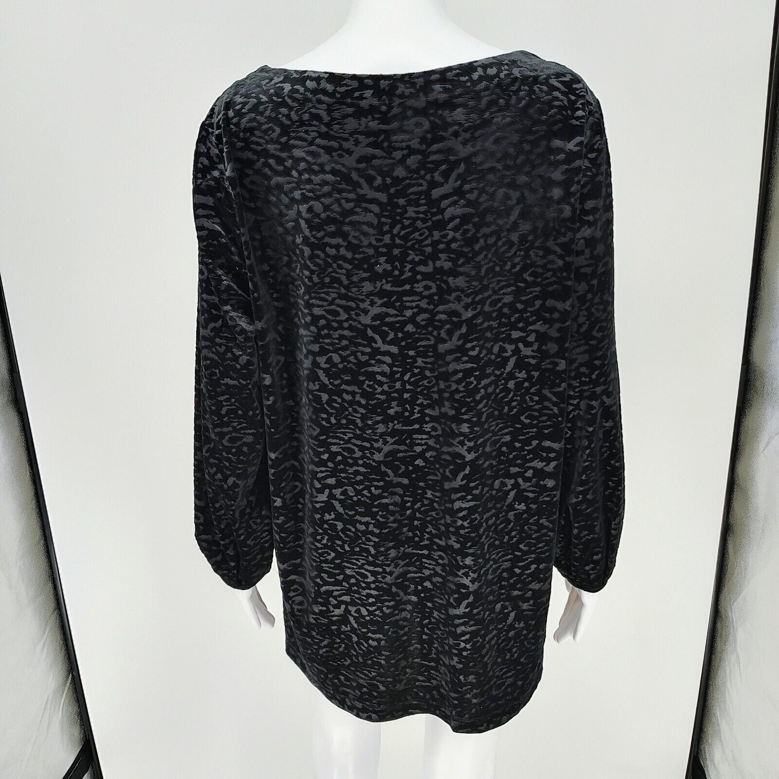 NWT Rafaella Black Velvet Animal Print Long Sleeve Stretch Tunic Top (XL)
