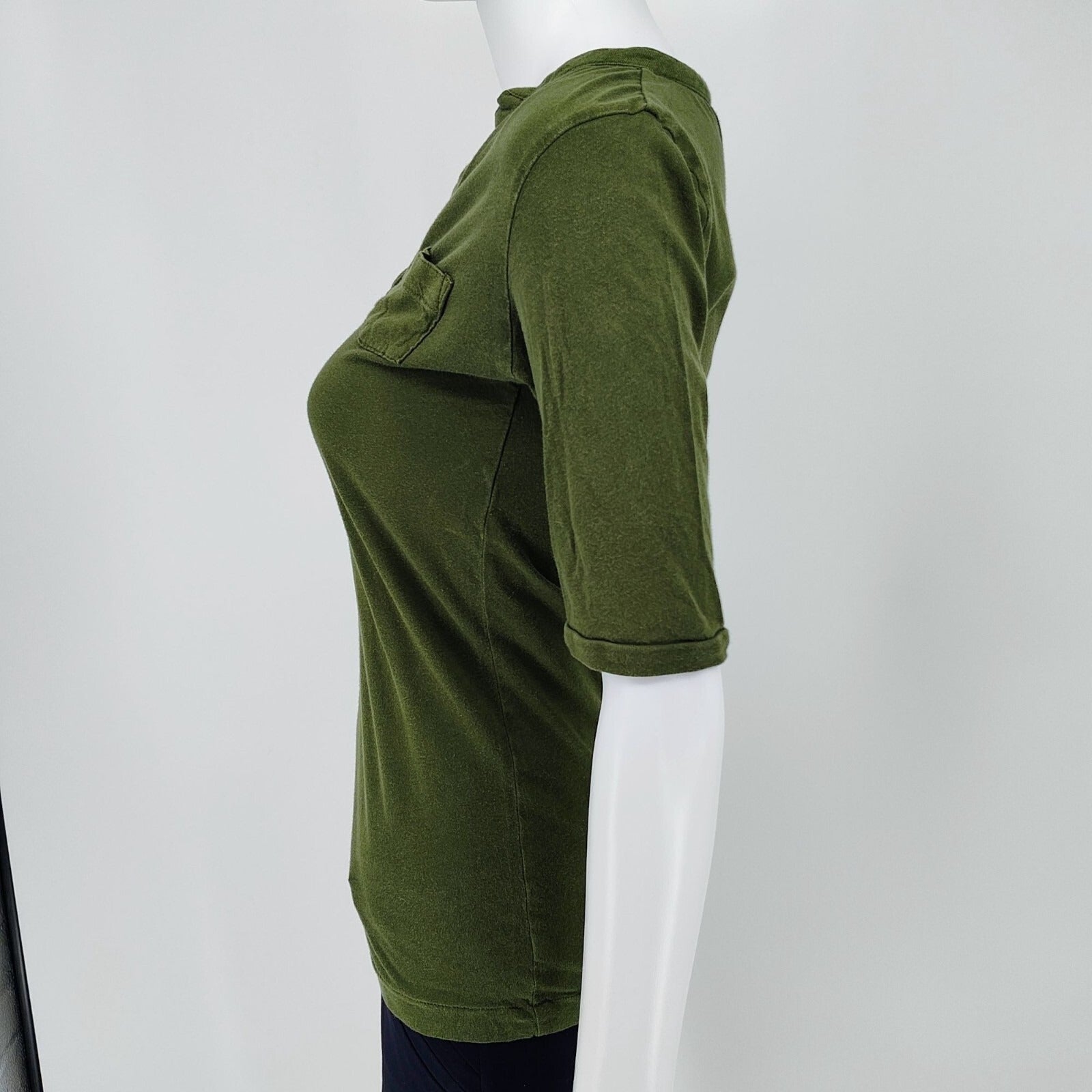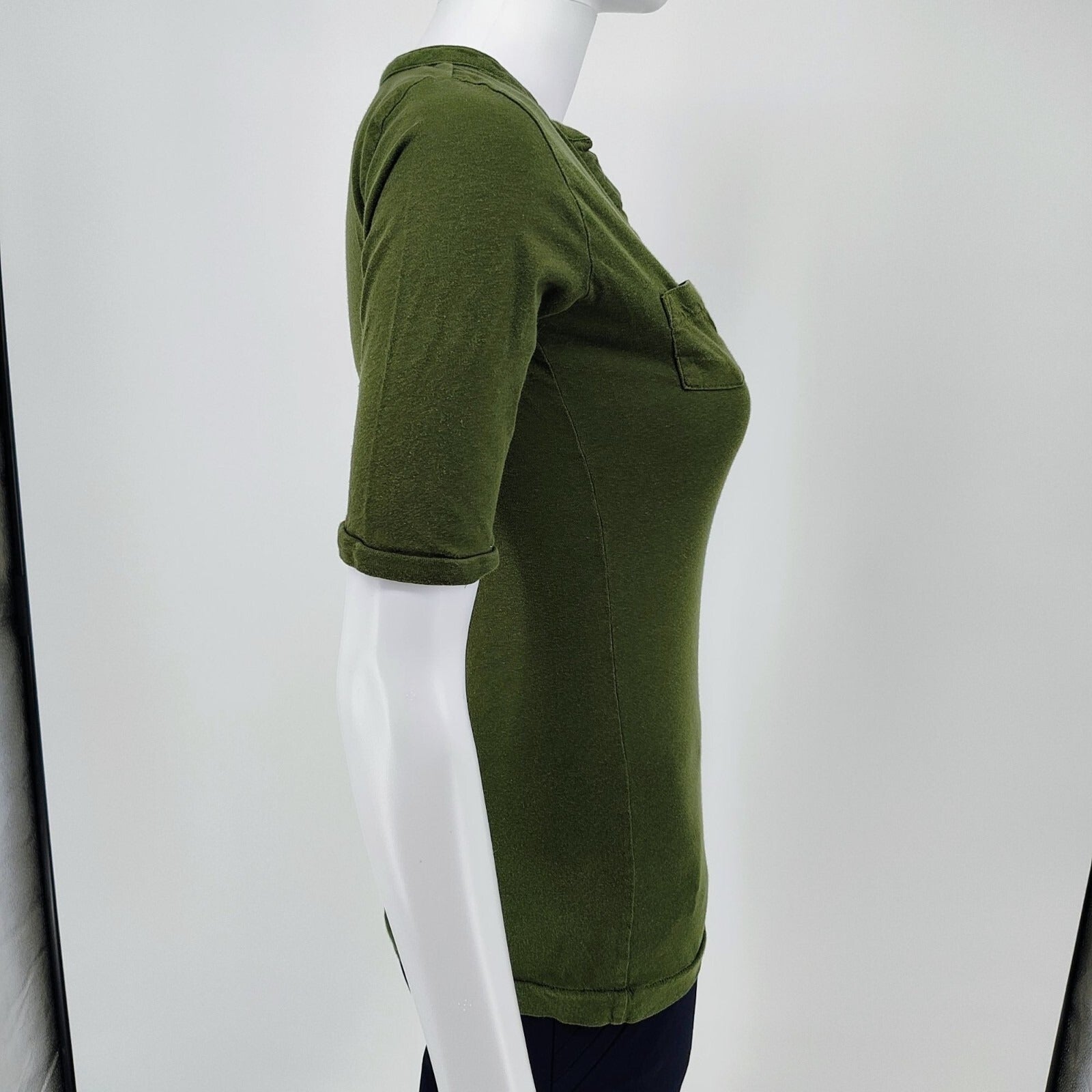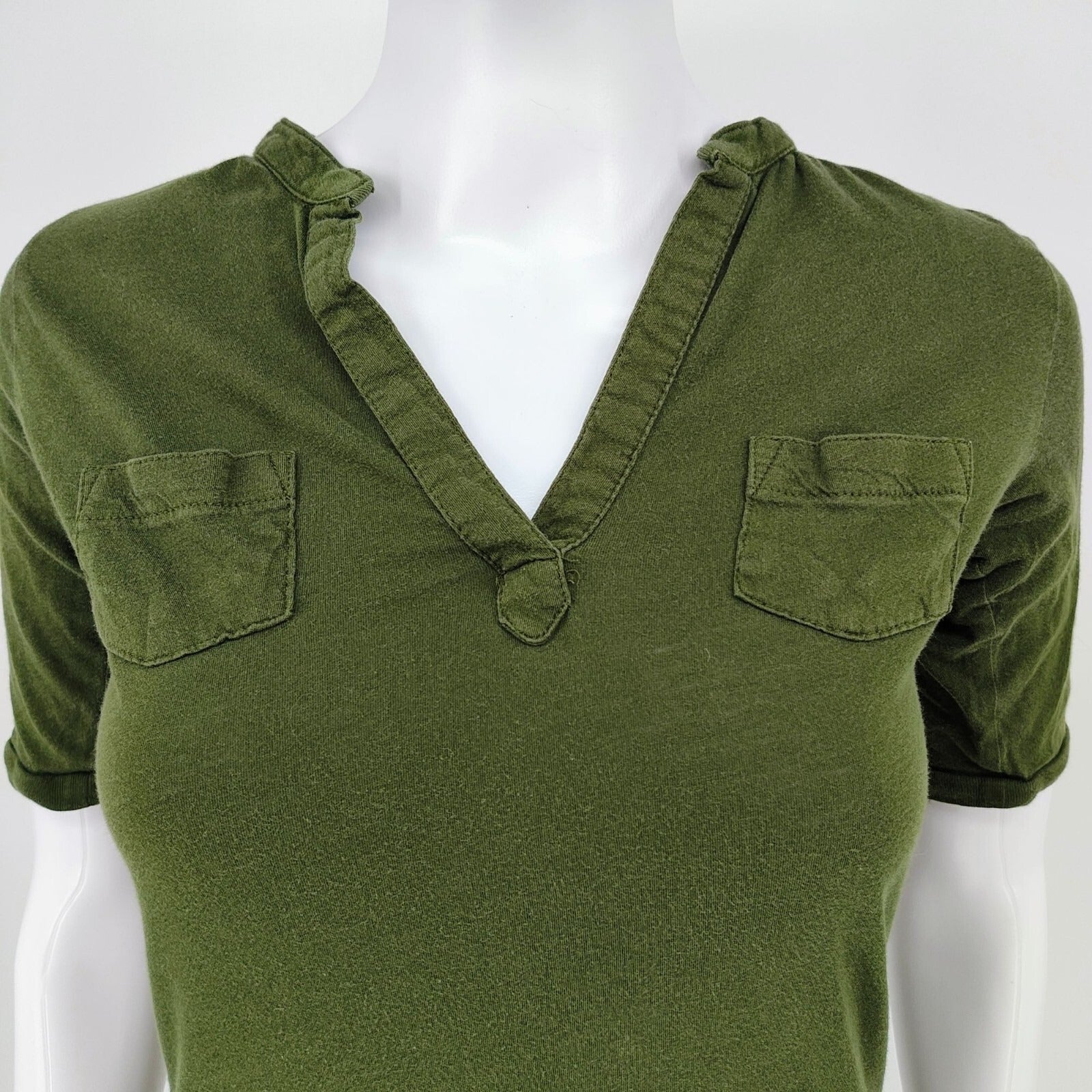 Old Navy Women's Army Green V-Neck Collared Cotton Shirt With Pockets (Small)