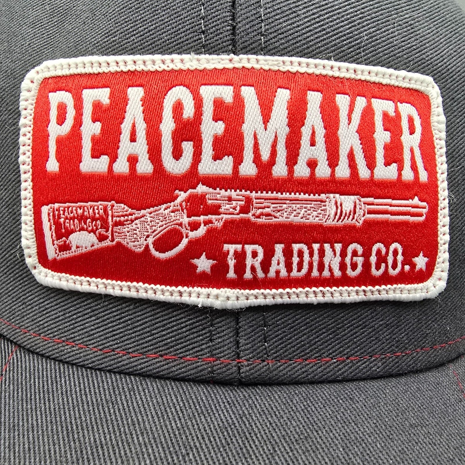 Peacemaker Trading Co. Patch Logo Gray & Red Snapback Richardson Trucker Hat