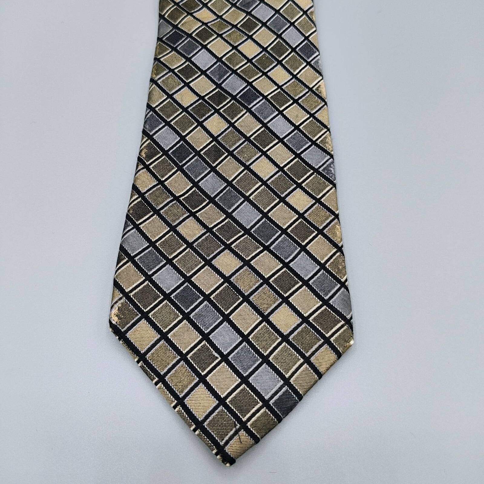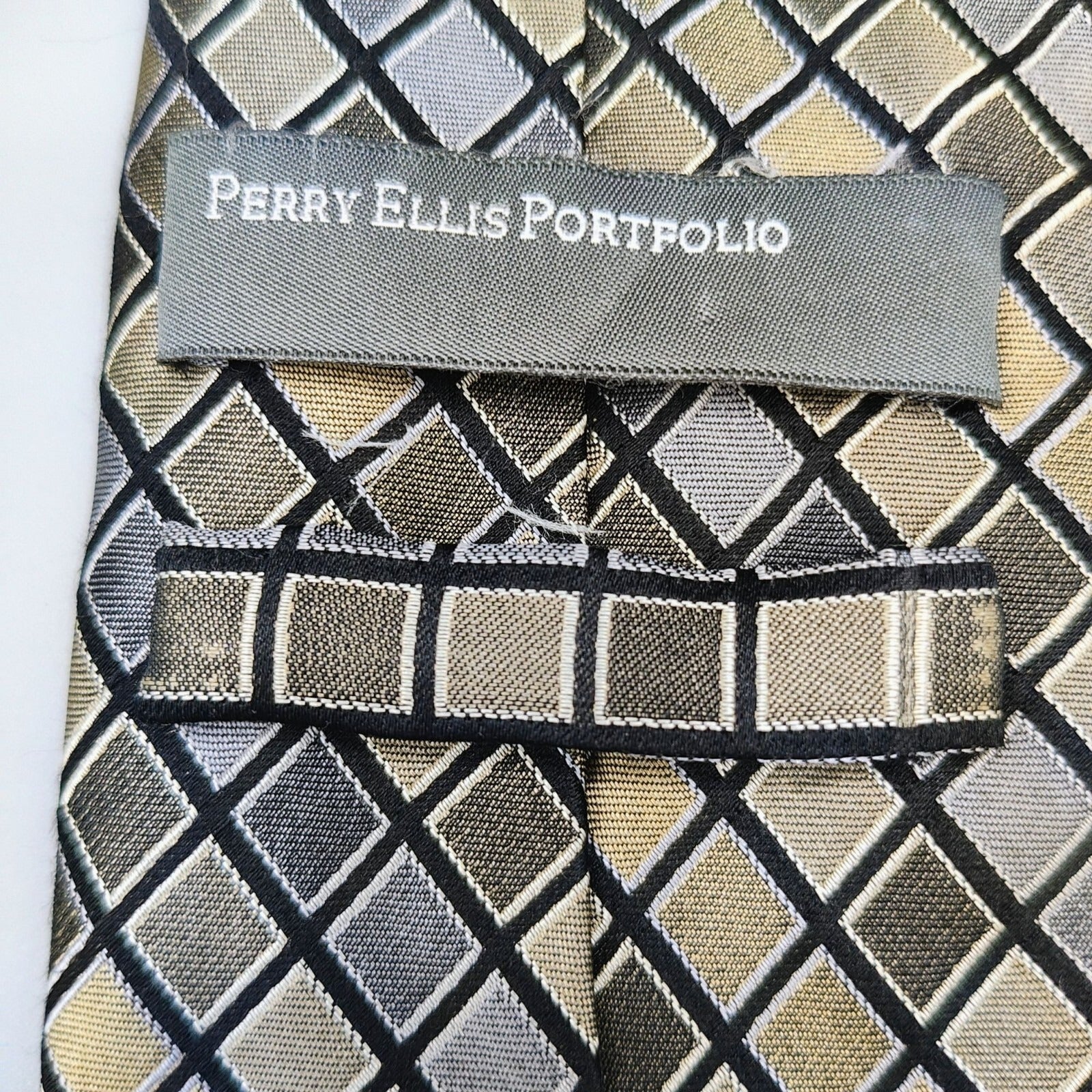 Perry Ellis Portfolio Mens Geometric Checkered Silk Tie (Fair/Good Condition)