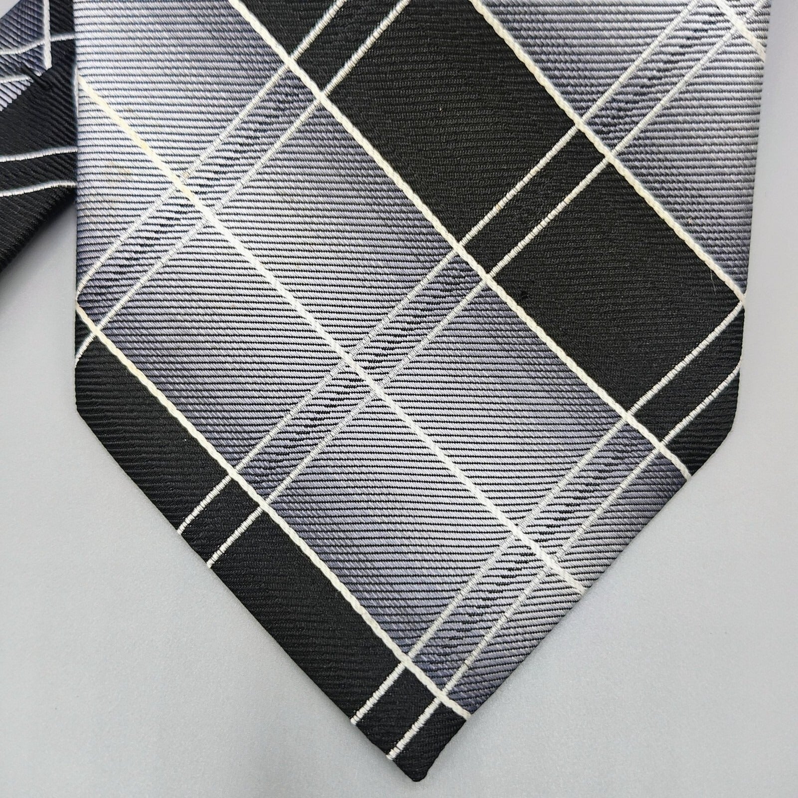 Pierre Cardin Black & Gray Plaid 3.75 " Width 100% Silk Necktie *Stain*