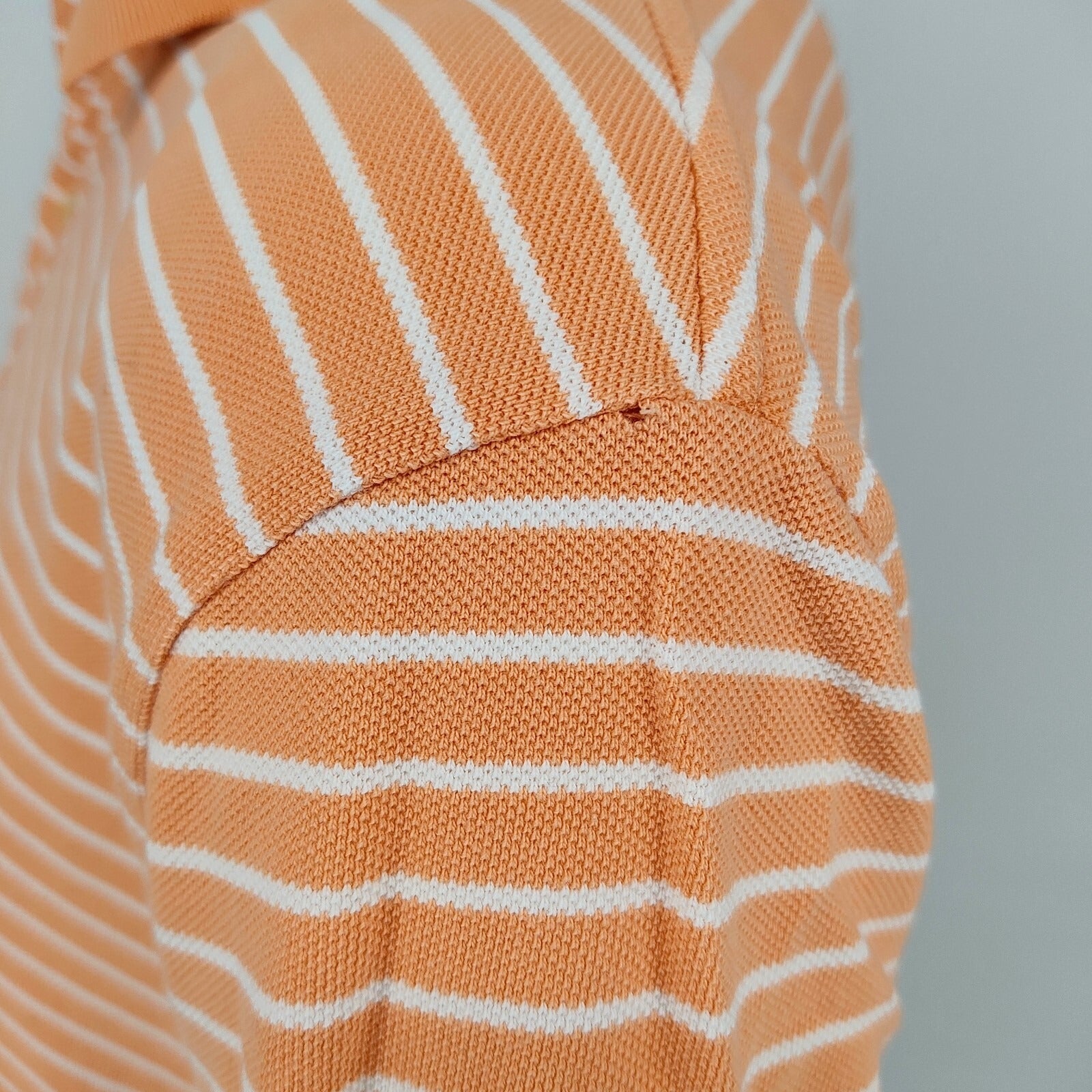 Polo by Ralph Lauren Orange Peach Striped Polo Blue Pony Logo (XL)