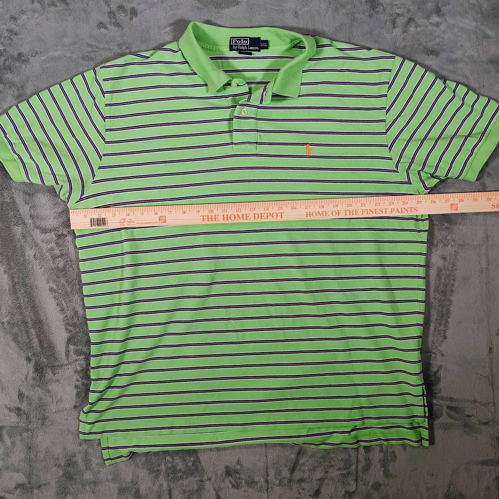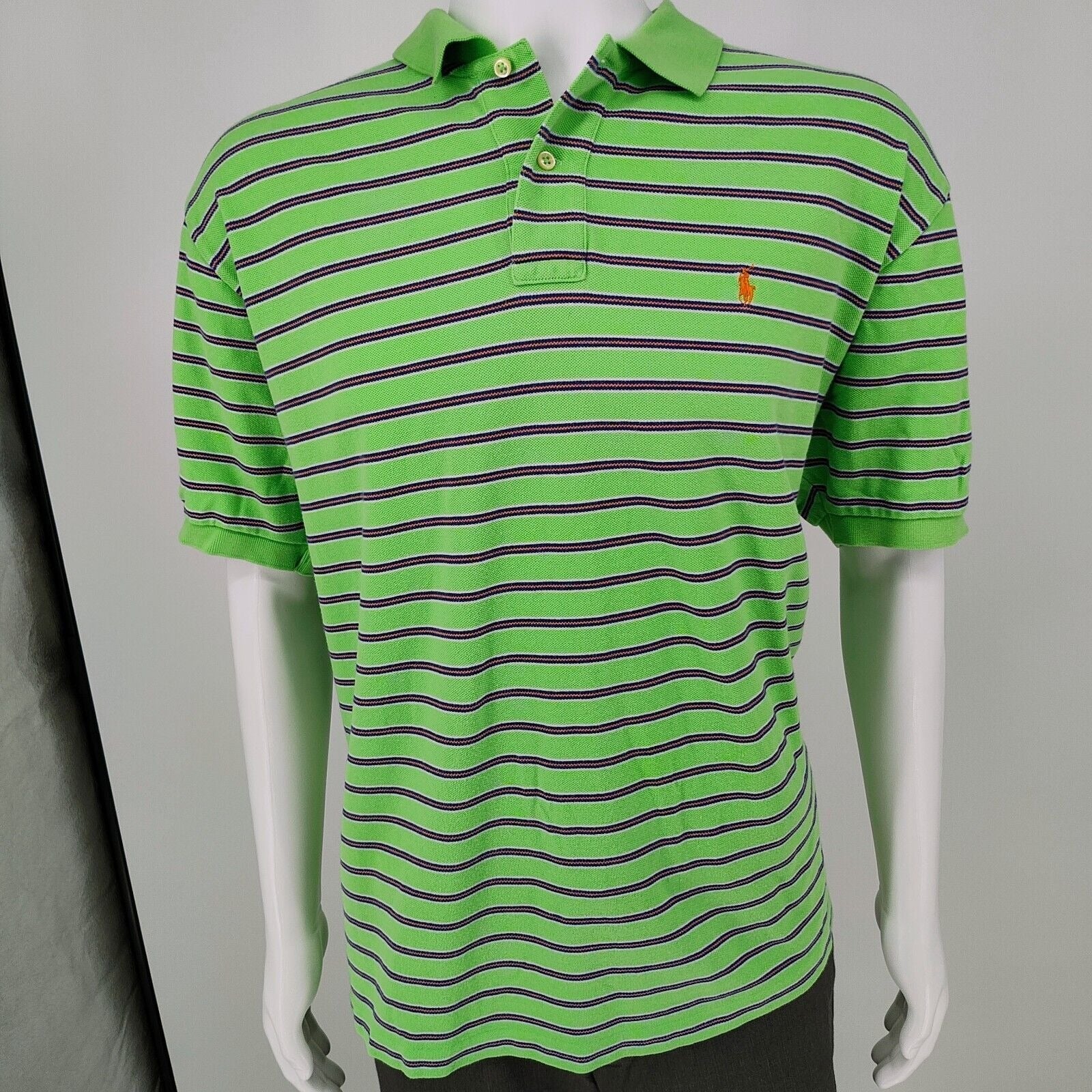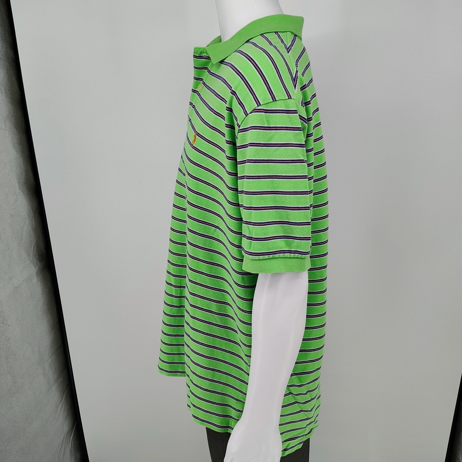 Polo by Ralph Lauren Y2K Green and Orange Striped Polo Orange Pony Logo (XXL)