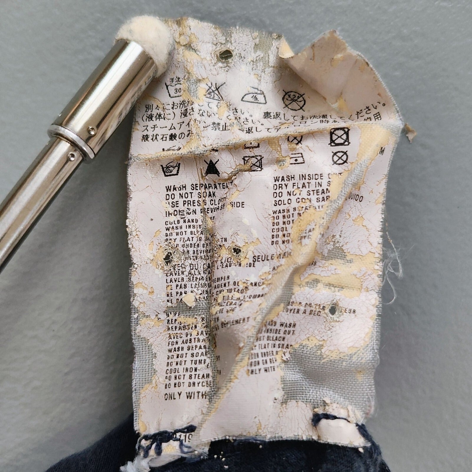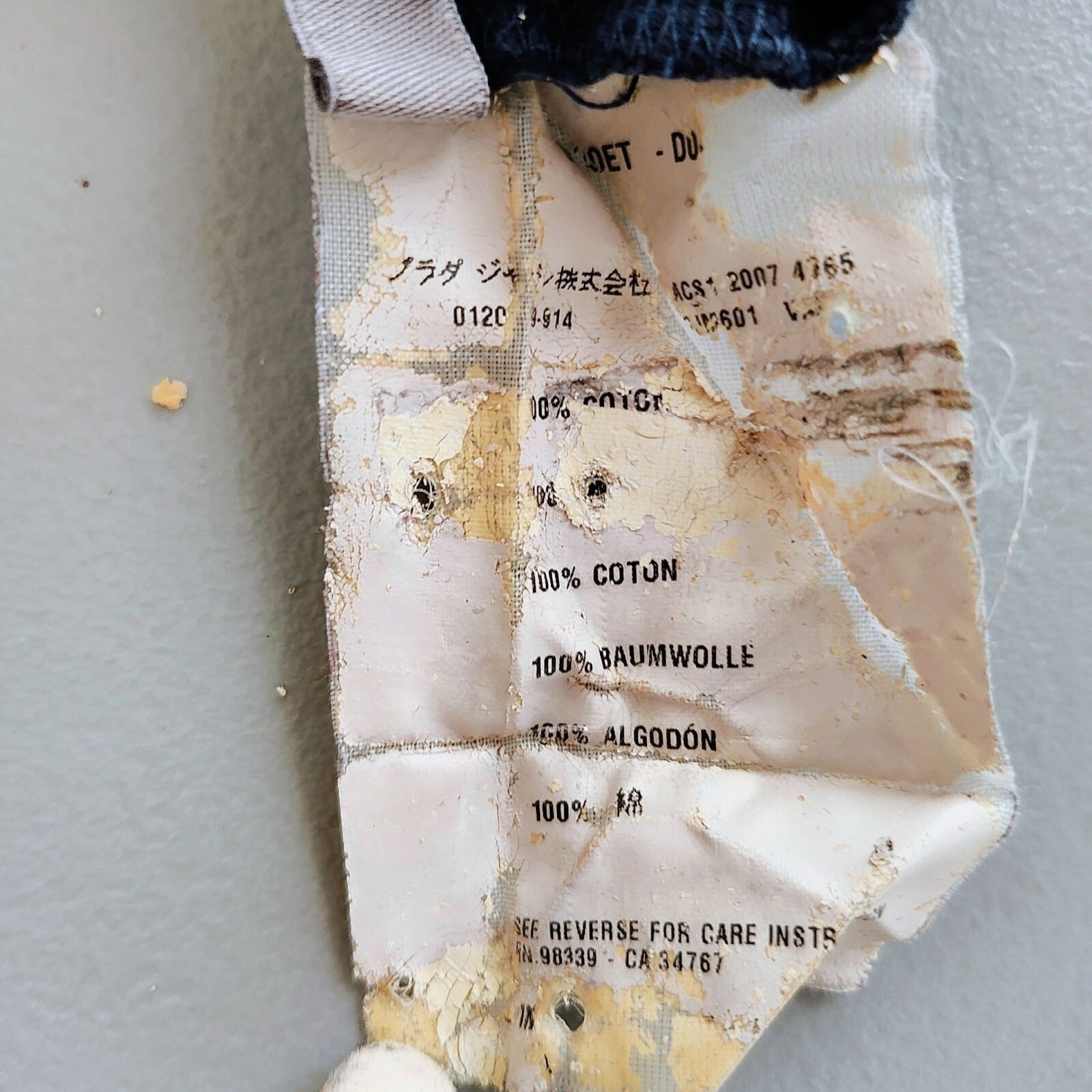 Good condition overall. Moderate fading throughout. Significant degradation/deterioration of size labels (see pictures). They would best be removed, but I'm keeping them in for the buyer to be able to verify authenticity.