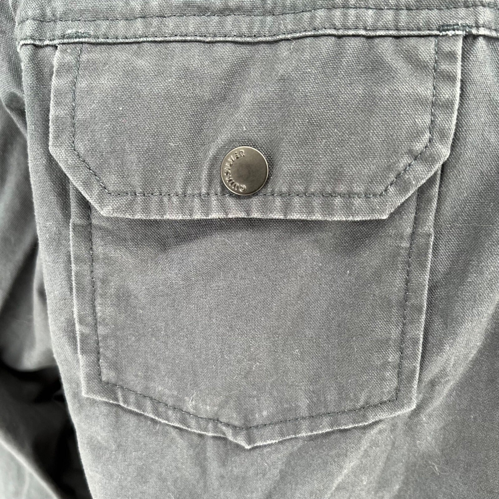 Condition Notes: Fair/good condition. Size tag inaccurate. Drawstring missing from removable hoodie. Moderate fading throughout, with heaviest fading at cuffs. Moderate wear throughout. See photos.