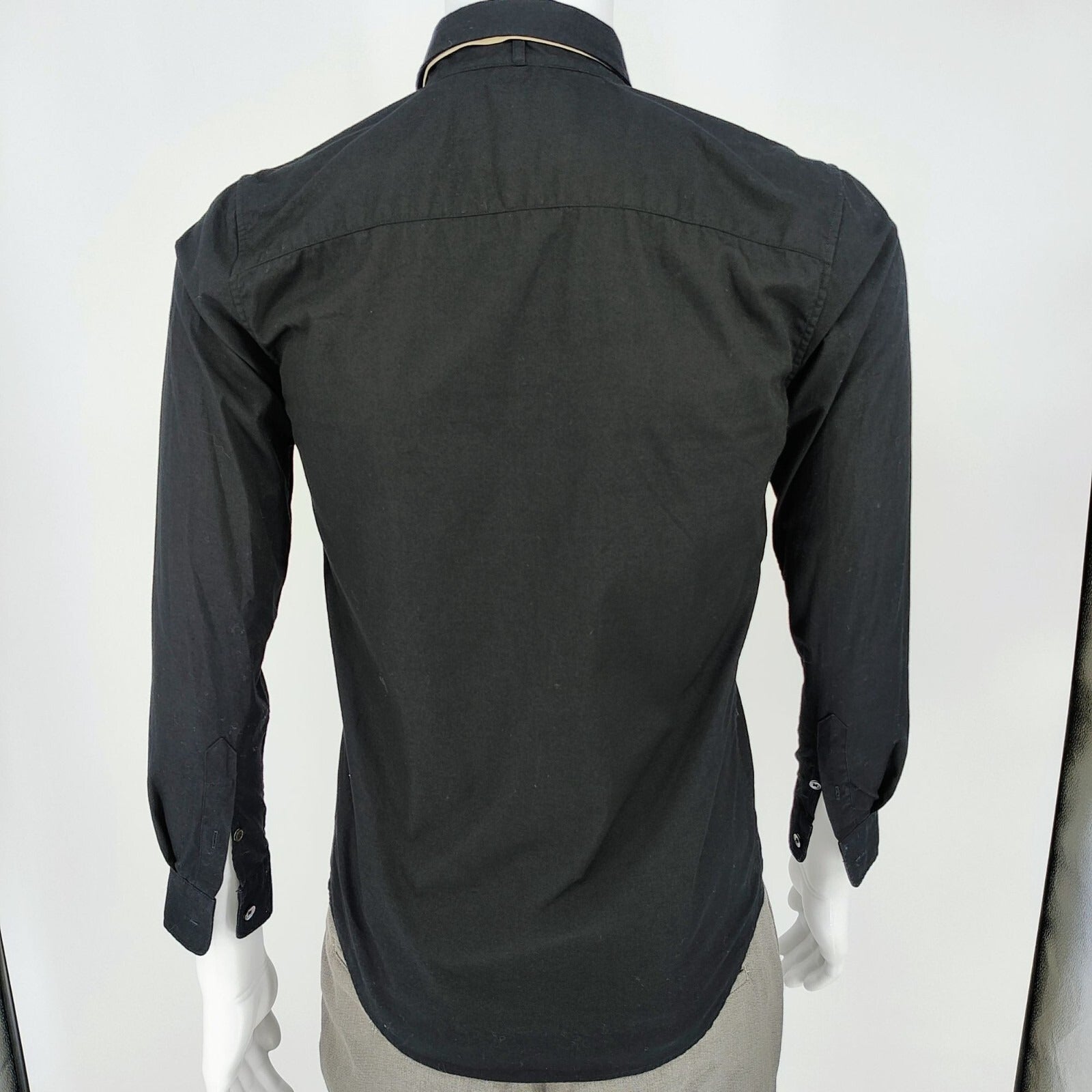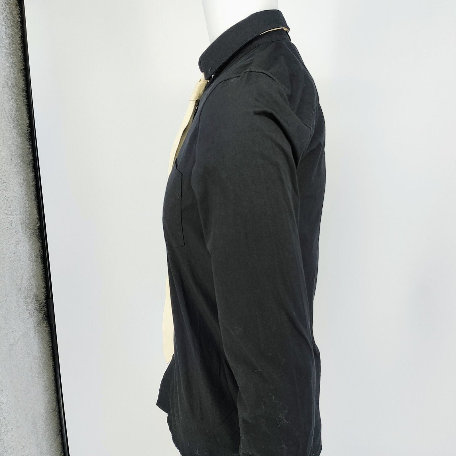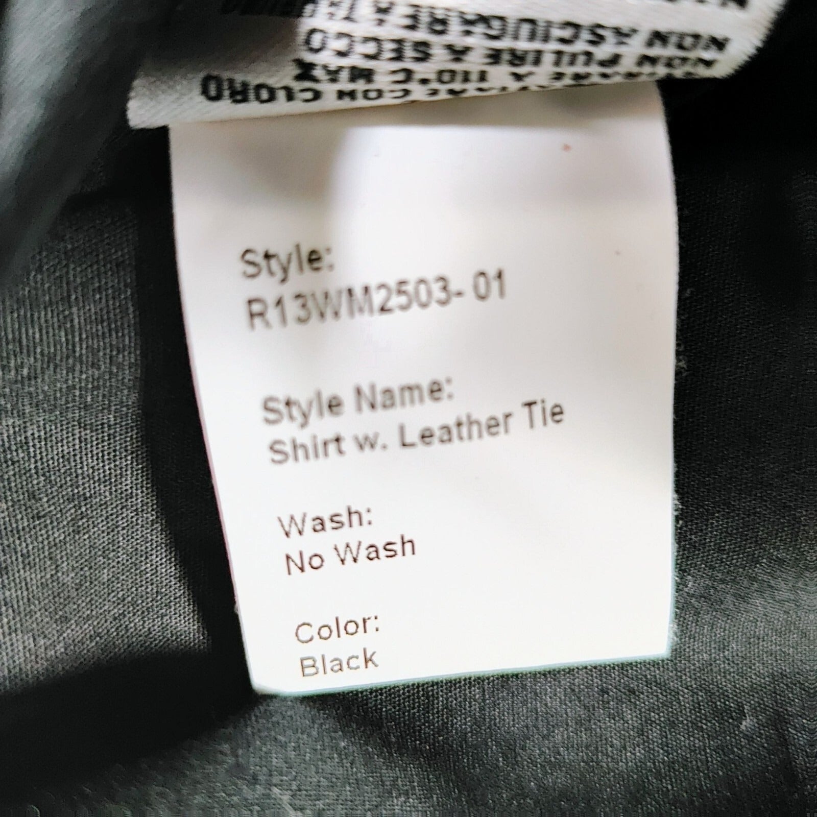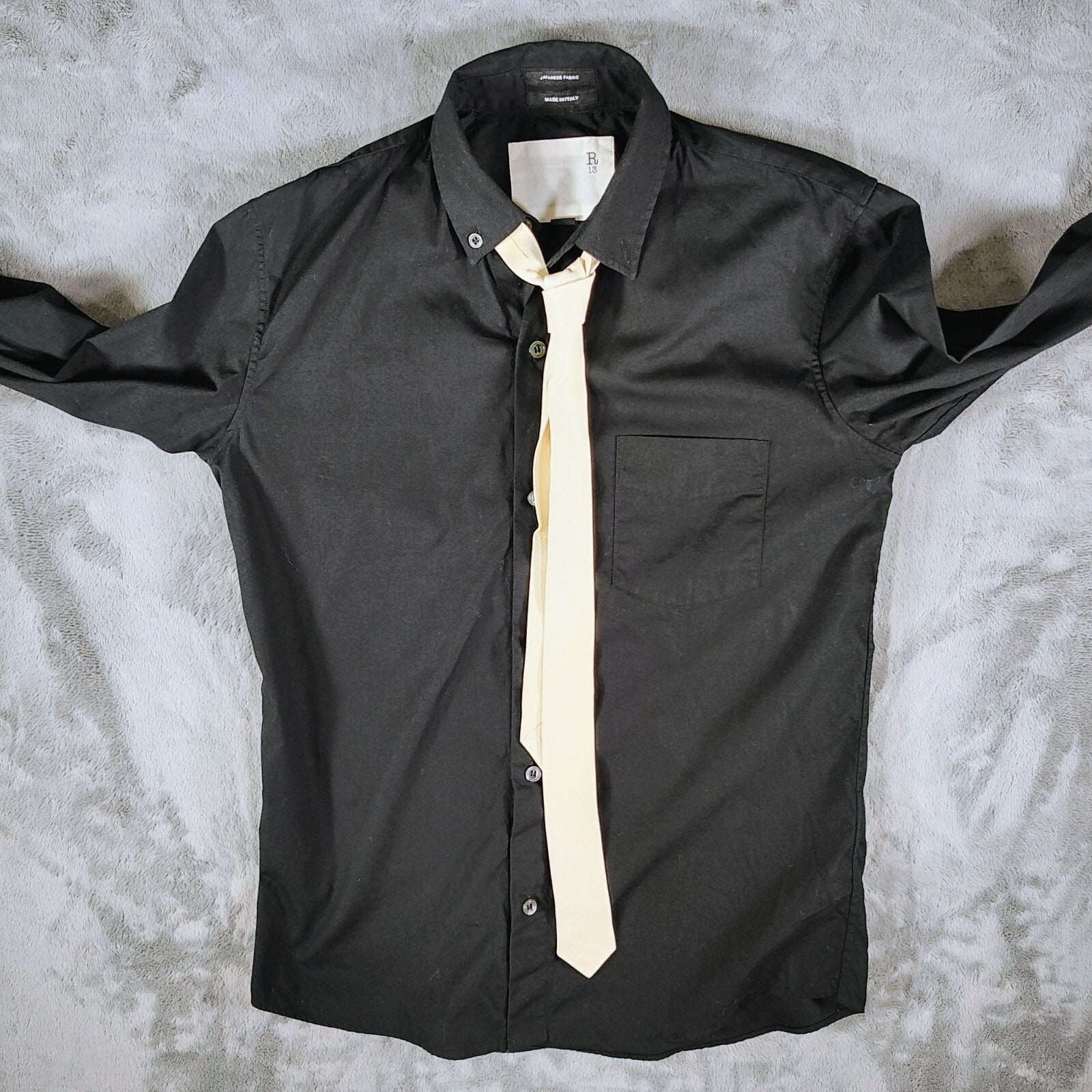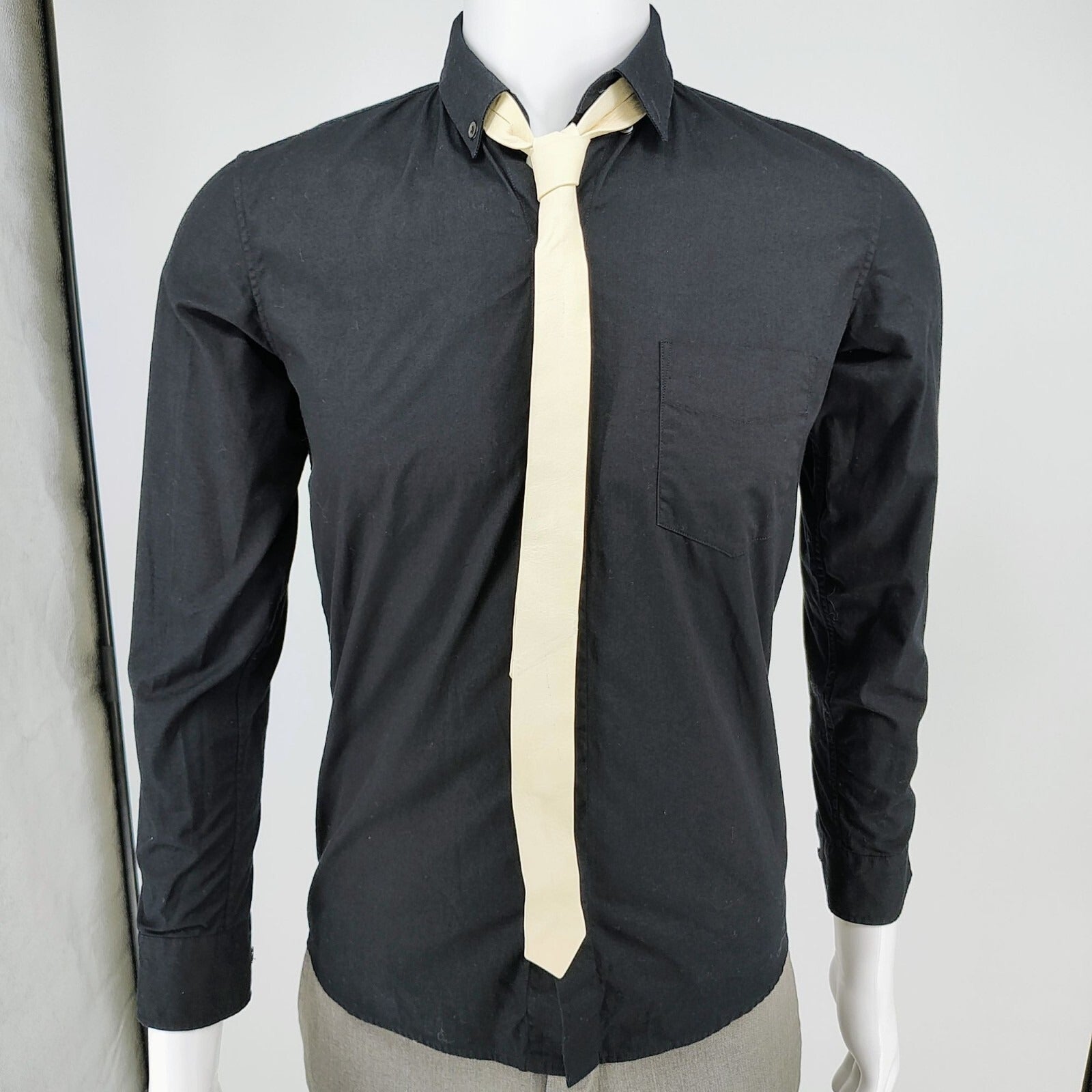 R13 2015 F/W Unisex Luxury Black Button-Down Shirt With Beige Leather Tie (XS)
