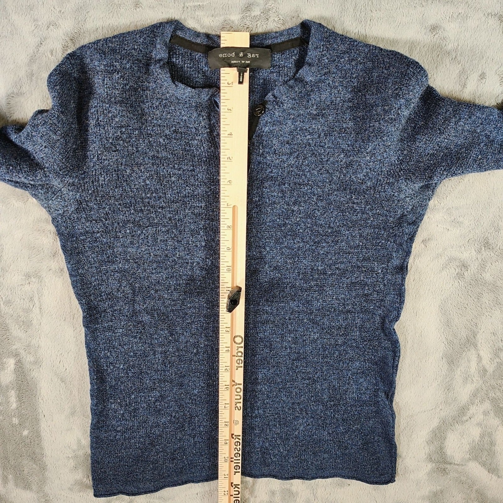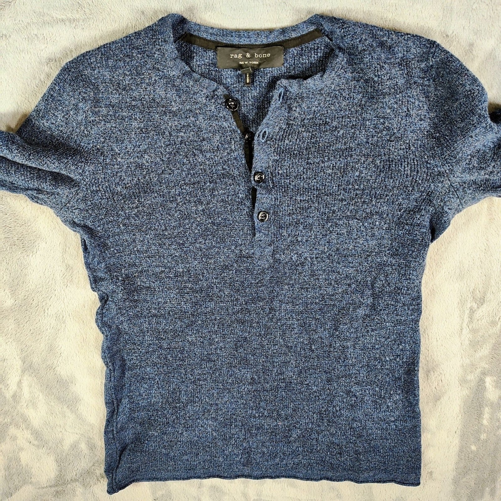Rag & Bone Blue 100% Merino Wool Long Sleeve Henley Pullover Sweater XS