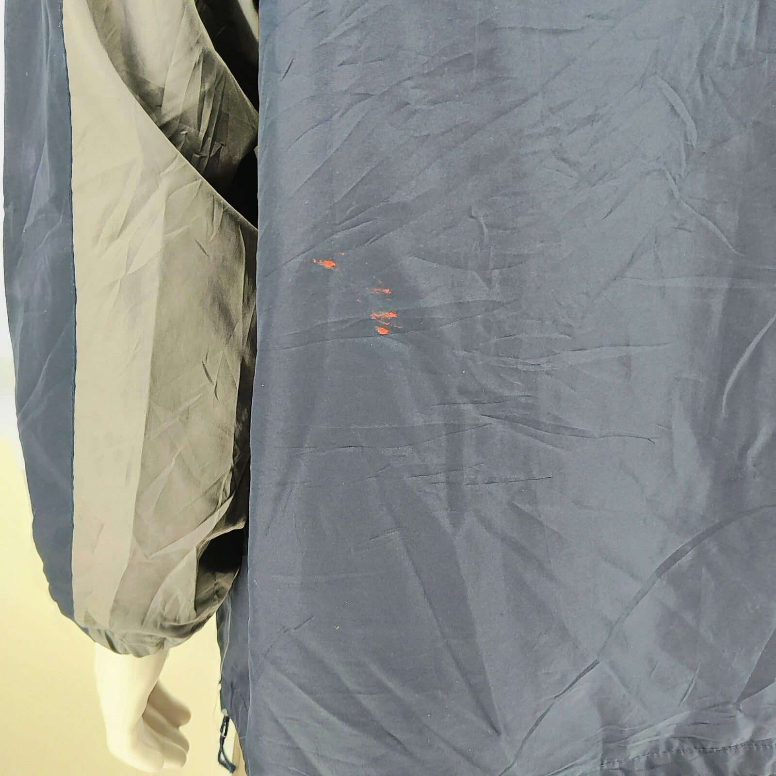 Good condition overall. Moderate wear throughout. Red stain on back left corner of jacket. See pictures
