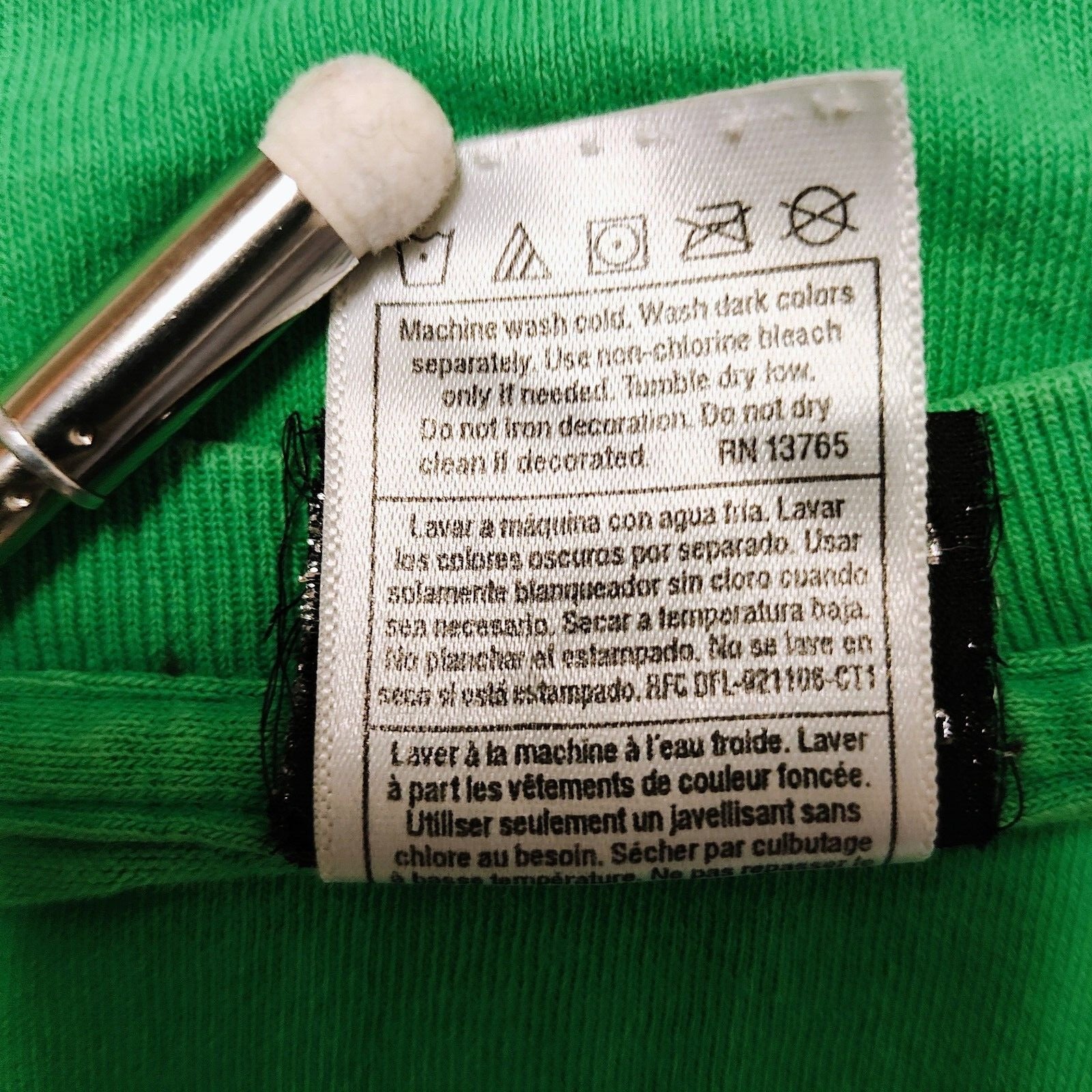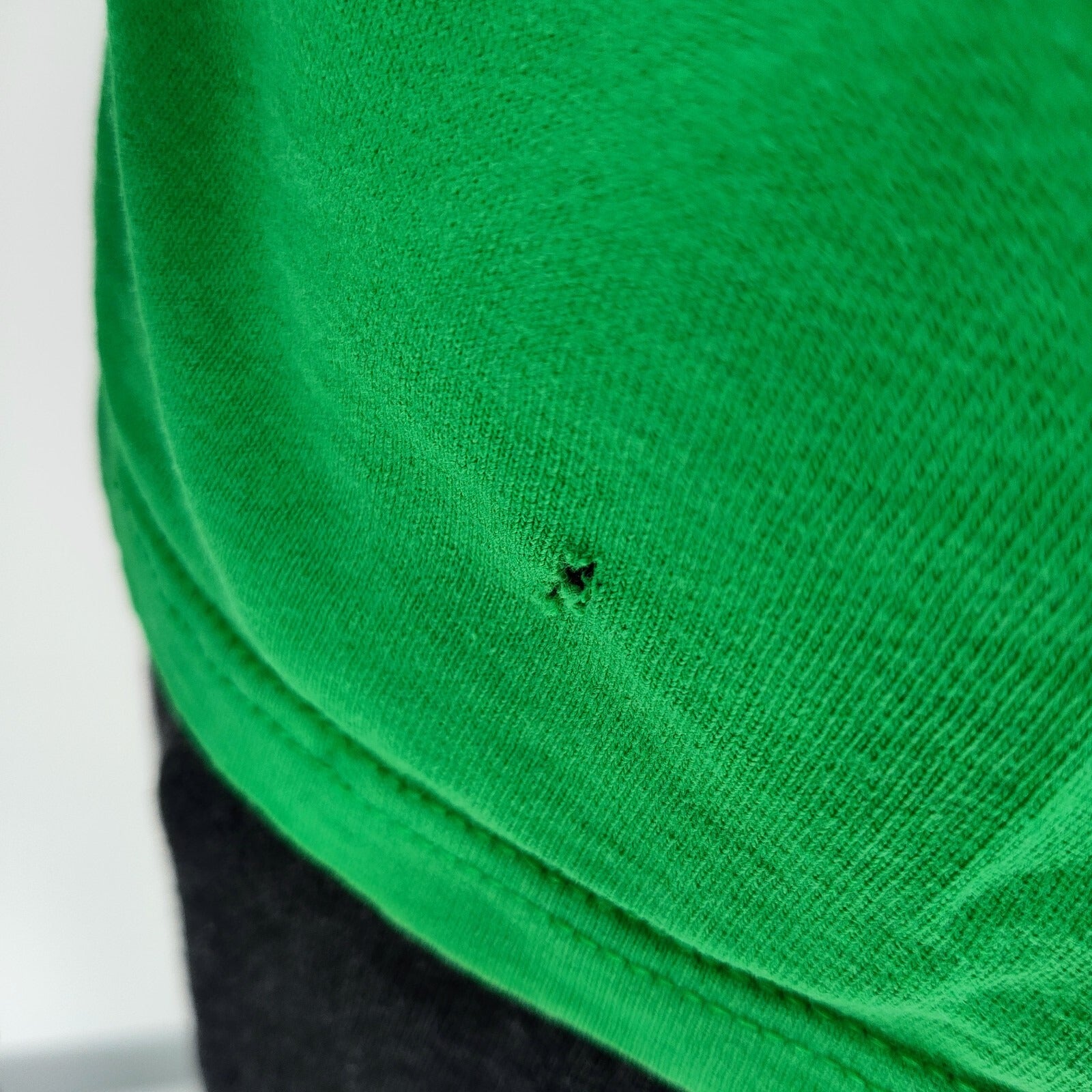 Fair Condition. Extensive discoloration along back of shirt. Small hole on back of shirt (See pictures)