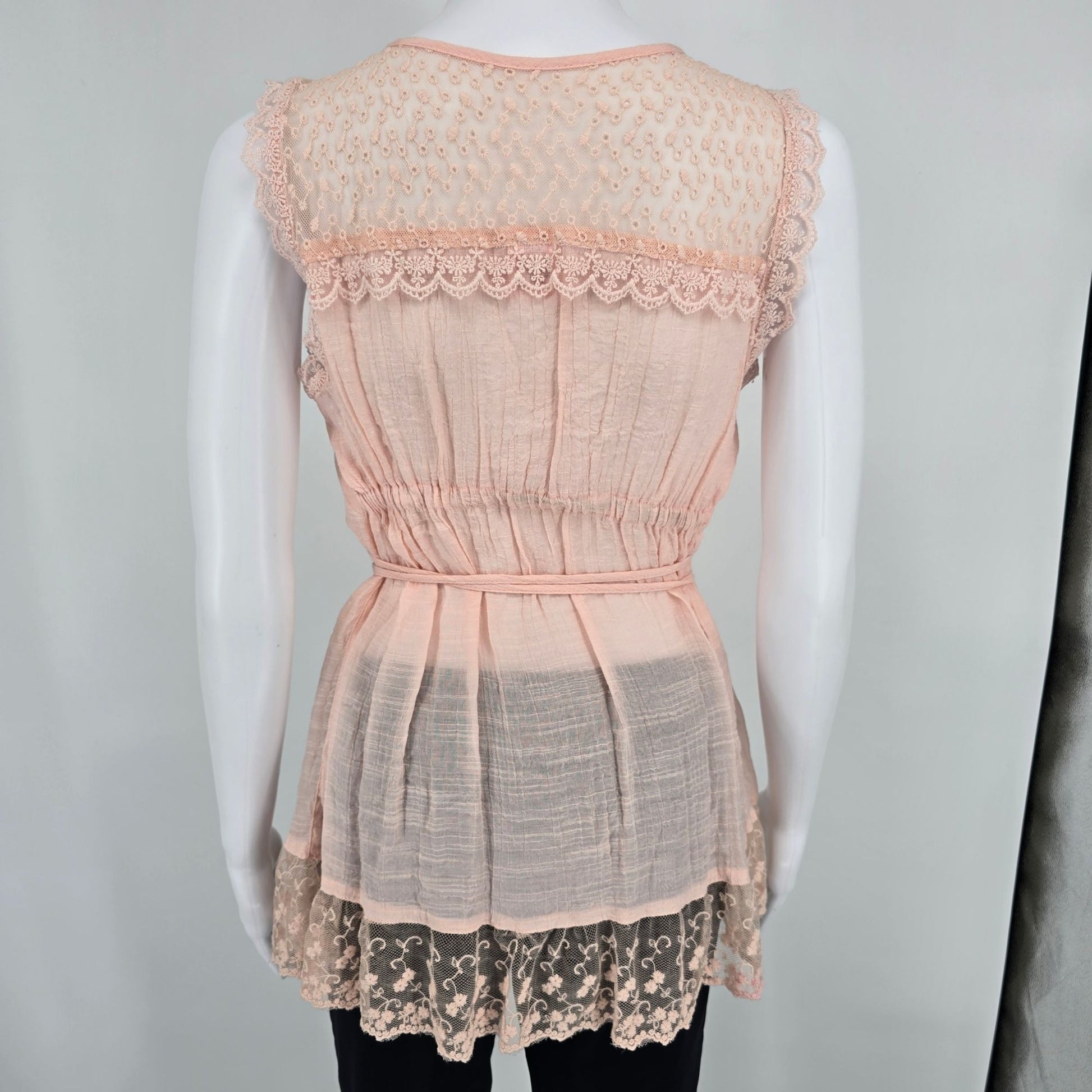 Rue21 Blush Pink Sleeveless Semi-Sheer Lace Trim Coquette Babydoll Top (Small)