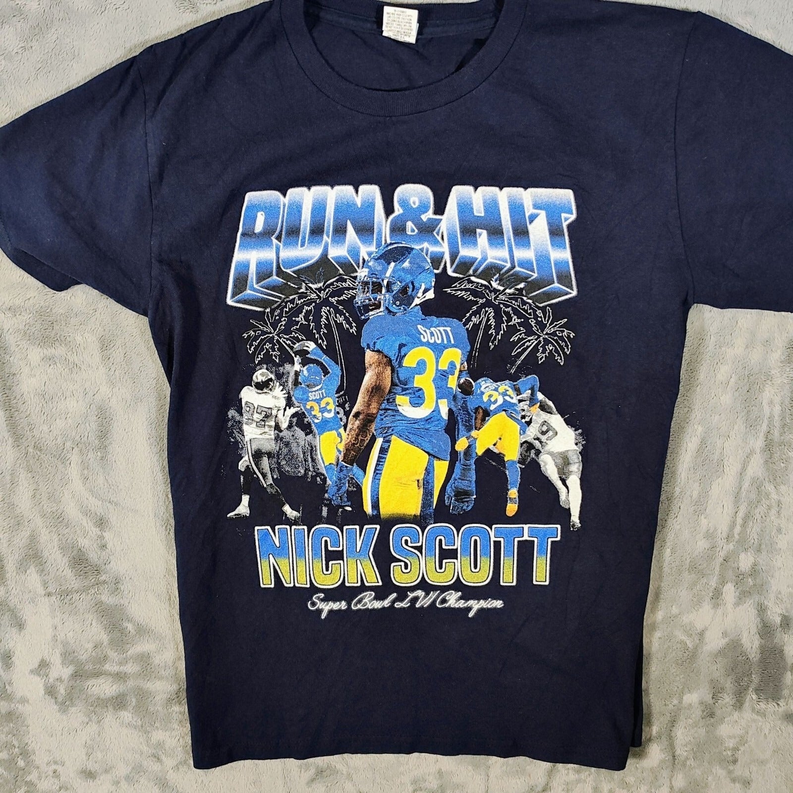 Run & Hit Nick Scott Super Bowl LVI Champion Rams Navy Graphic T-Shirt (Youth L)
