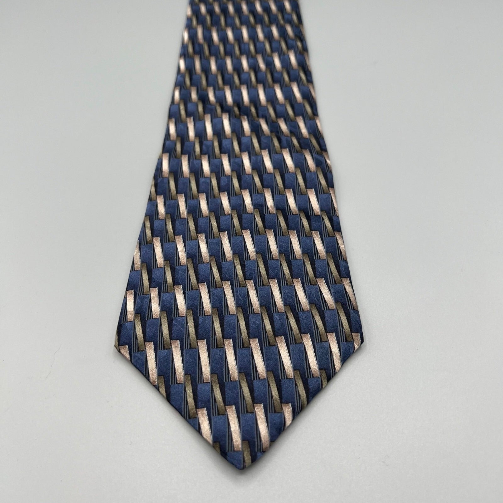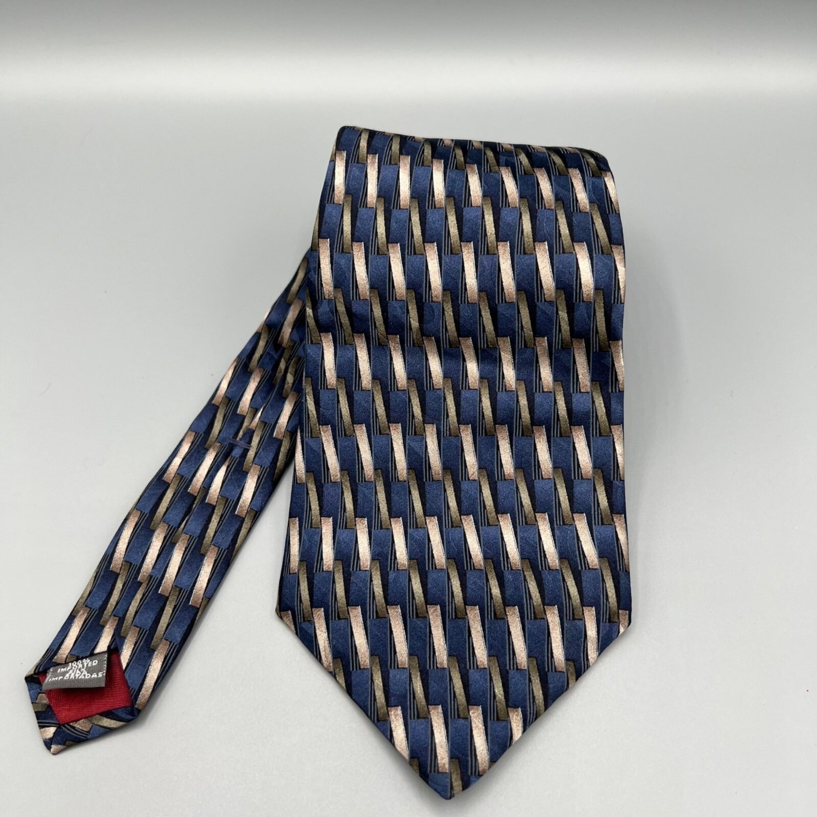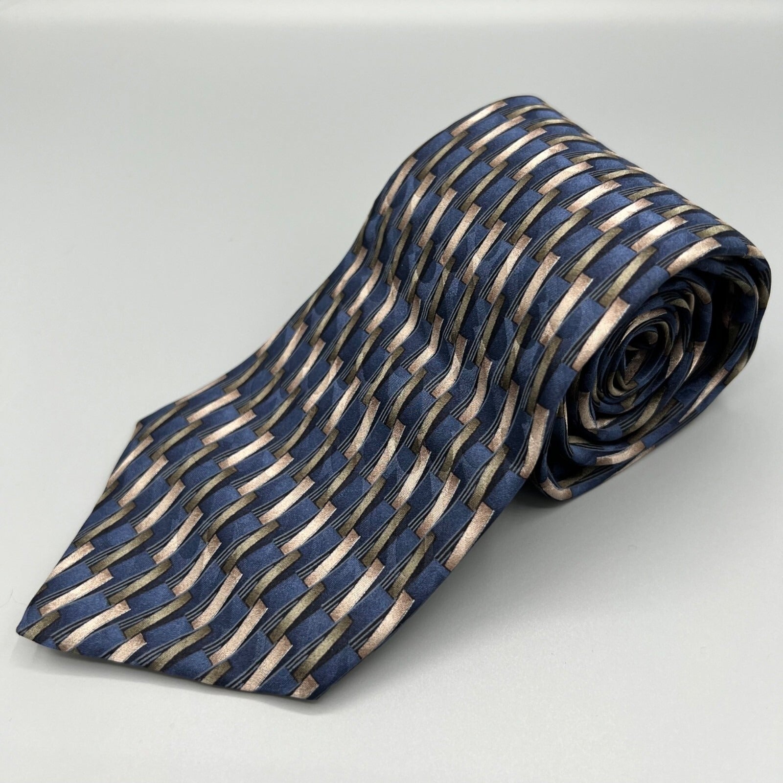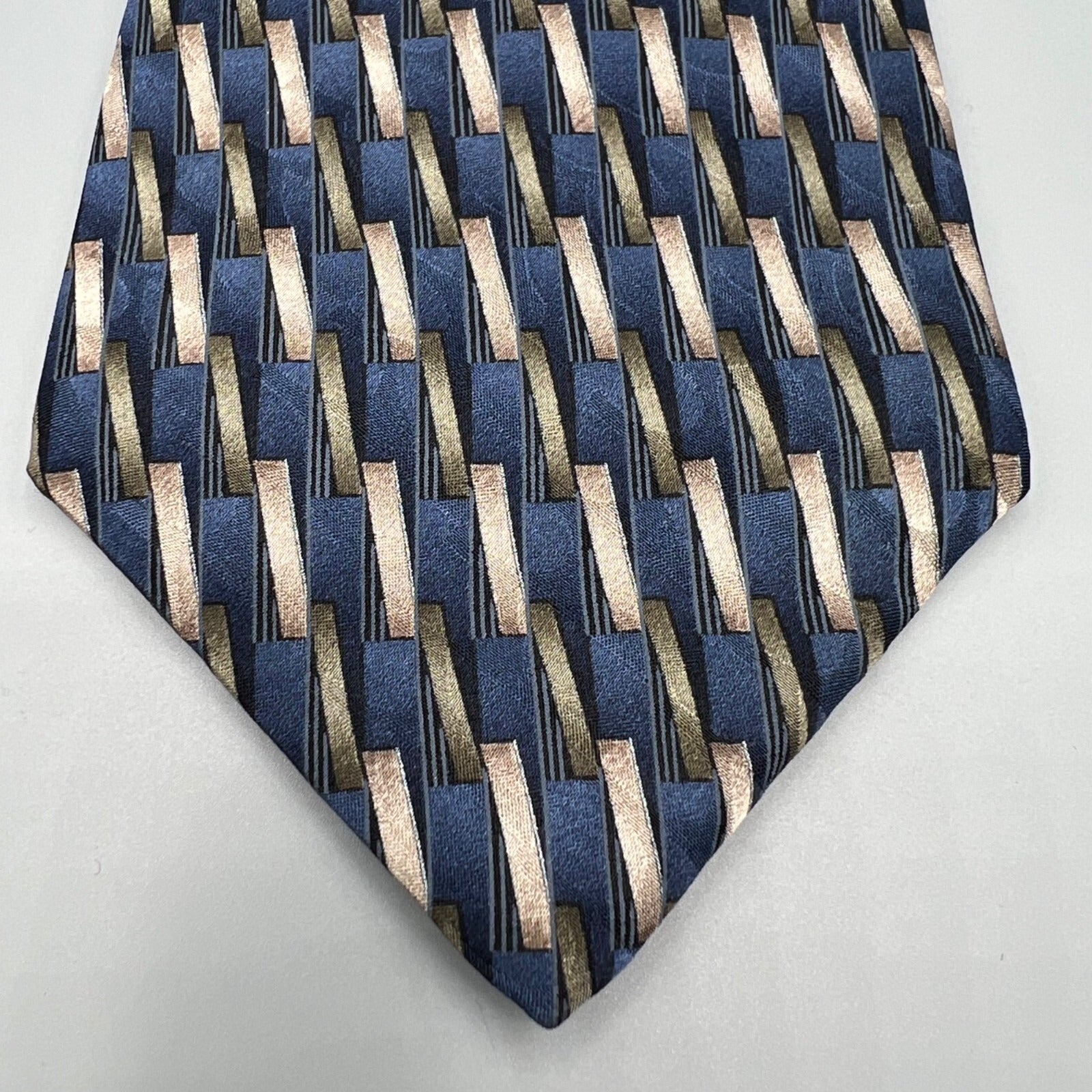 Savile Row Made in USA 100% Silk Blue & Brown Geometric Pattern Wide Silk Tie