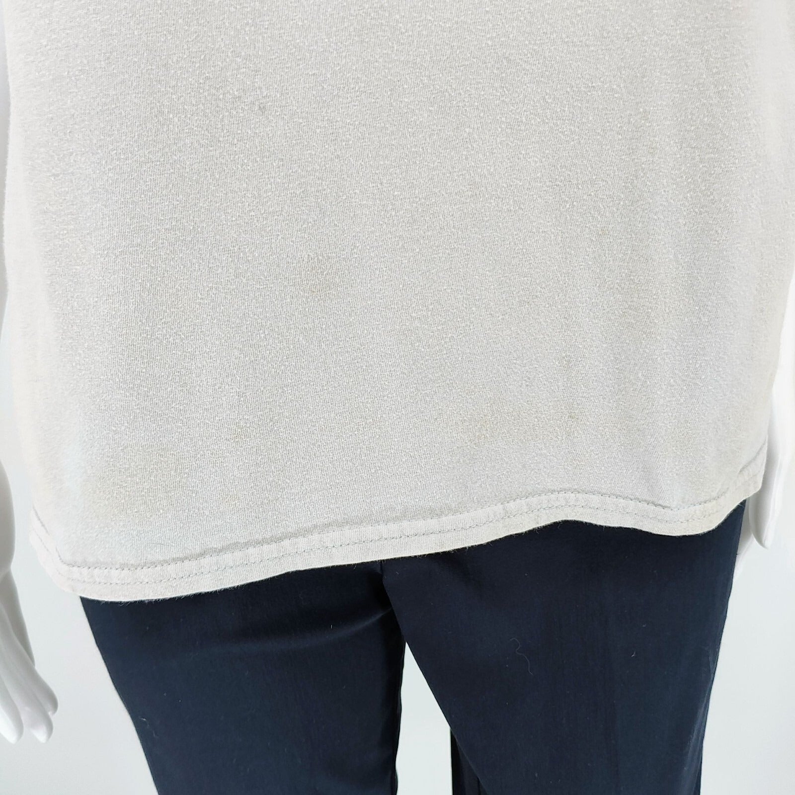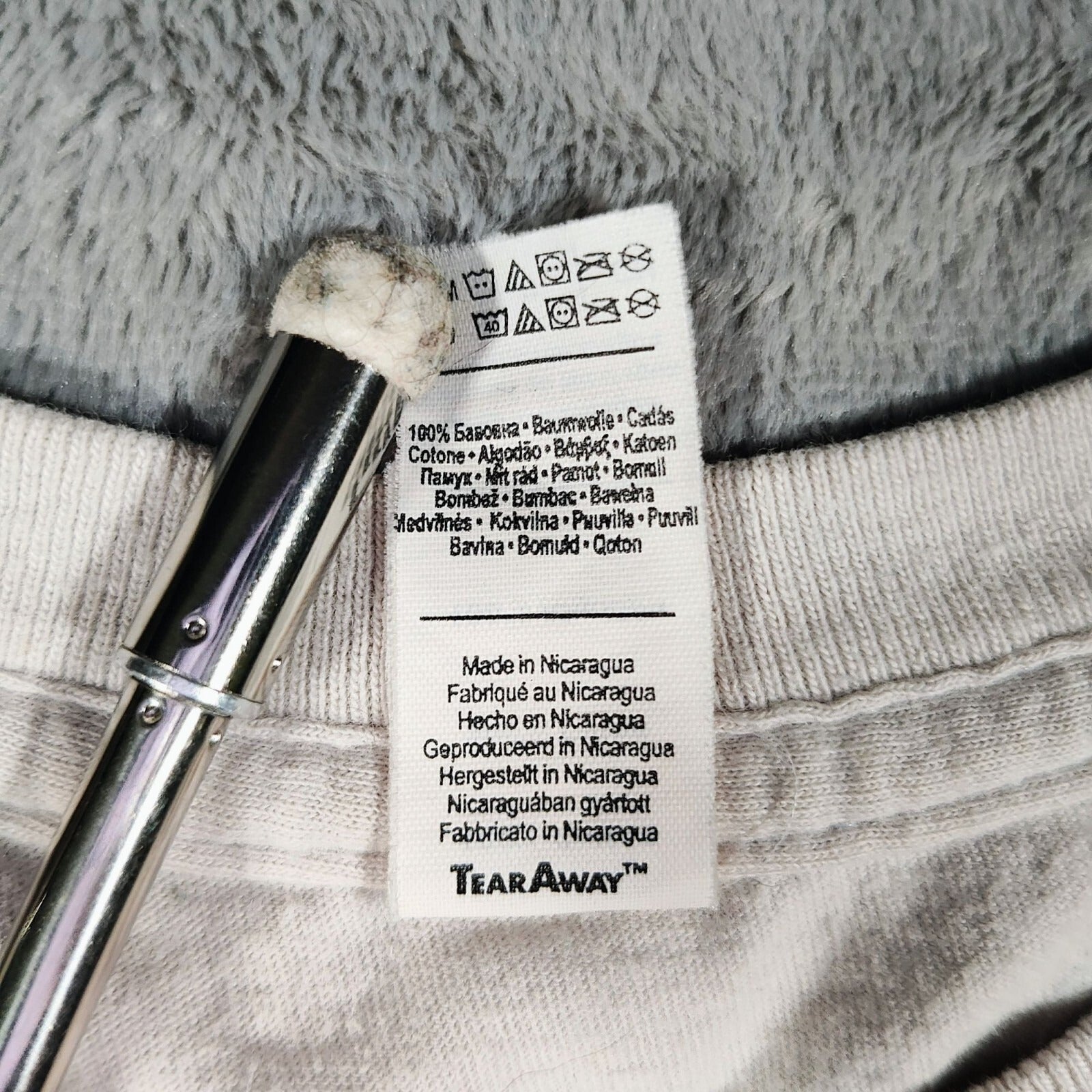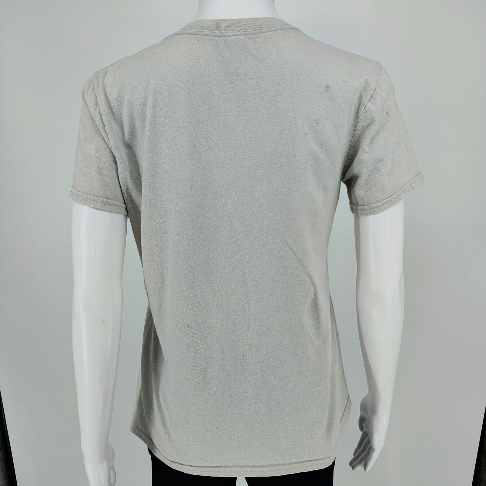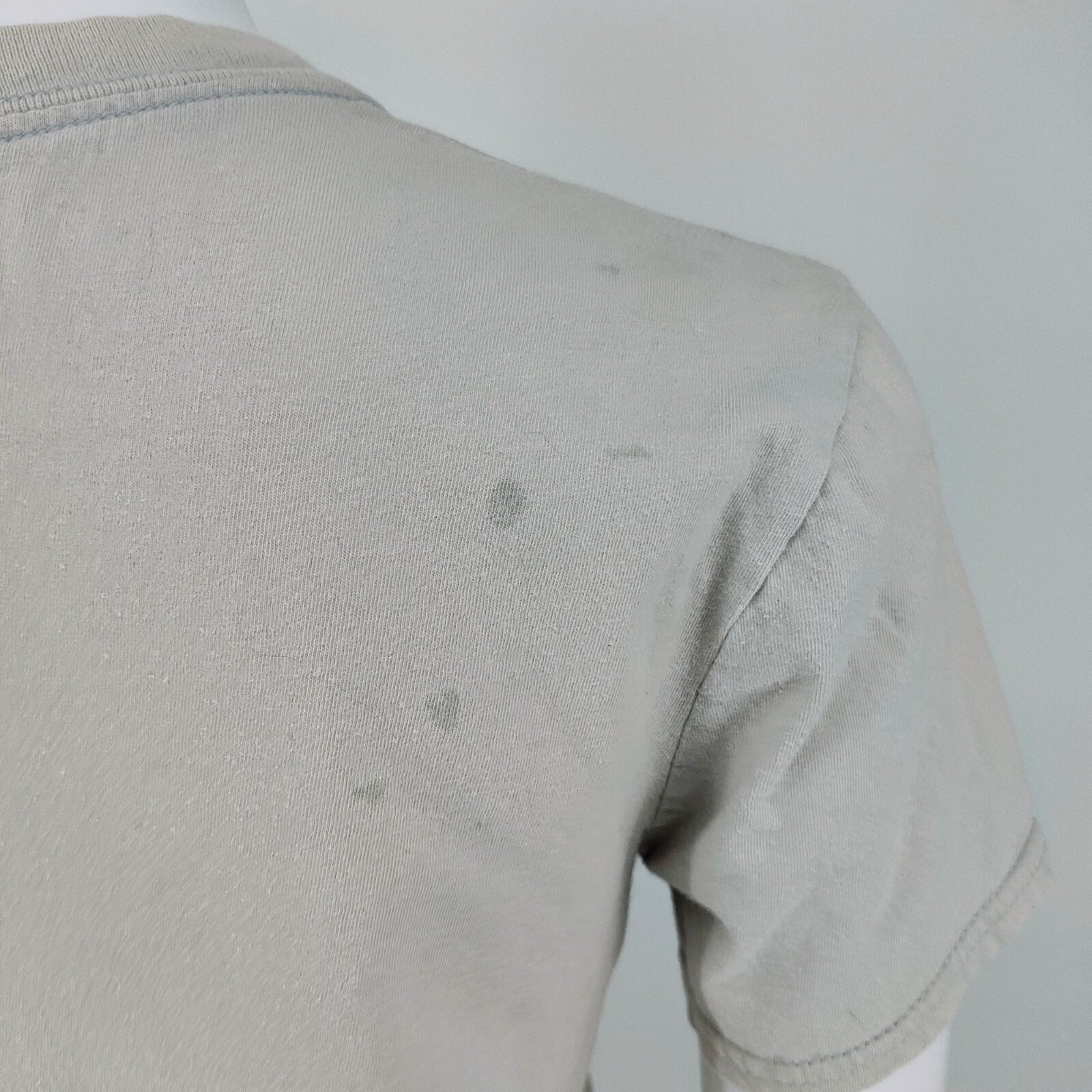 Condition Notes: Fair Condition. Staining/discoloration on front of shirt near collar. Discoloration on right shoulder near seam. Staining on bottom of shirt near hem on both front and back. Multiple stains on back of shirt near right shoulder. See photos.