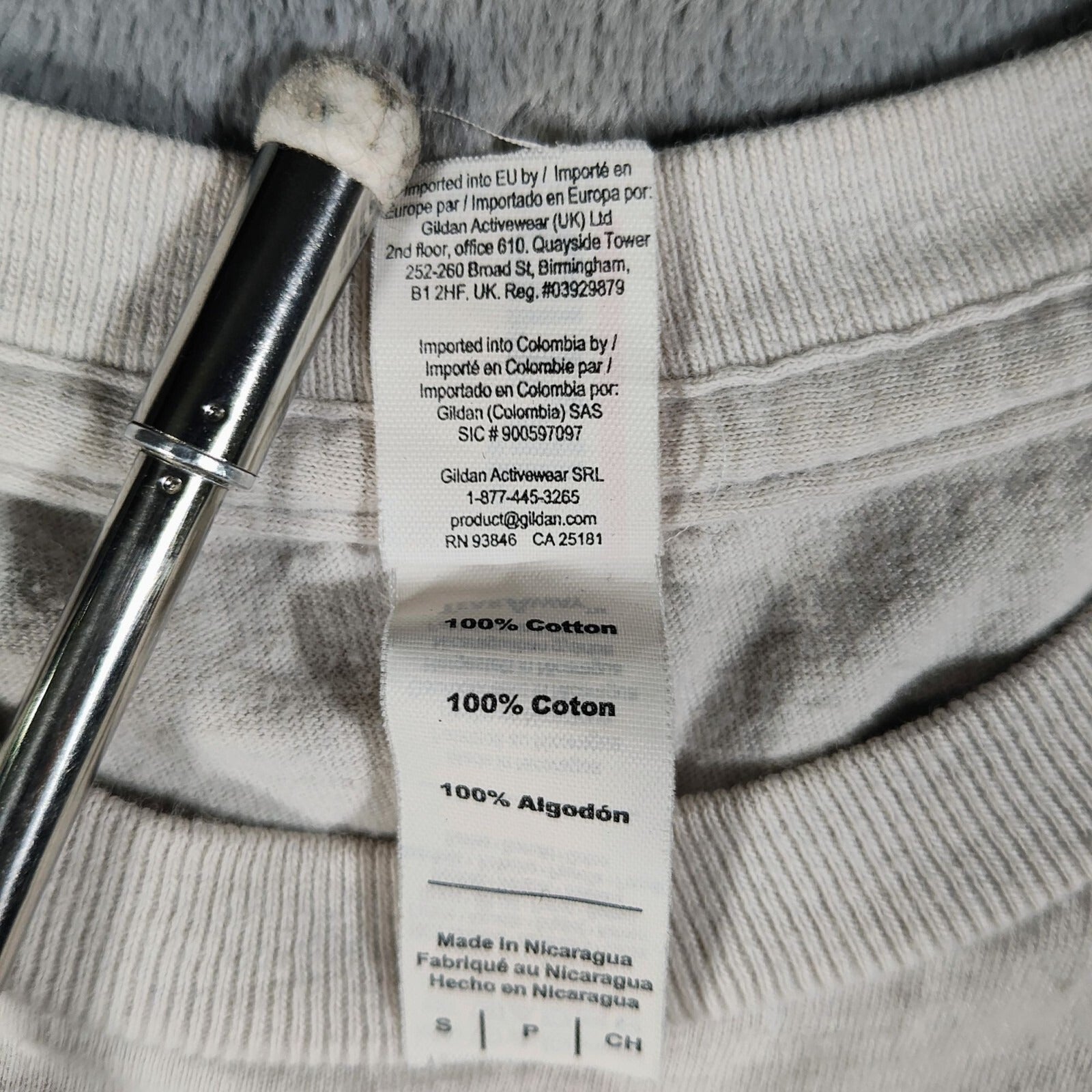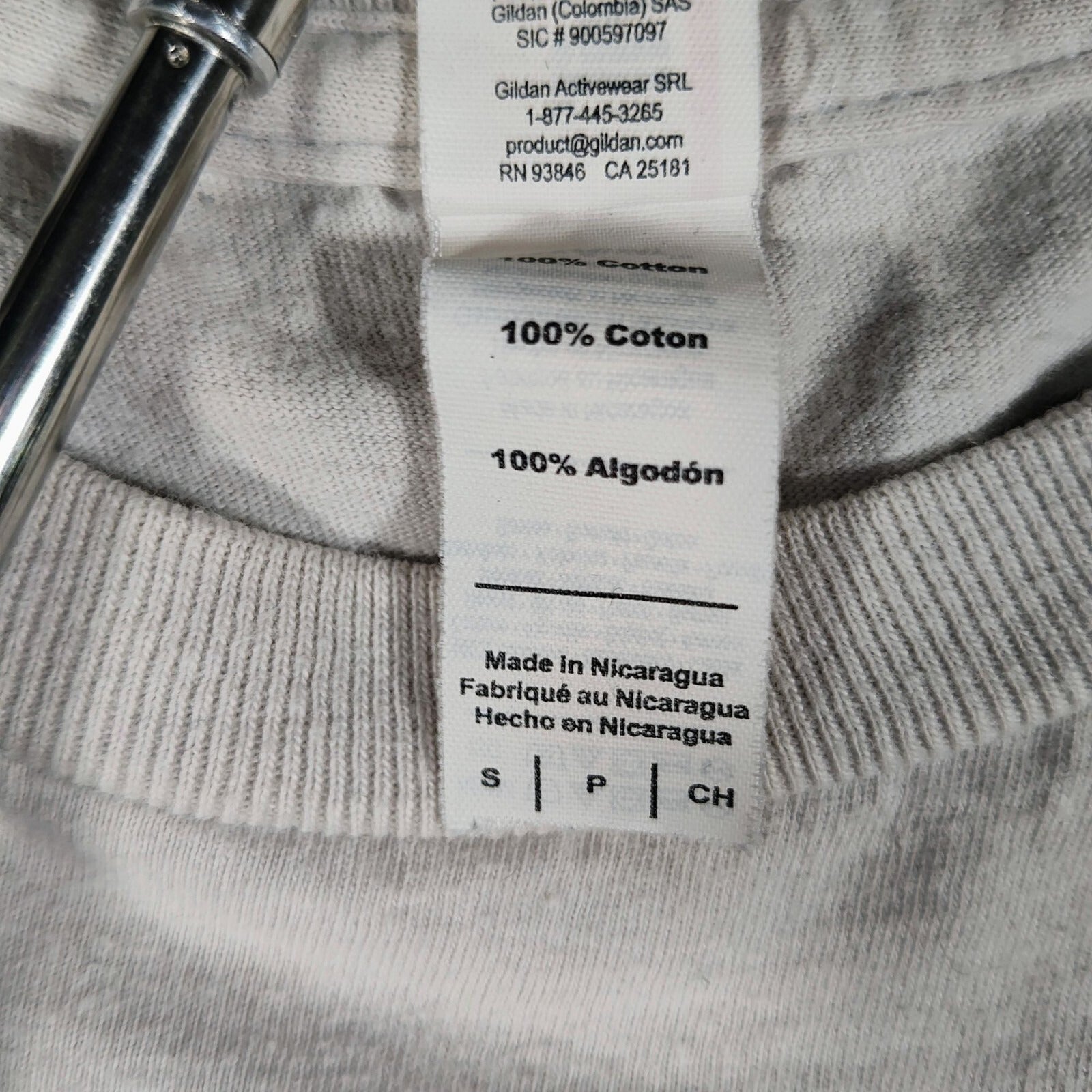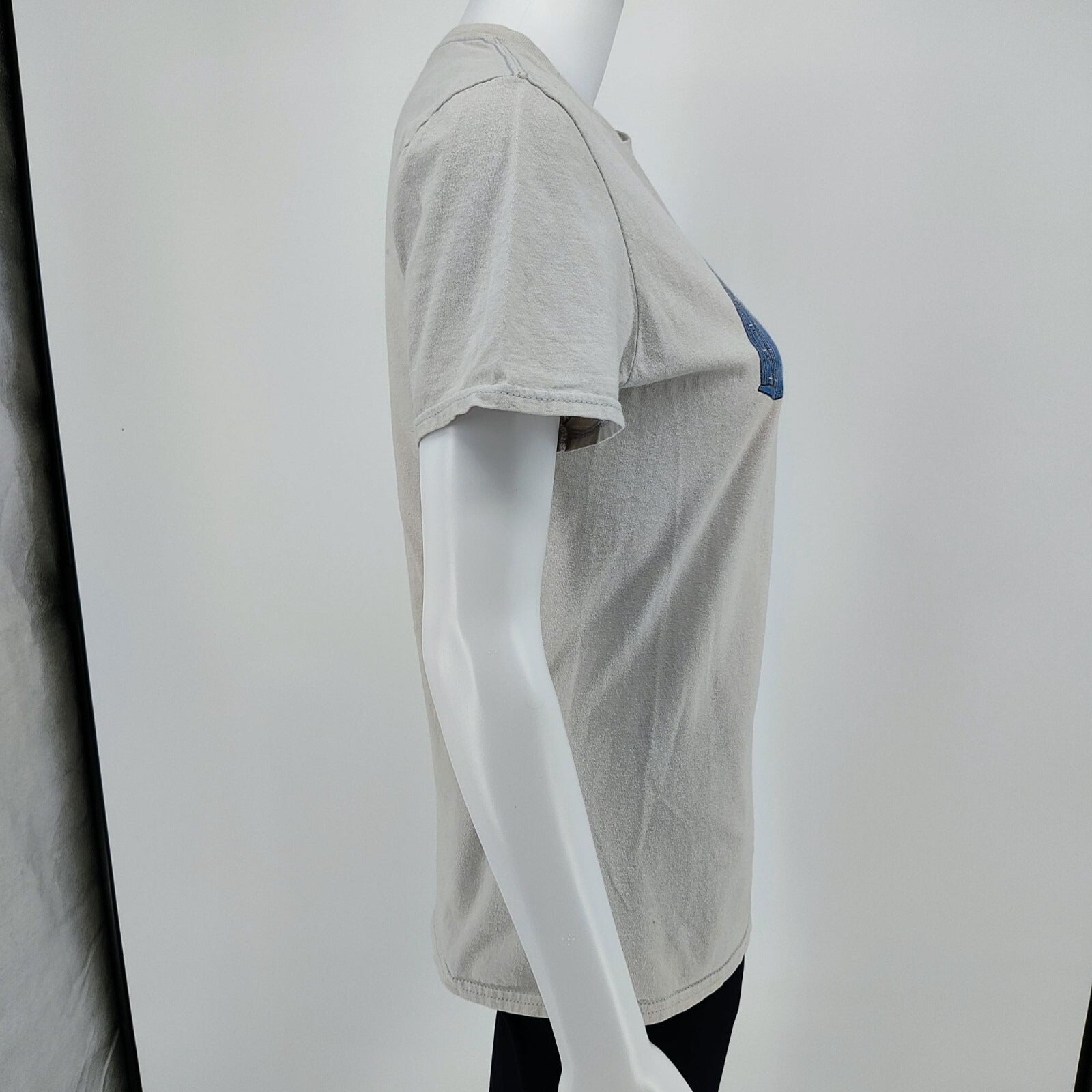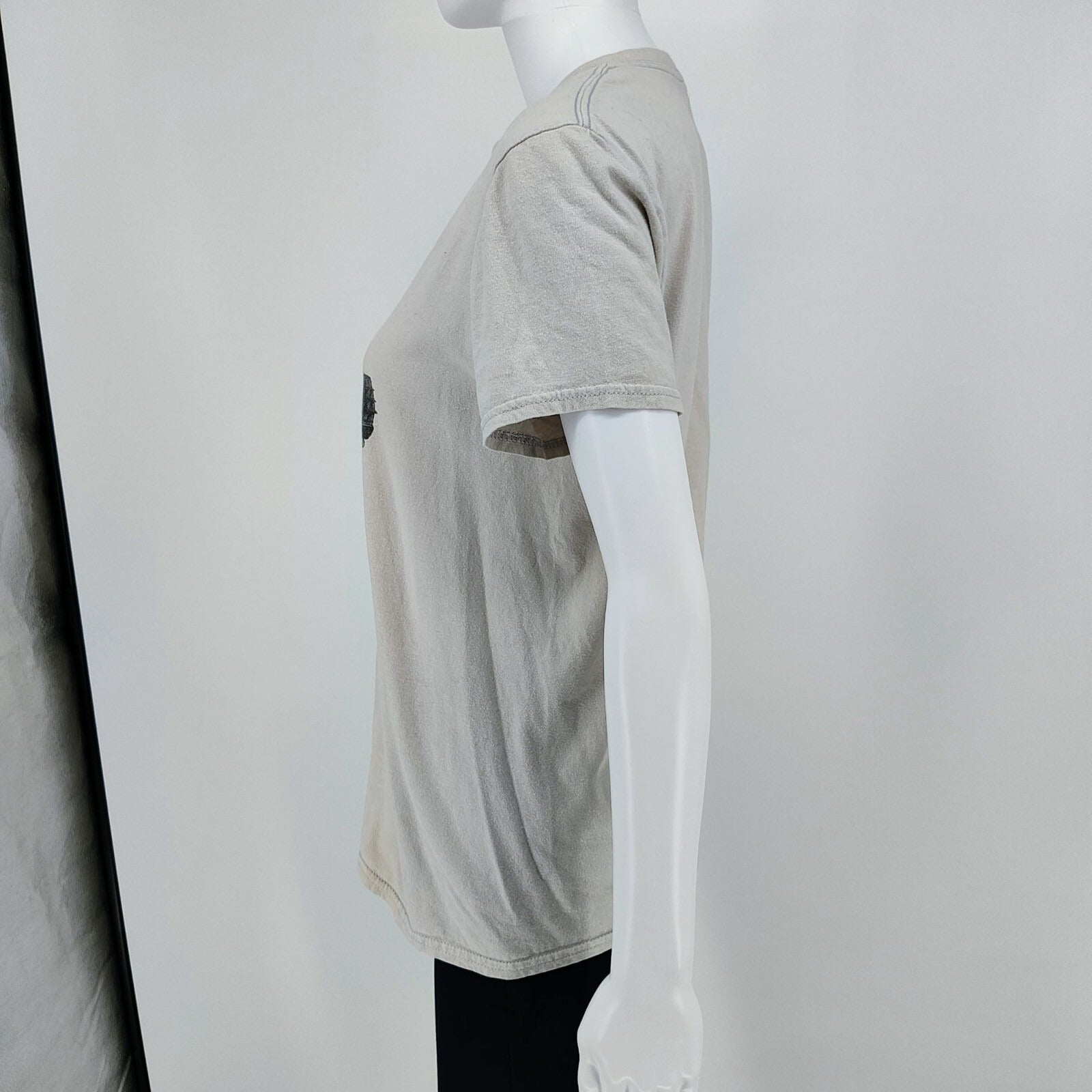 Condition Notes: Fair Condition. Staining/discoloration on front of shirt near collar. Discoloration on right shoulder near seam. Staining on bottom of shirt near hem on both front and back. Multiple stains on back of shirt near right shoulder. See photos.