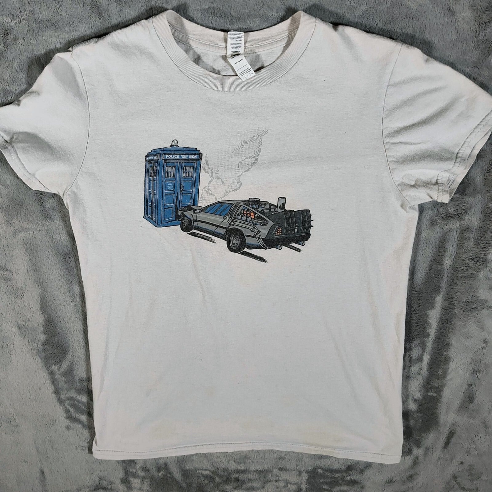 Shirt.Woot Dr. Who Tardis Back to the Future DeLorean Graphic T-Shirt (S) *Fair*