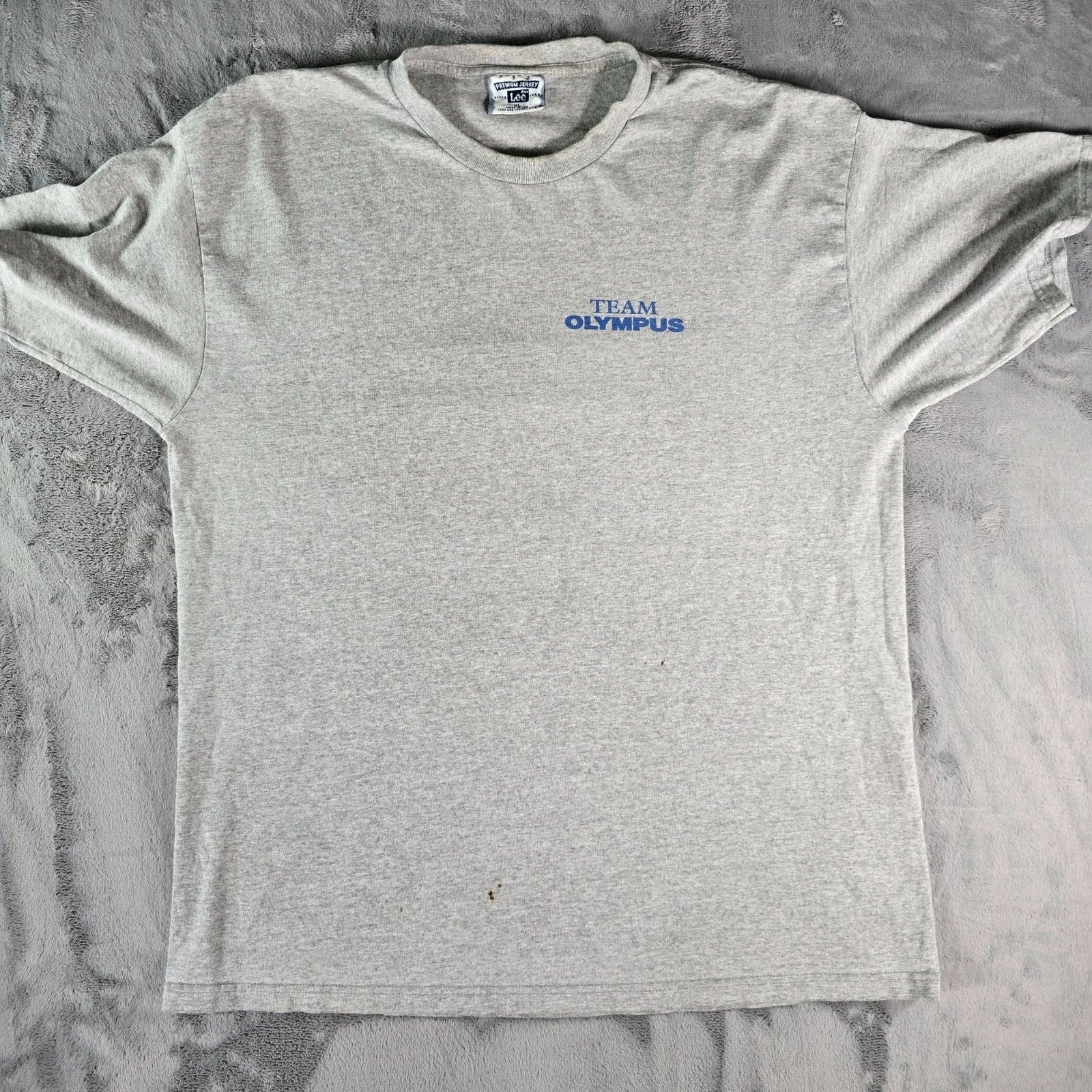 Stained Vintage 1990s Lee Premium Jersey Team Olympus Gray T-Shirt (XL)