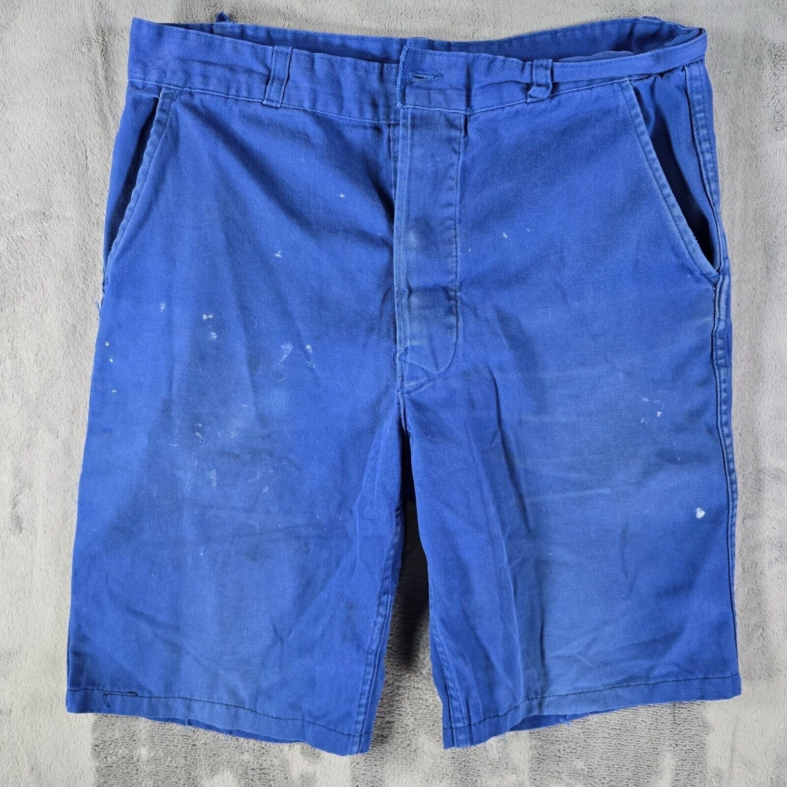 Thrashed 1970s Vetements Le Mont Carmel Blue French Workwear Shorts (32" waist)