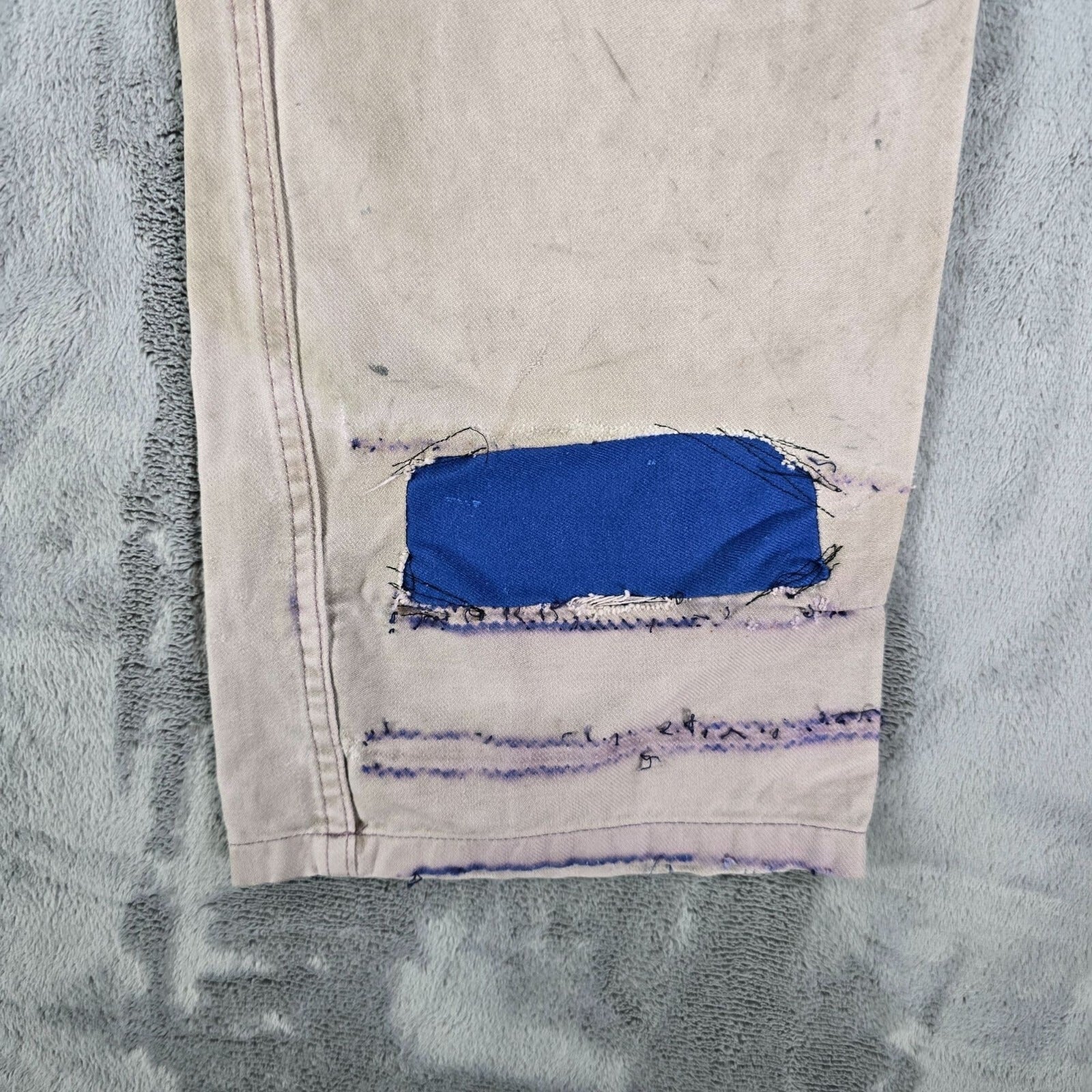 Notable Features: Cargo-style pockets, patched lower legs near cuffs, button fly closure