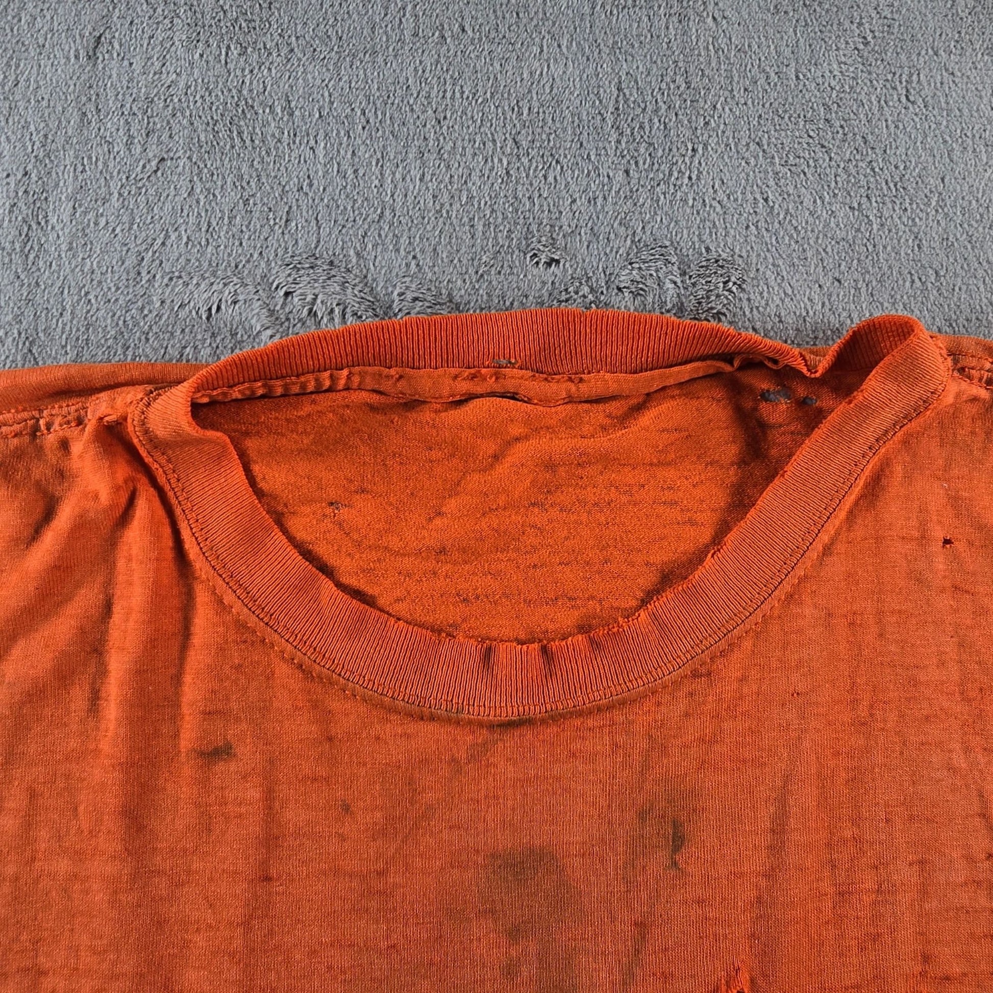 Thrashed Vintage 1990s "Davis Excavating" Orange Cut Off Pocket T-Shirt (XL)