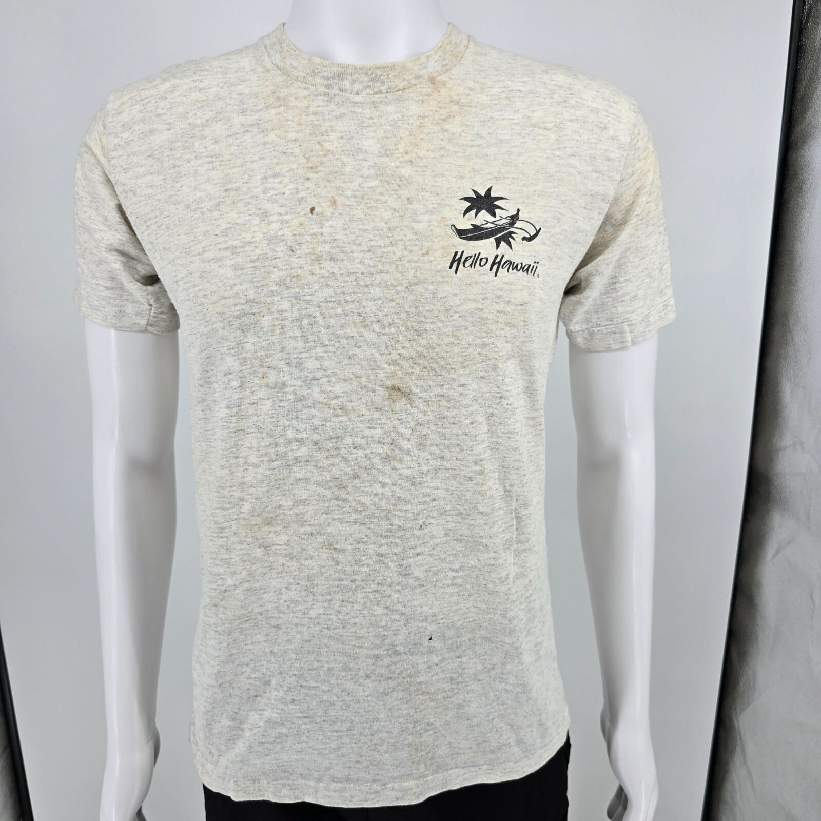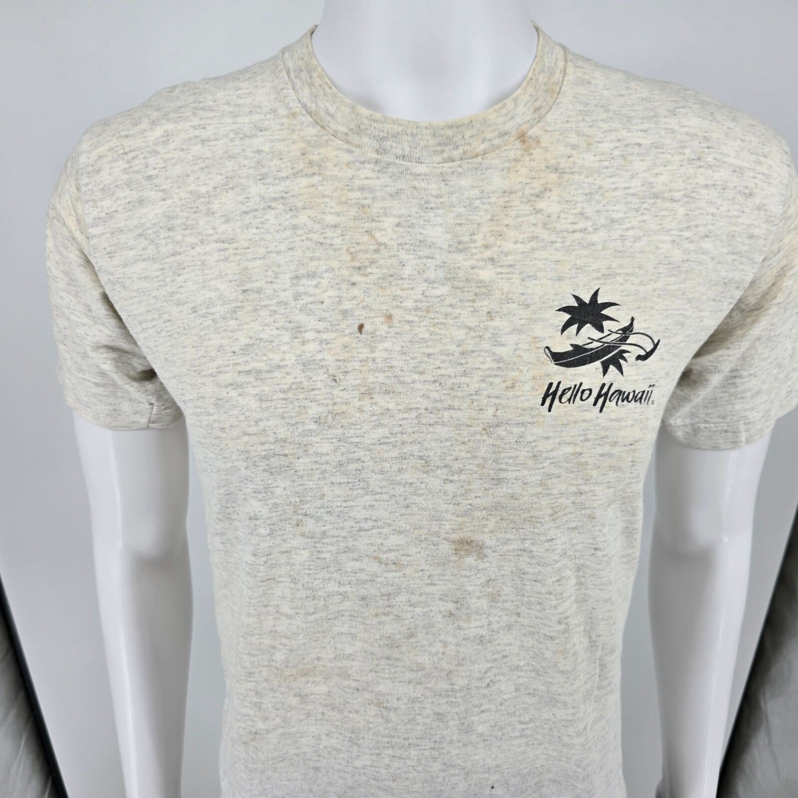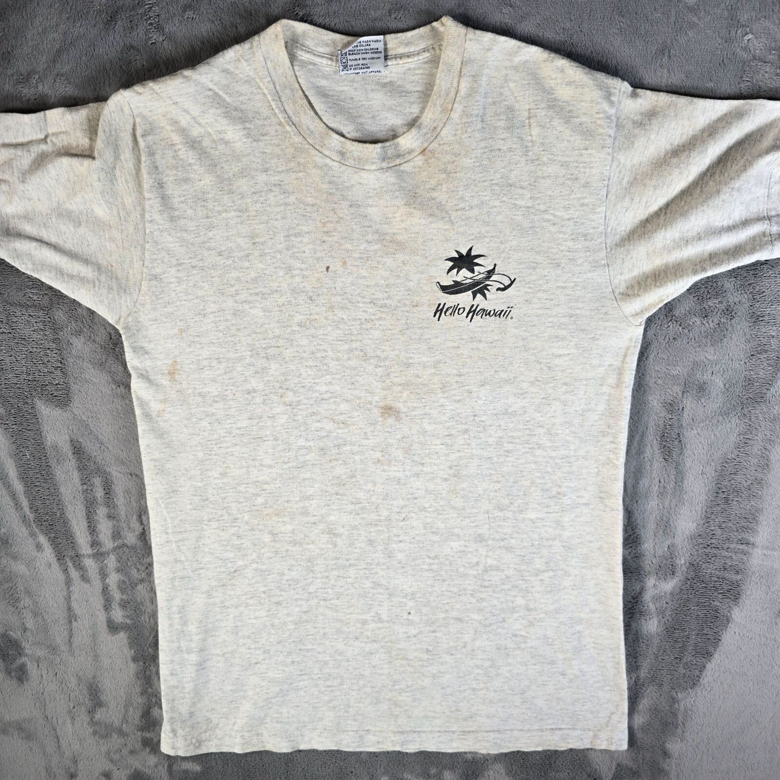 Thrashed Vintage 1990s Hello Hawaii Gray Single Stitch Tourist T-Shirt (M)