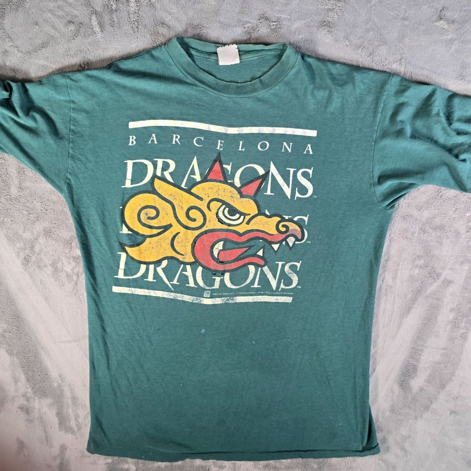 Thrashed Vintage 1990s NFL Europe Barcelona Dragons Single Stitch T-Shirt (L/XL)