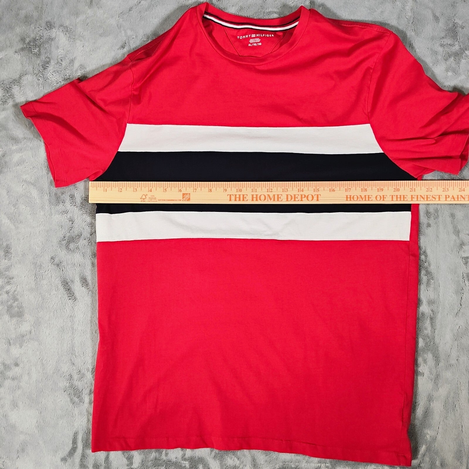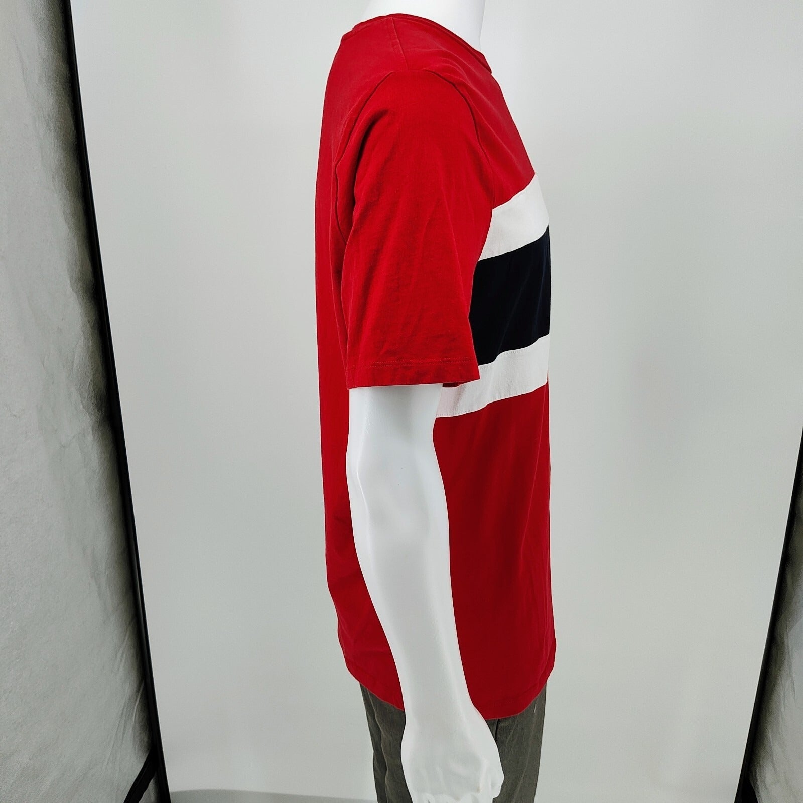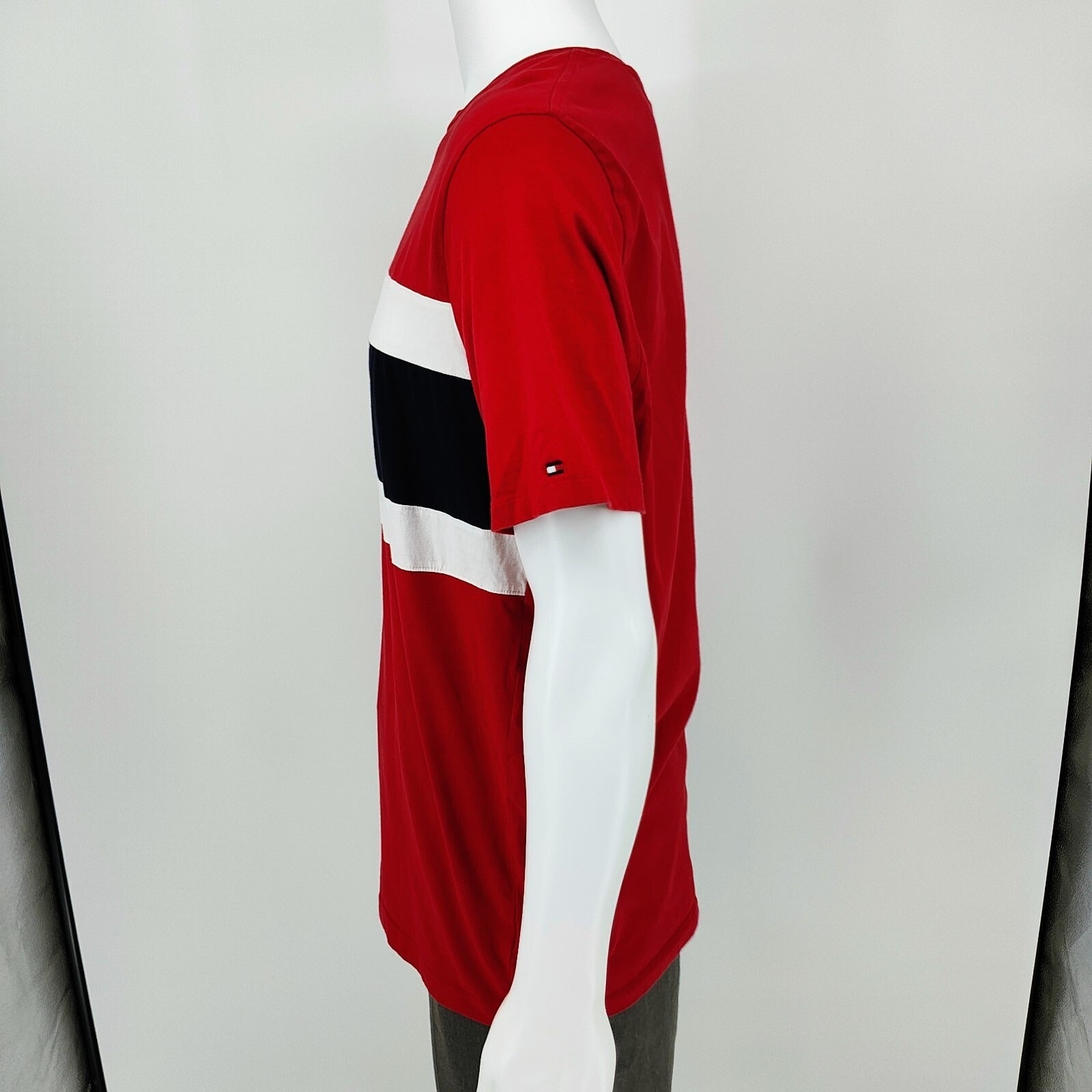 Tommy Hilfiger Men's Colorblock Stripe Red Crewneck T-Shirt (XL)