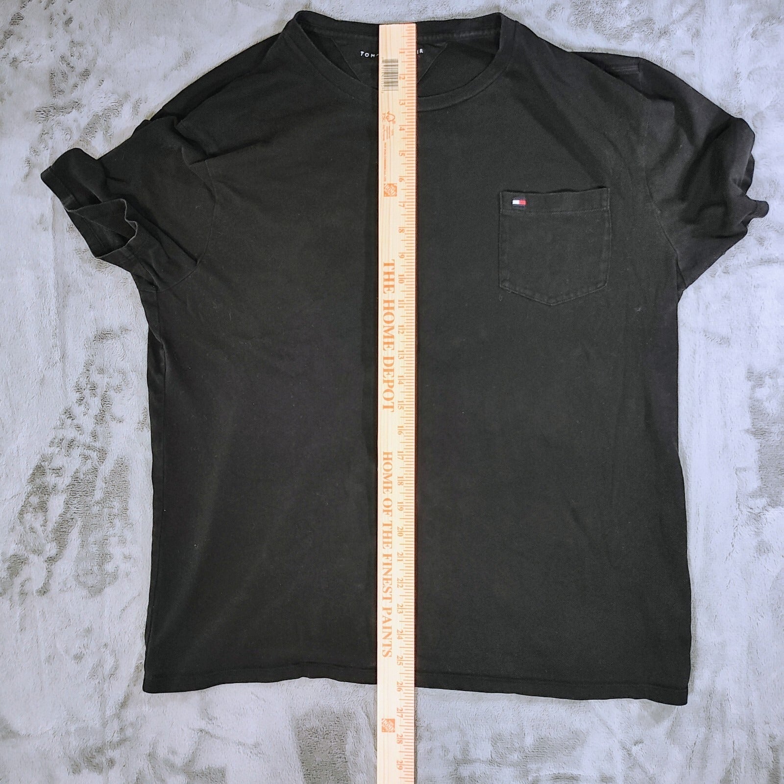 Tommy Hilfiger Men's Crew Neck Flag Logo Black Cotton Pocket T-Shirt (Large)
