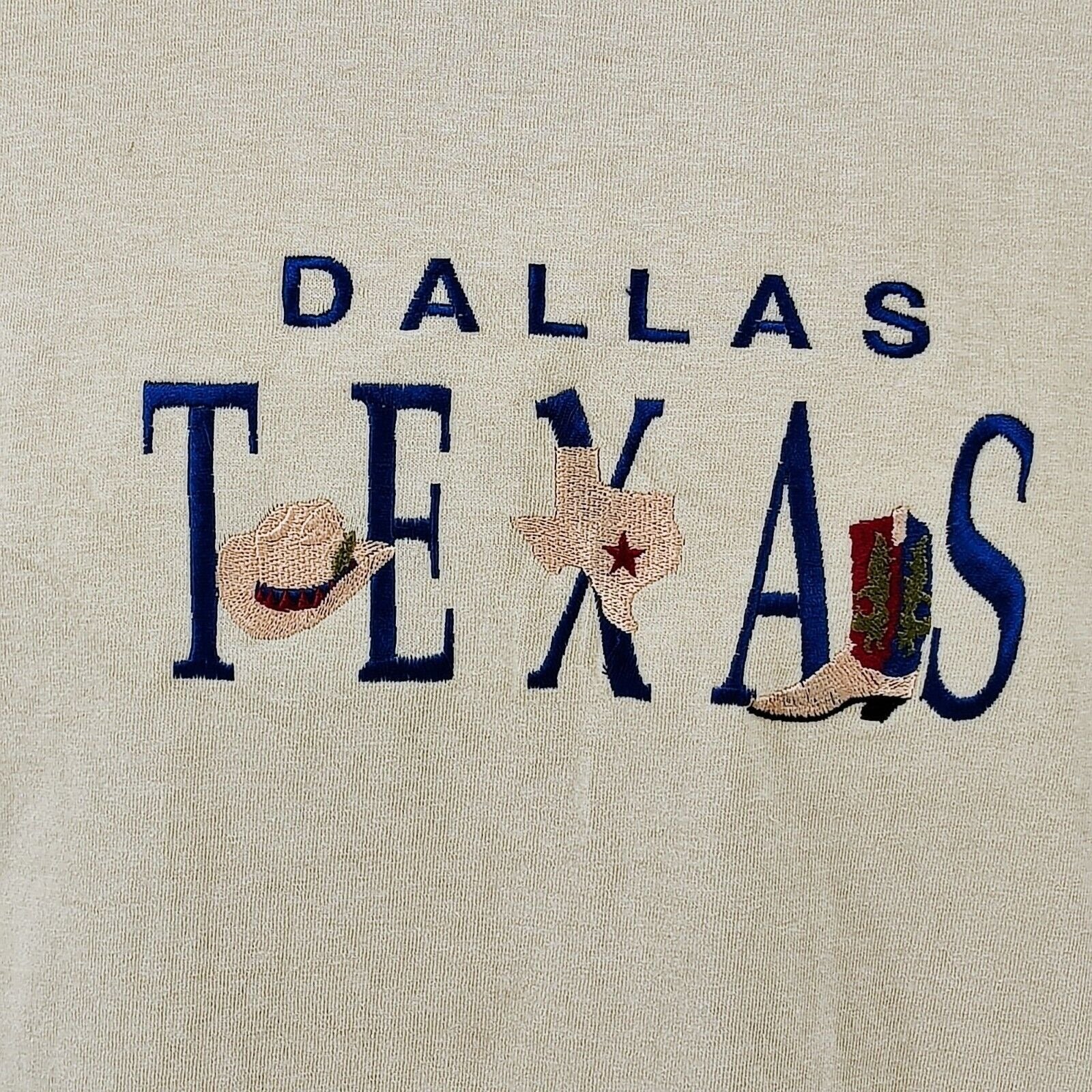 TSC West Heavy Weight Vintage Embroidered Dallas Texas Beige Graphic T-Shirt (L)