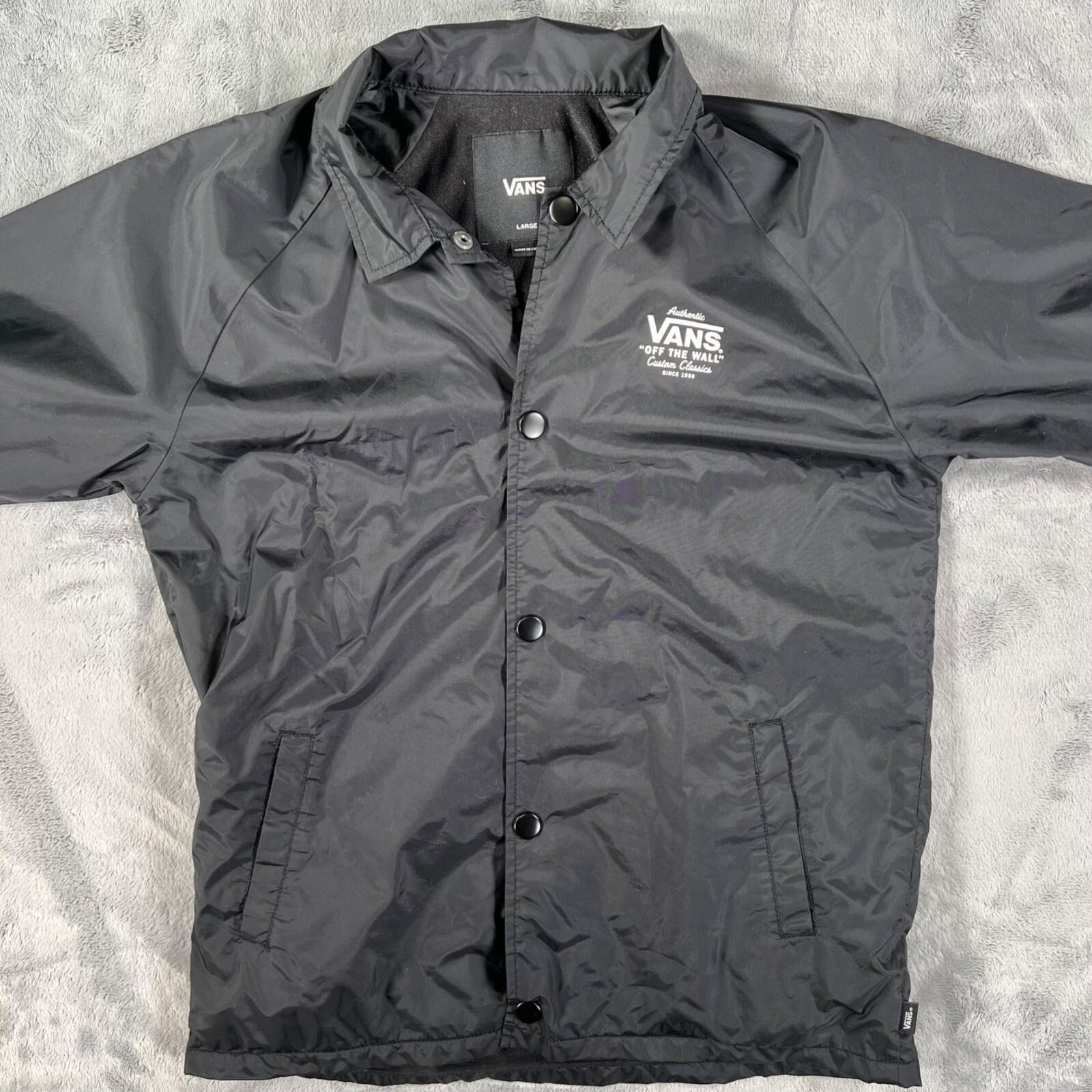 VANS Youth Torrey Black Snap Button Windbreaker Nylon Coach Jacket (Youth Large)
