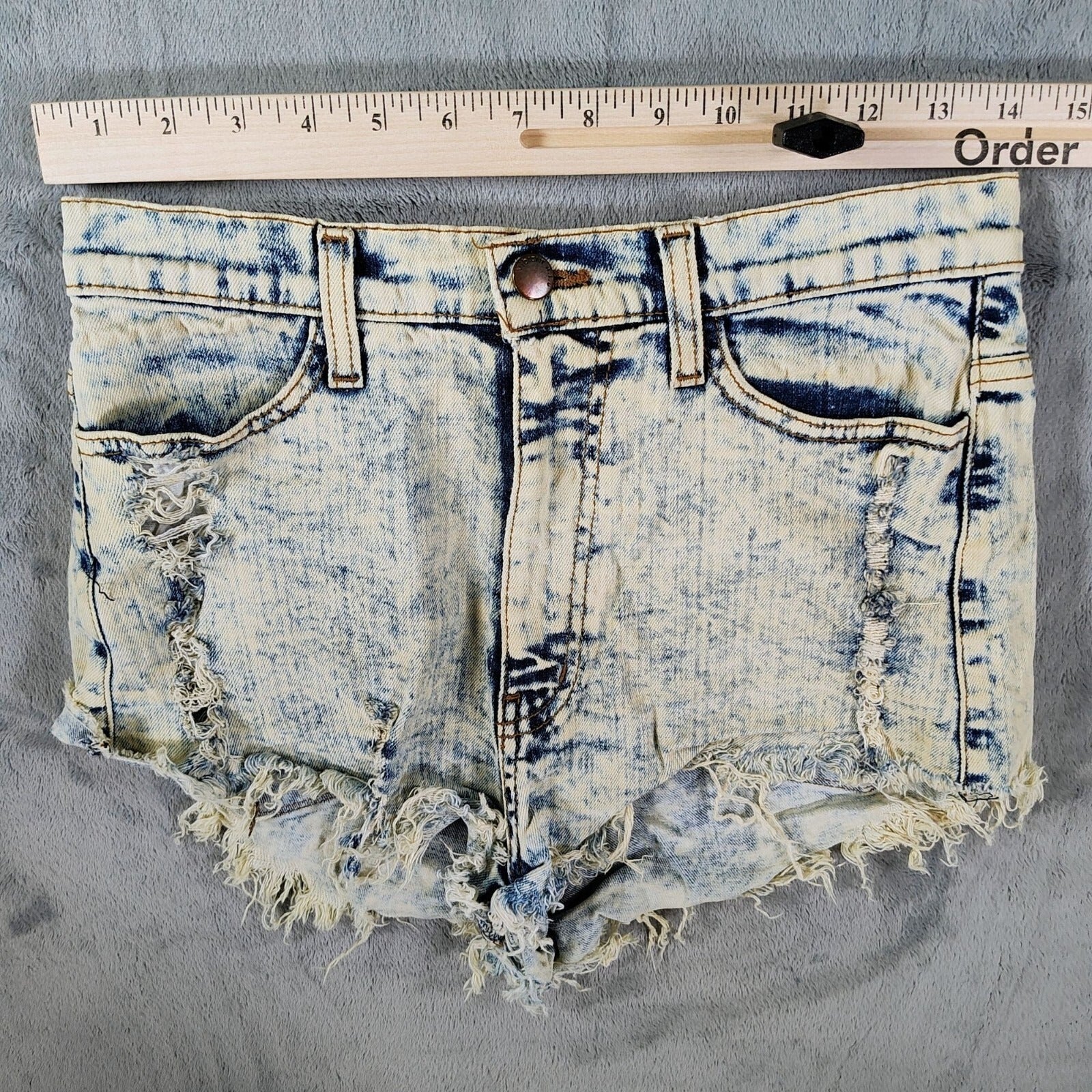 Vibrant M.I.U Made in USA Distressed Acid Wash DIY Cut Off Denim Shorts -Size 6