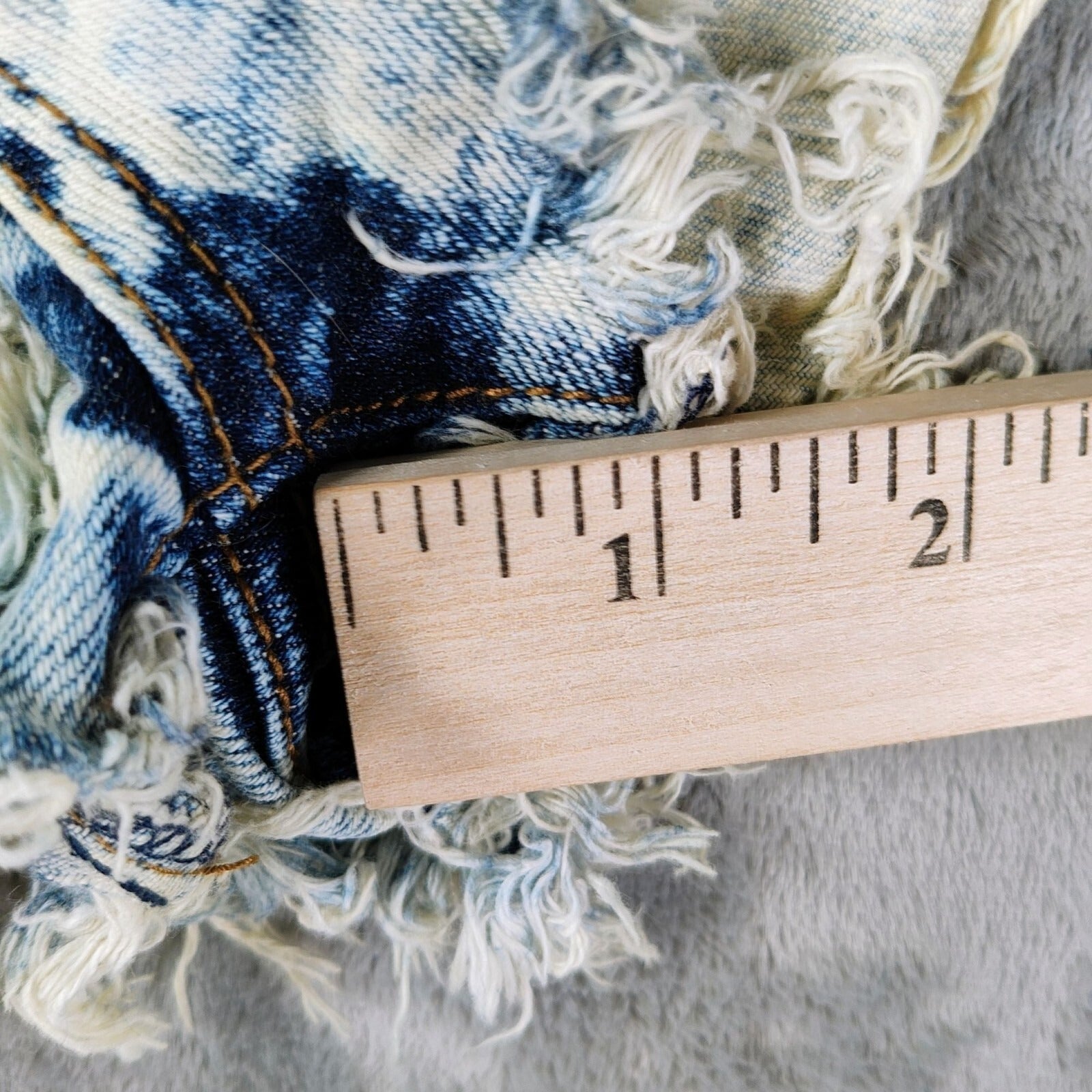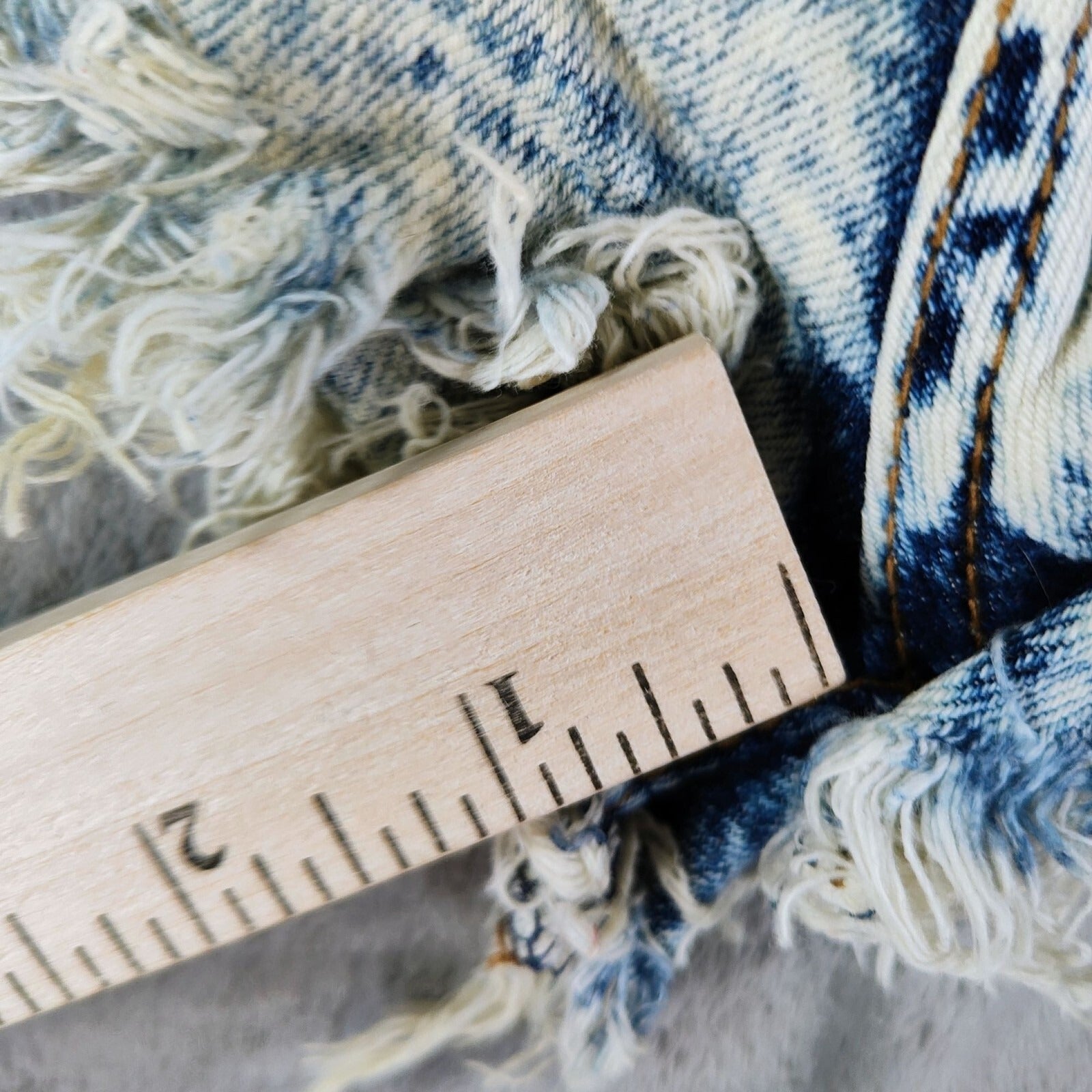 Condition Notes: Fair/good DIY condition. DIY acid-wash cut offs with frayed hems of inconsistent length. Busted stitch on back left pocket. Heavy distressing throughout. See photos.
