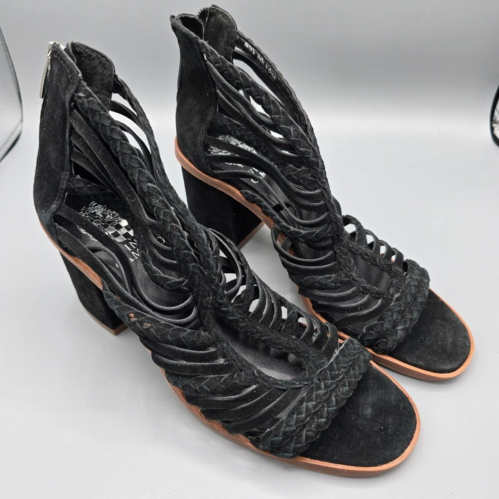 Vince Camuto Women's Black Suede Kestal Cage Gladiator Dress Sandals (8M)