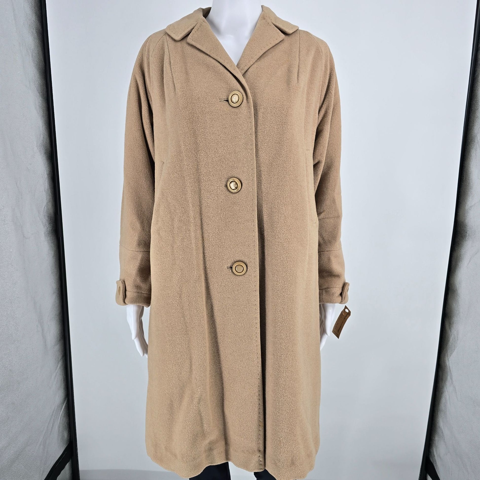 Vintage 1950s Country Tweeds Einiger 100% Cashmere Camel/Tan Overcoat (L)