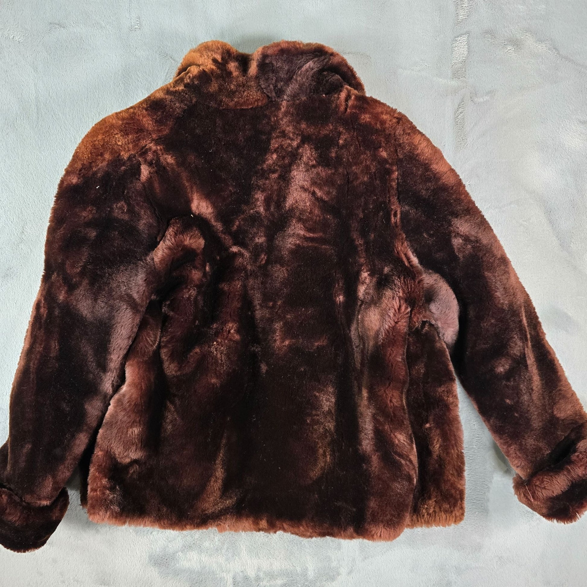 Vintage 1950s Strouss Hirshberg's Shawl Collar Brown Mouton Lamb Fur Jacket (S)