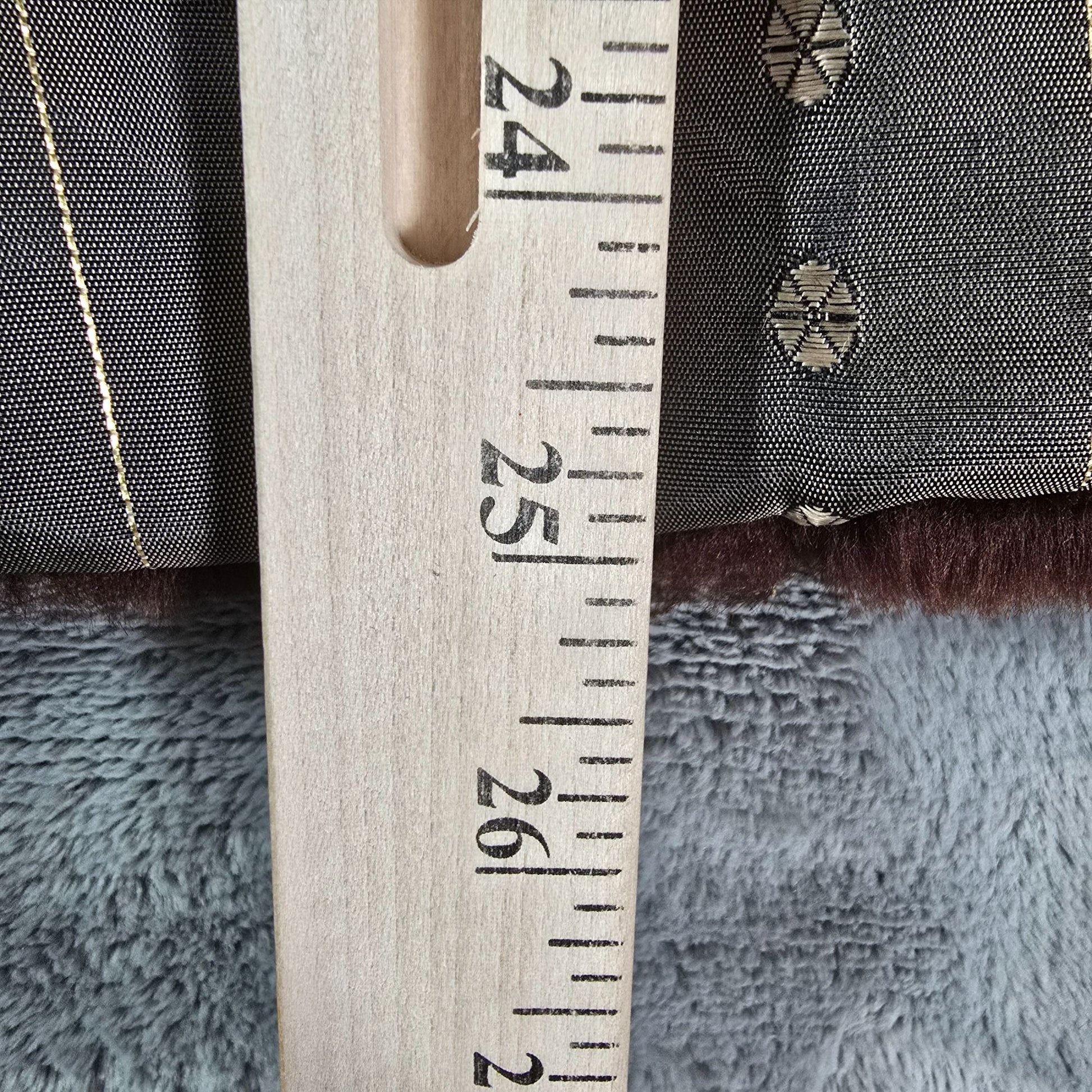 Material: Genuine mouton lamb (sheepskin processed for a plush beaver-like finish); Patterned satin lining; Metal hardware