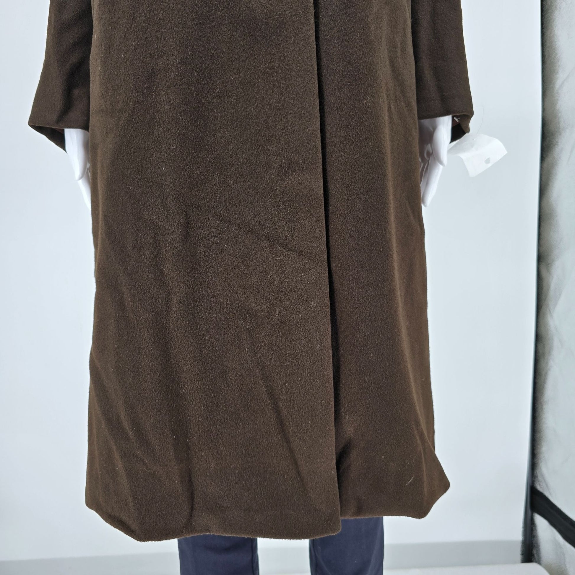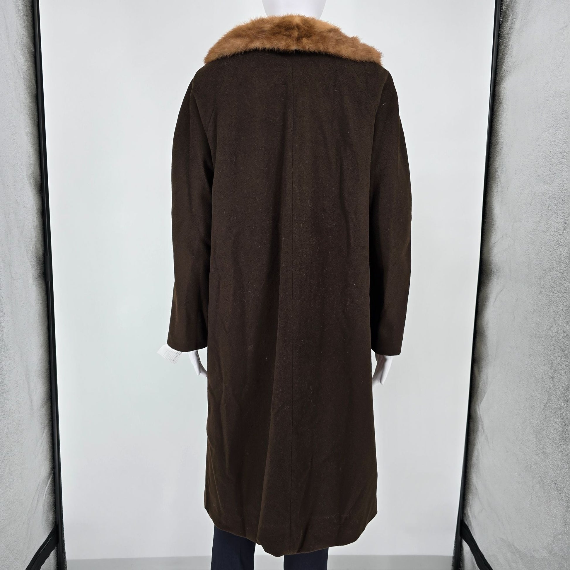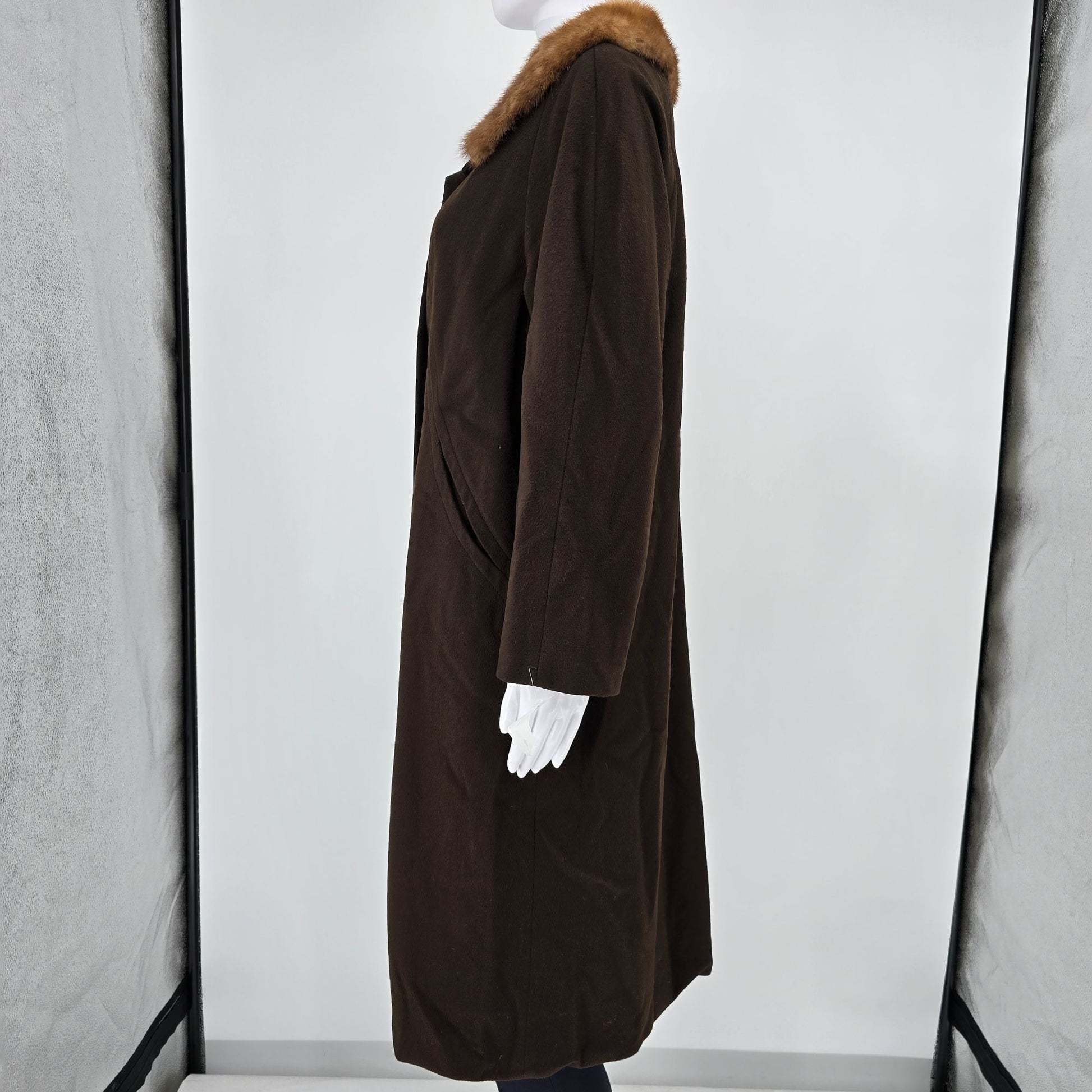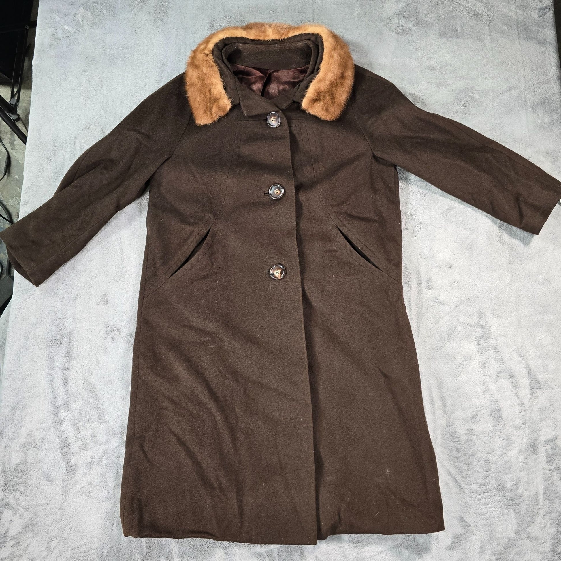 Vintage 1950s Unbranded Chocolate Brown Wool Faux Fur Collar Overcoat (M/L)