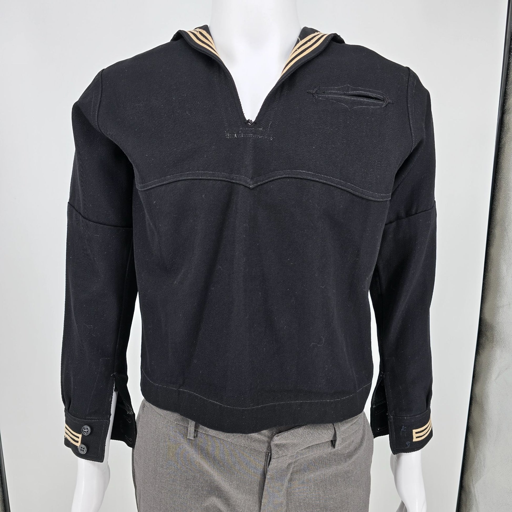 Vintage 1950s US Navy Black Gabardine Wool Crackerjack Liberty Jumper (40/M)
