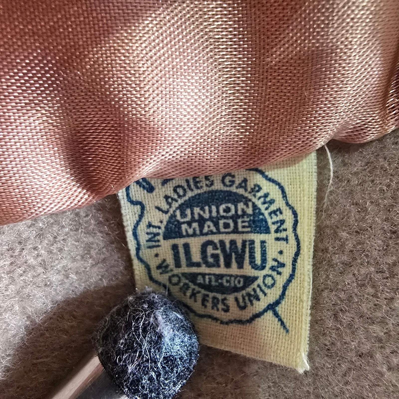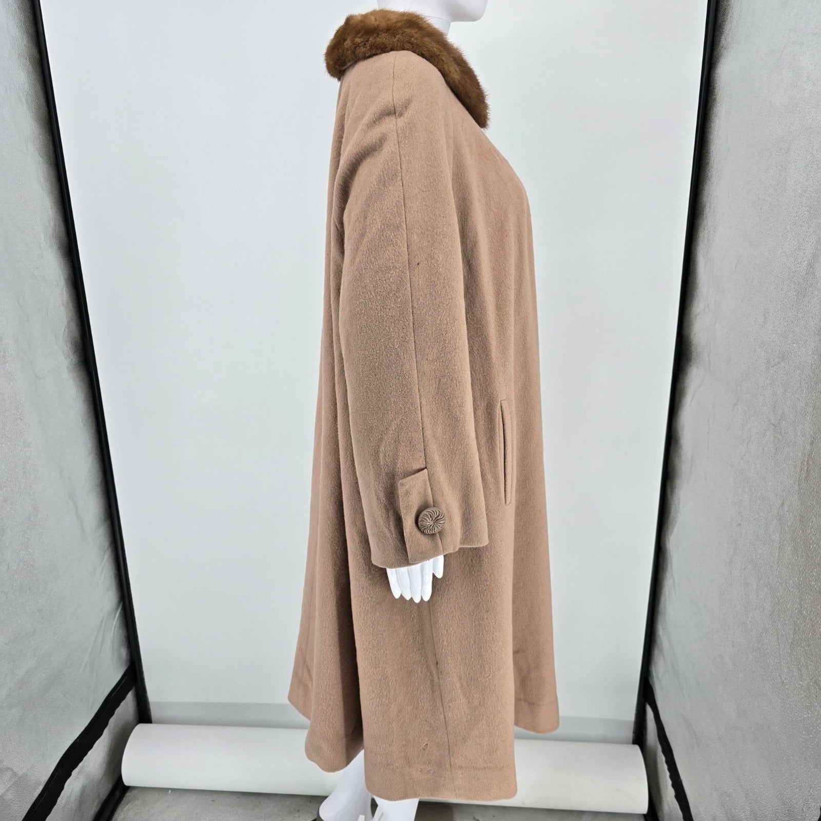 Vintage 1960s Aldenaire Women's Union Made Light Brown Faux Fur Collar Coat (XL)