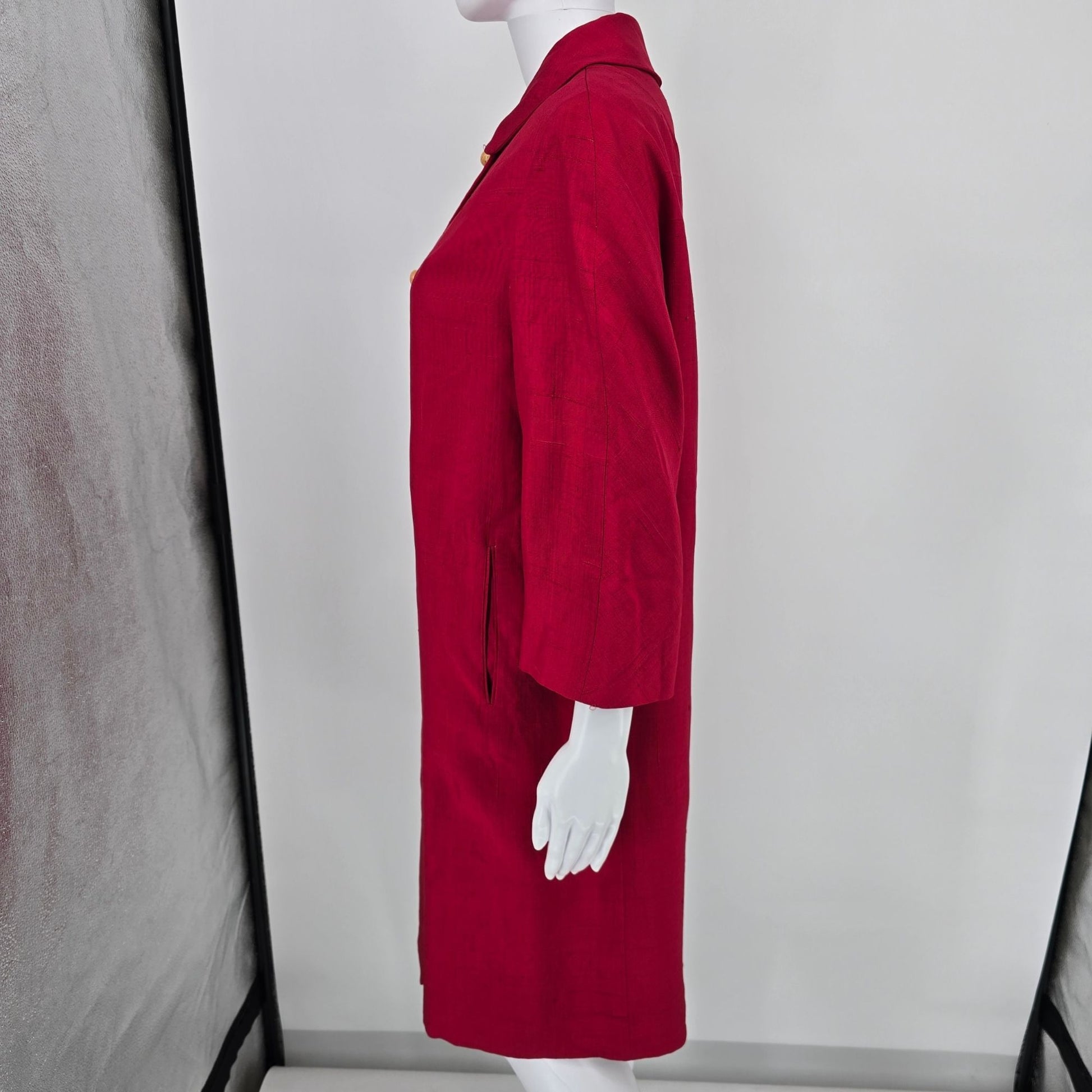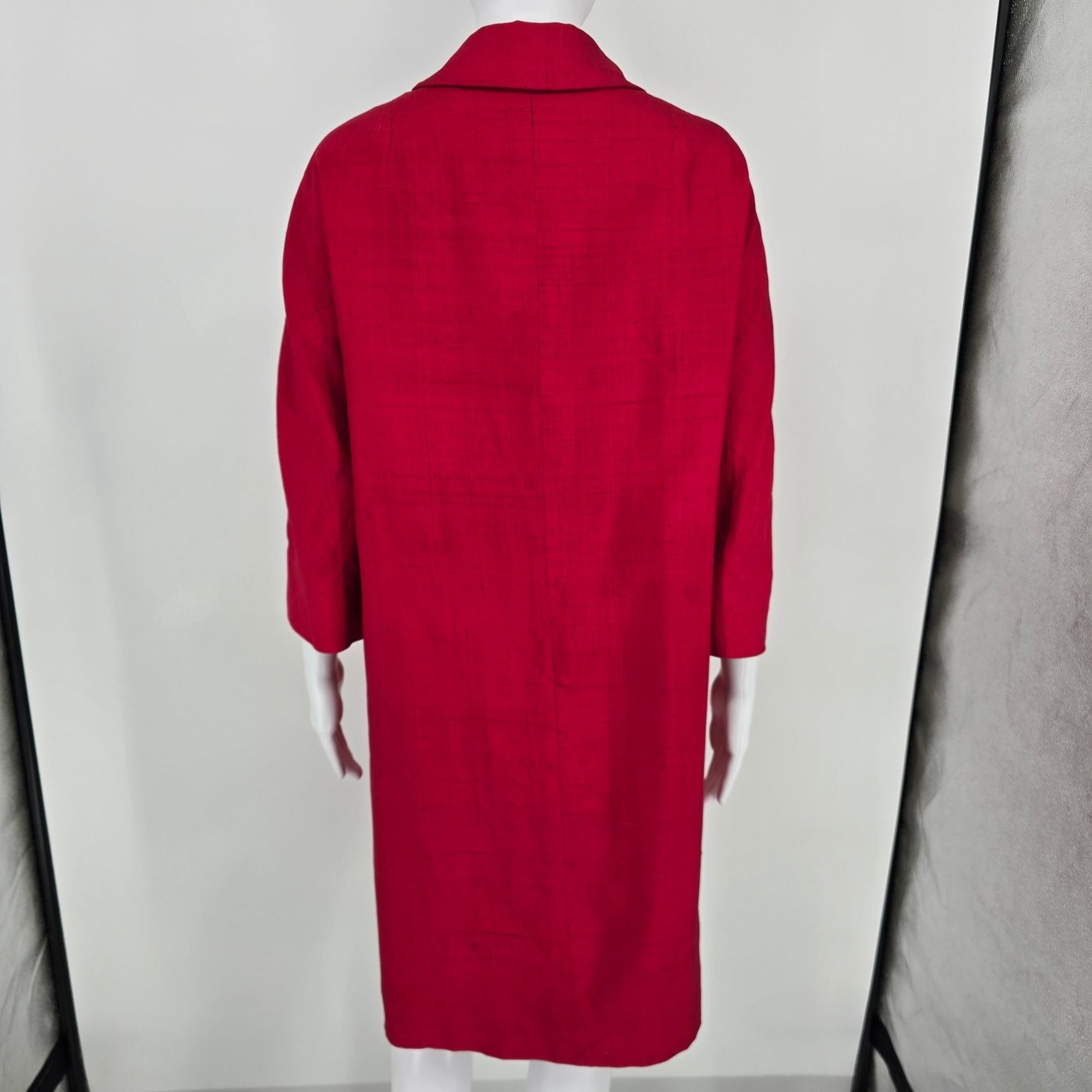 Vintage 1960s Bullock's Wilshire Los Angeles Red Shantung Silk Mod Coat (L)