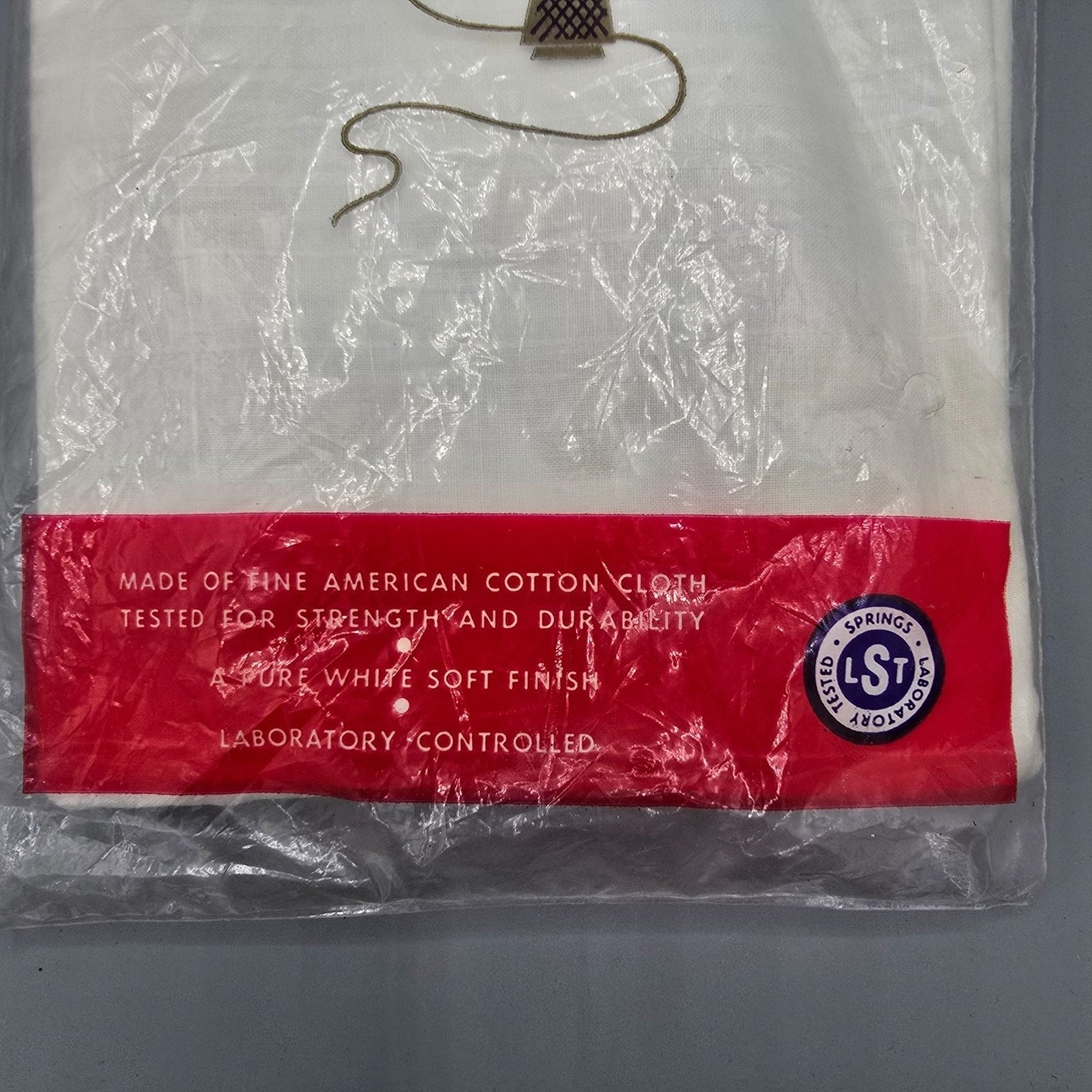 Deadstock New Condition with Defects. Packaging is sealed. Some yellowing/discoloration of the fabric is visible through the sealed packaging. See photos for details.